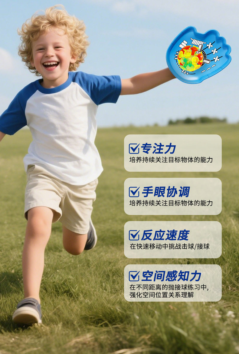 | Color | (orange + blue) palm throwing and catching sticky target with ball - comes with 1 ordinary ball,(blue + blue) palm throwing and catching suction ball sticky target - with 1 ordinary ball,(green + blue) palm throwing and catching sticky target with suction ball - comes with 1 ordinary ball,(green + blue) palm throwing and catching sticky target with suction ball - comes with 1 ordinary ball + 1 luminous ball,(blue + blue) palm throwing and catching sticky target with ball - with 1 ordinary ball + 1 luminous ball,(orange + blue) palm throwing and catching sticky target with suction ball - comes with 1 ordinary ball + 1 luminous ball |