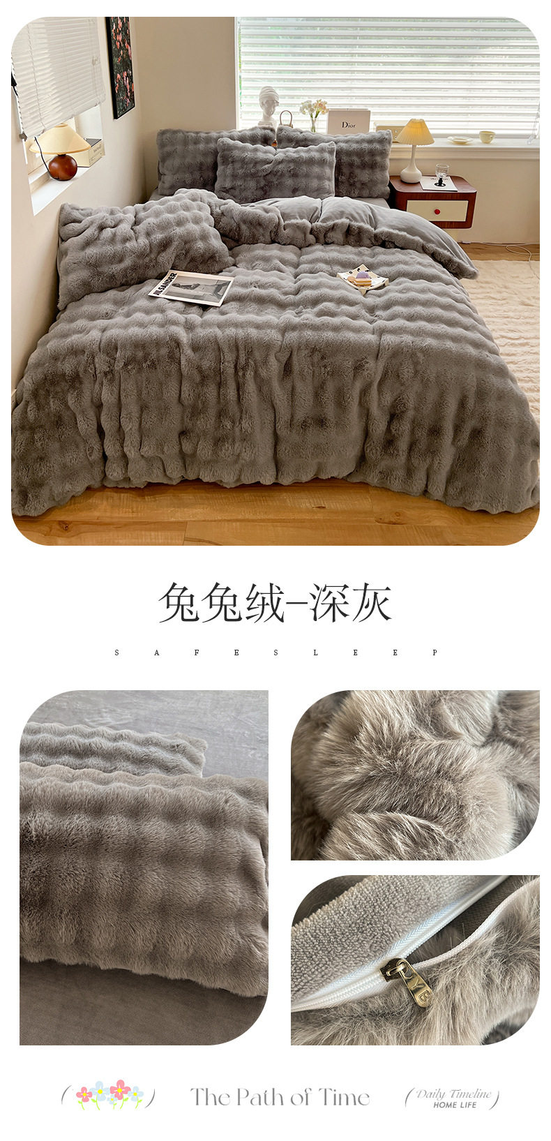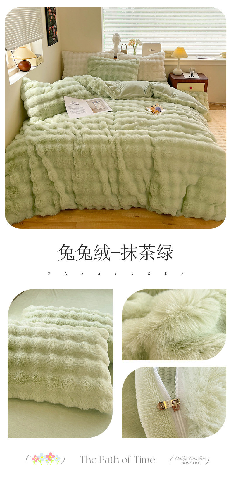 4.5kg Layers! Class a Maternal and Infant-Grade Milk Velvet Four-Piece Set, Thickened with Rex Rabbit Fur, Warm Double-Sided Coral Fleece Set 4