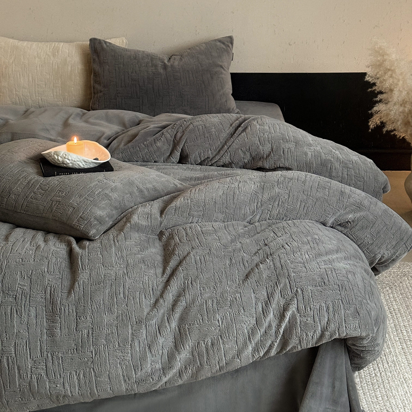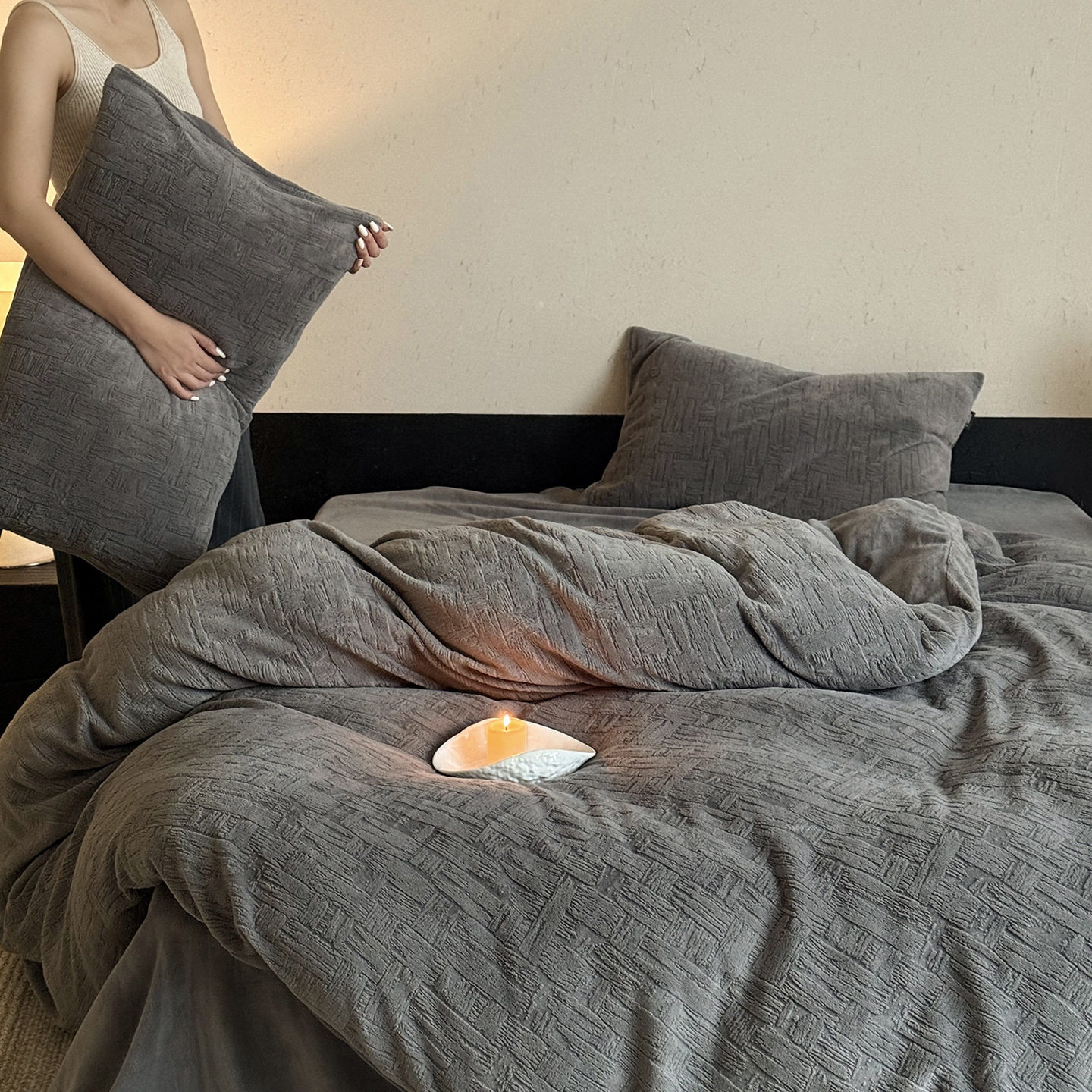 Casual Winter High-Weight Milk Velvet Four-Piece Set, Anti-Static Thickeneded Skin-Friendly Naked Sleeping Three-Piece Set with Stereo Carved Velvet