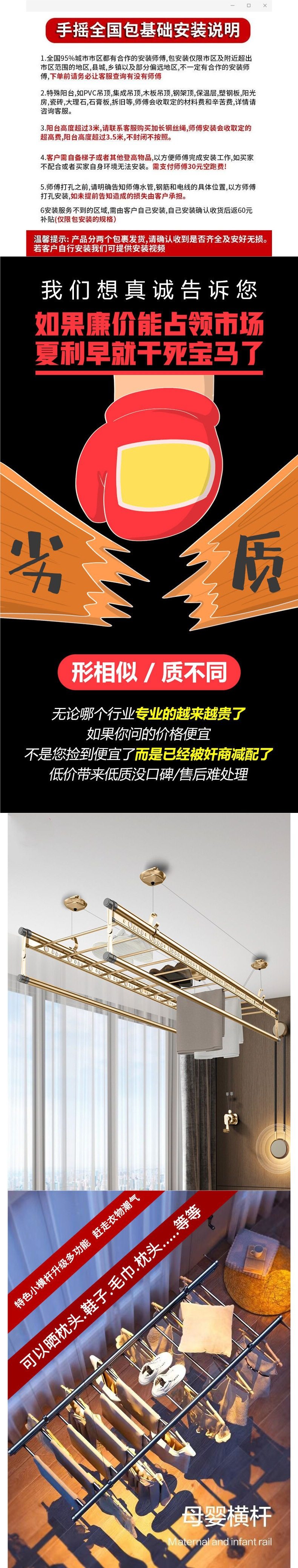 | Specifications | Single pole reinforced 1.2m without hanger,European four-pole 1.2m anti-reverse hand crank,European four-pole 1.5m anti-reverse hand crank,European four-pole 1.8m anti-reverse hand crank,European style four-pole 1.2m anti-reverse hand crank + 10 hangers,European style four-pole 1.5m anti-reverse hand crank + 10 hangers,European style four-pole 1.8m anti-reverse hand crank + 10 hangers,European four-pole 2m anti-reverse hand crank,European style four-pole 2m anti-reverse hand crank + 10 hangers,European four-pole 2.4m anti-reverse hand crank,European style four-pole 2.4m anti-reverse hand crank + 10 hangers,European four-pole 2.7m anti-reverse hand crank,European four-pole 2.7m anti-reverse hand crank +10 hangers,European style four-pole 2.9m anti-reverse hand crank without hanger,European style four-pole 2.9m anti-reverse hand crank + 10 hangers,European four-pole 3.1m anti-reverse hand crank,European style four-pole 3.1m anti-reverse hand crank + 10 hangers,European style double pole 2m anti-reverse hand crank,European style double pole 2m anti-reverse hand crank + 10 hangers,European style double pole 2.4m anti-reverse hand crank,European style double pole 2.4m anti-reverse hand crank + 10 hangers,European style double pole 2.7m anti-reverse hand crank,European style double pole 2.7m +10 hanger anti-reverse hand crank,European style double pole 2.9m anti-reverse hand crank,European style double pole 2.9m anti-reverse hand crank 10 hangers,European style double pole 3.1m anti-reverse hand crank without hanger,European style double pole 3.1m anti-reverse hand crank + 10 hangers |