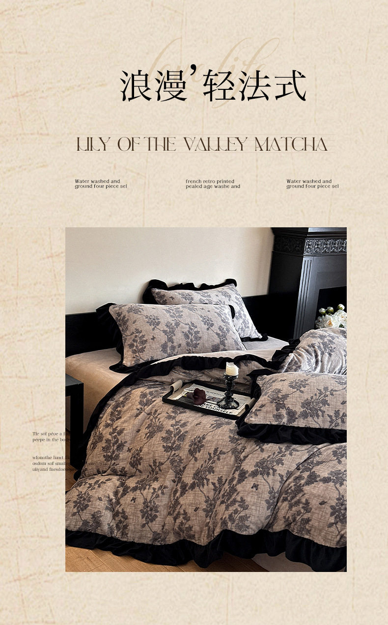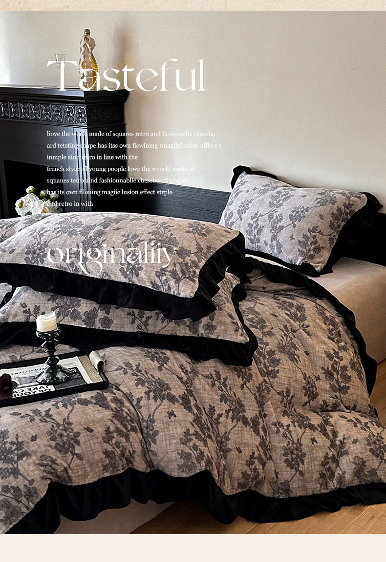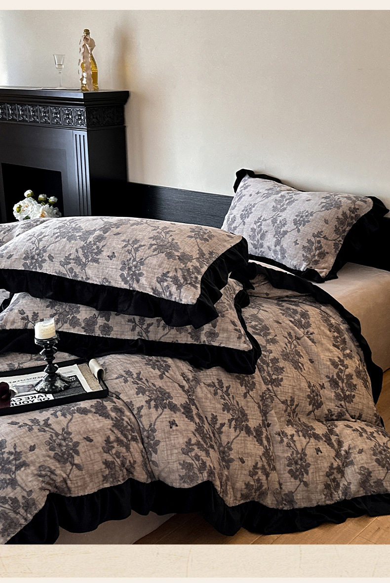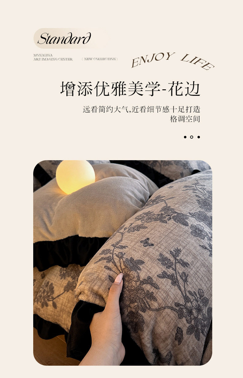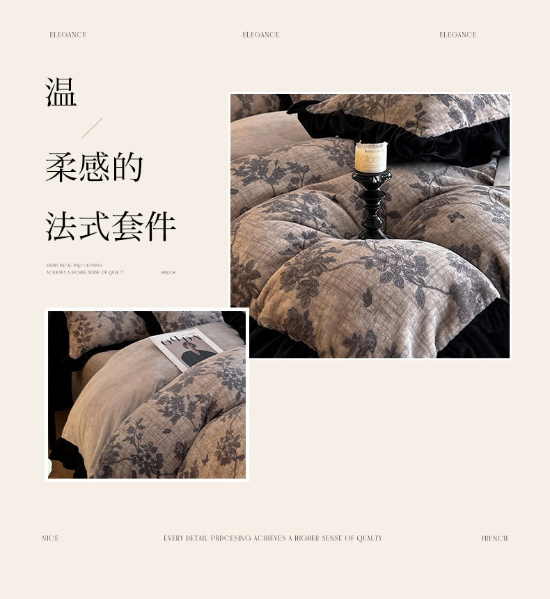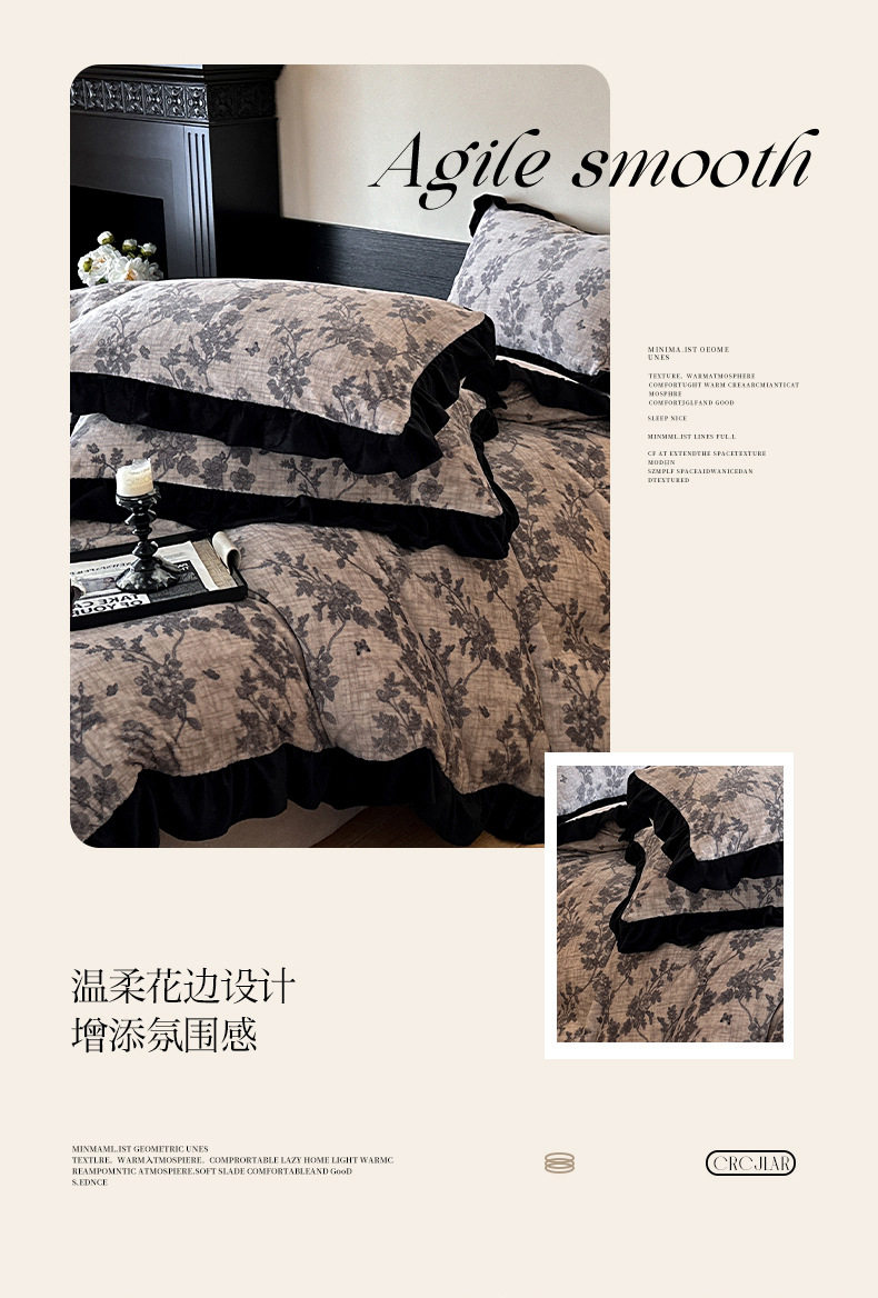 Autumn and Winter French Retro Style Milk Velvet Four-Piece Set Flannel Coral Velvet Lace Quilt Cover Bed Sheetss and Fitted Bed Sheetss Three-Piece Set