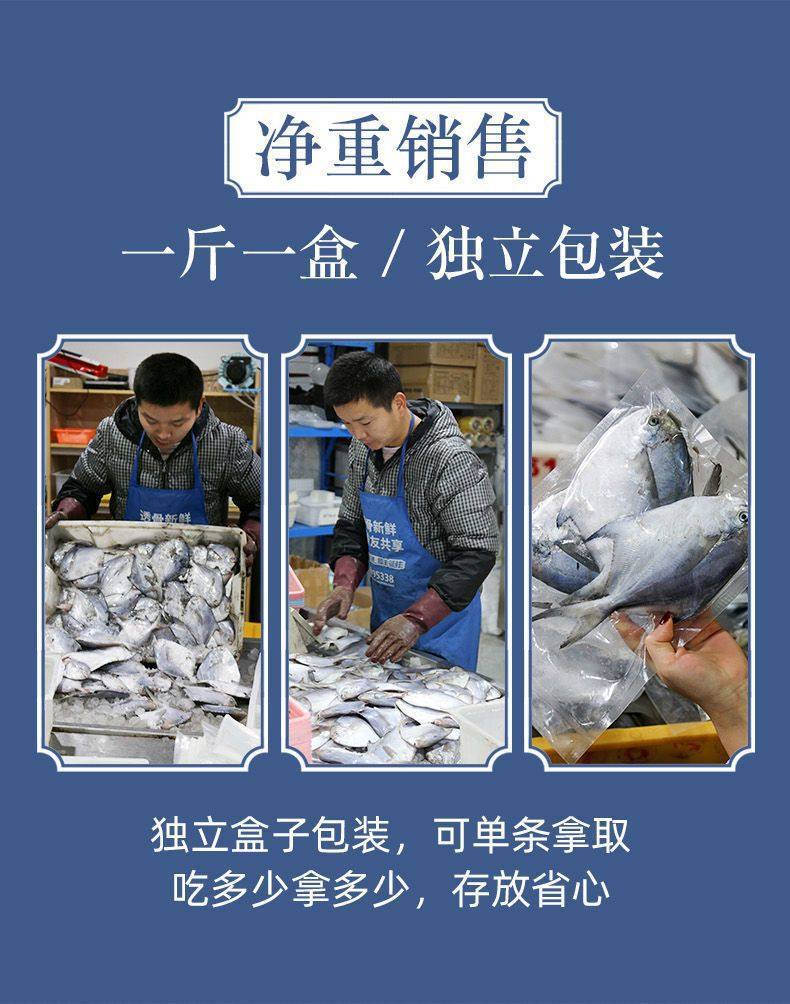[Net Weight Without Ice] Fresh Frozen Pomfret, East China Sea Silver Pomfret, Fresh Seafood, Aquatic Products, Sea-Caught White Pomfret, Flat Fish