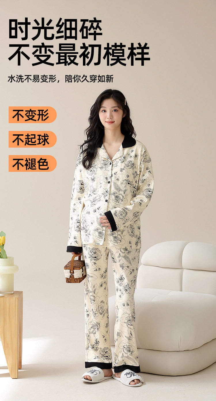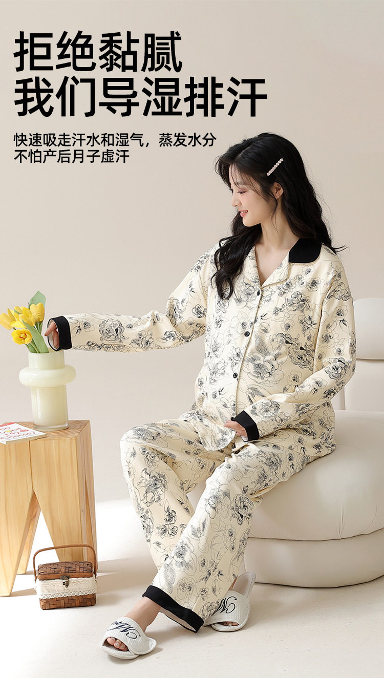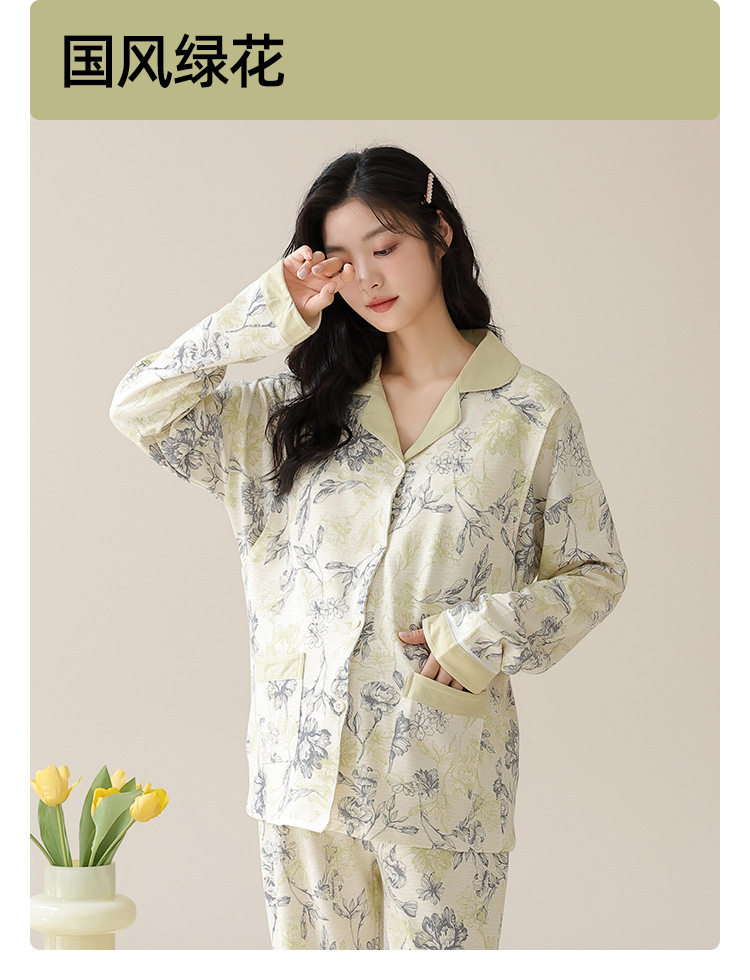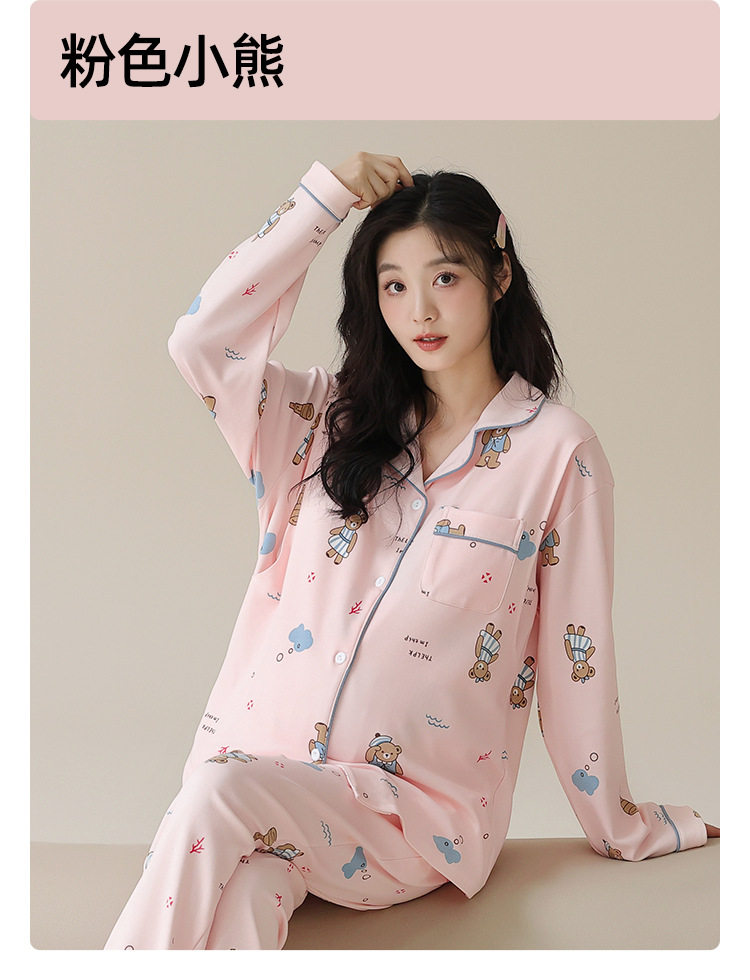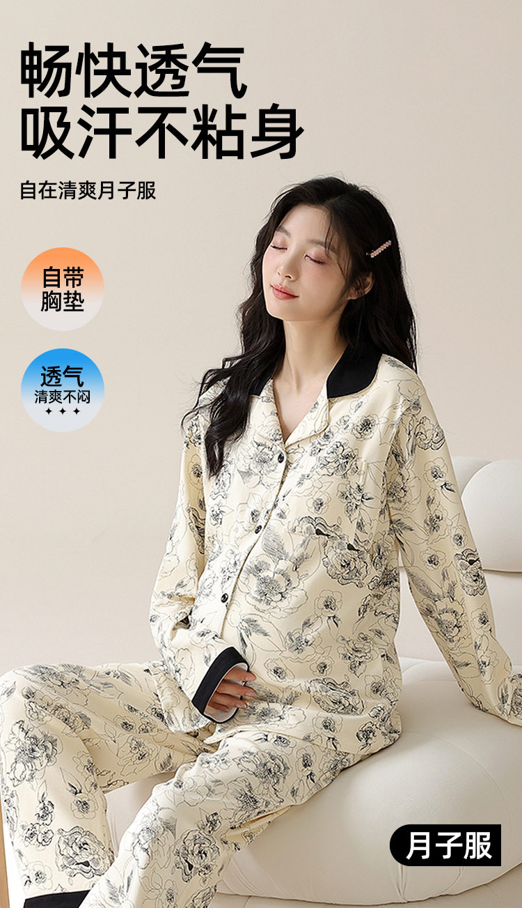 Jingqi Postpartum Clothing October Postpartum Pure Cotton with Breast Pad Nursing Pajamas Pregnancy Pregnant Women Breastfeeding Home Clothes Women