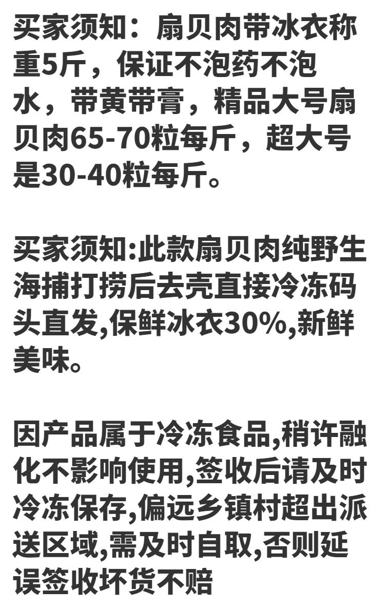 | Packaging specifications | § 0.5kg large 500g scallop meat (small quantity, high price) ⚑ ⚑ |
