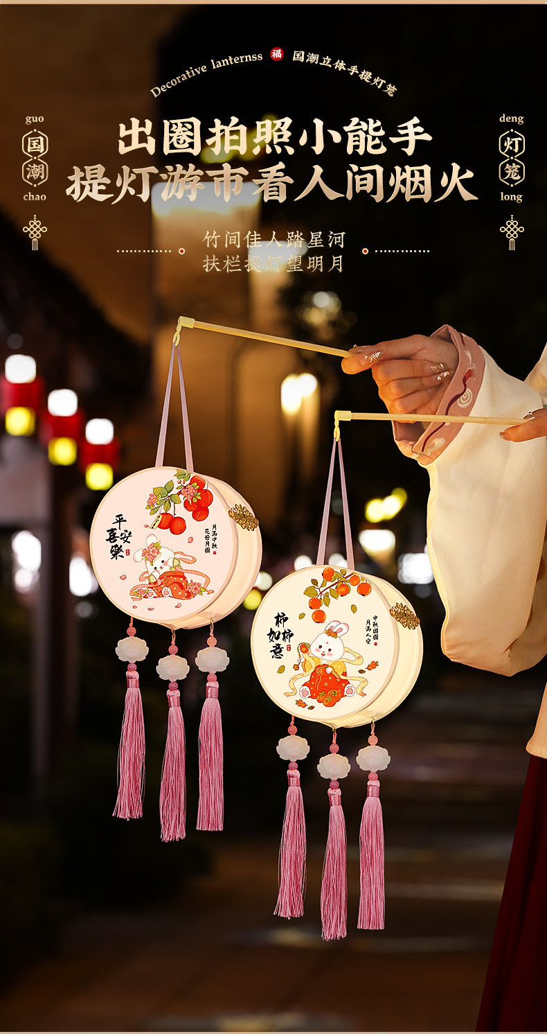 Mid-Autumn Lantern 2025 New Children's Portable Palace Lantern Chinese Ancient Style Rabbit Lantern Hanfu Photo Props Wholesale