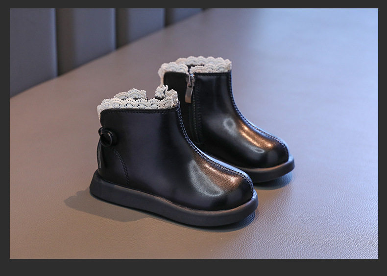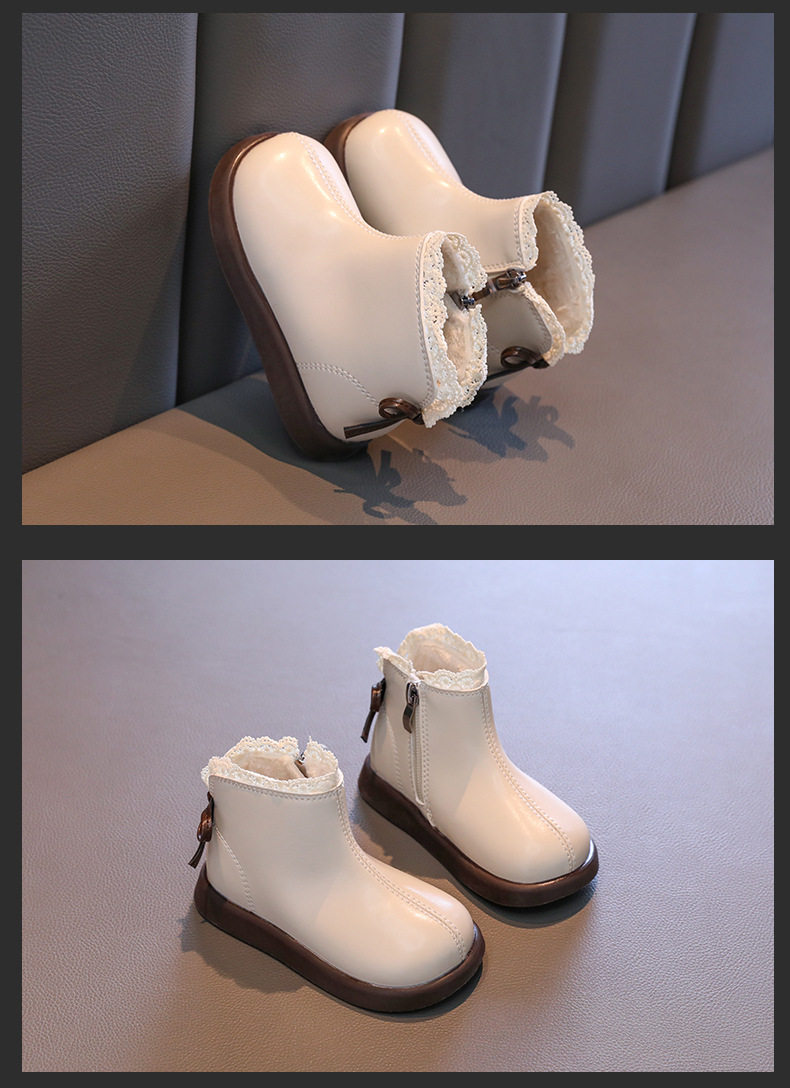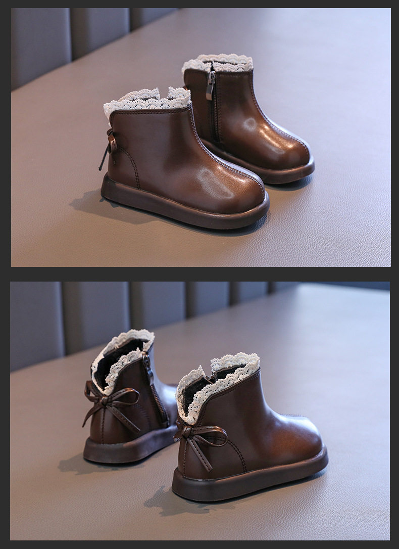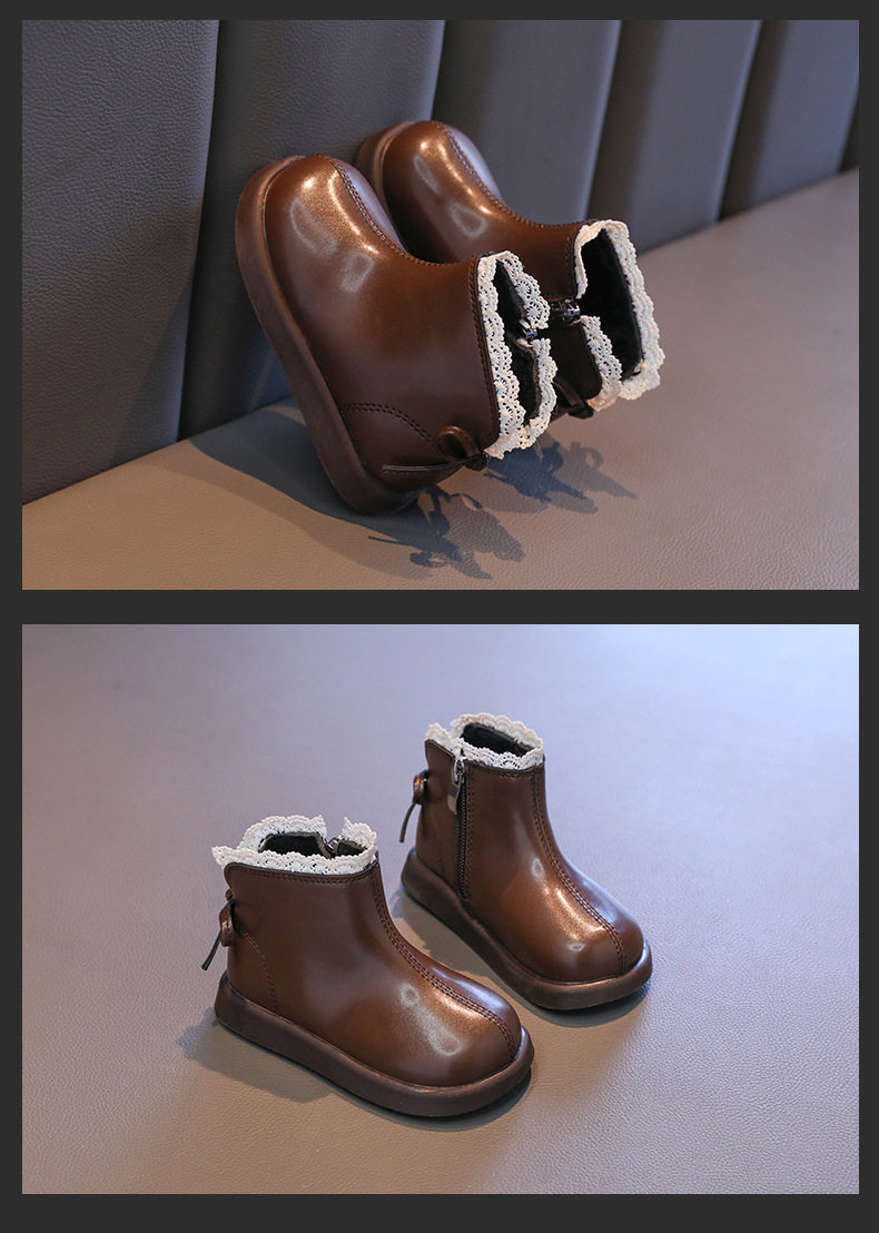 Girls' Leather Boots 2025 Autumn and Winter New Style Fleece-Lined Warm Cotton Boots Kidsren's Baby Short Boots Kidsren's Boots