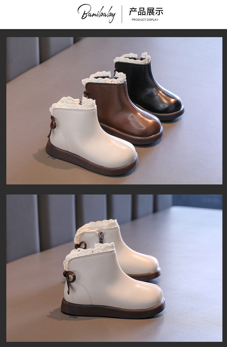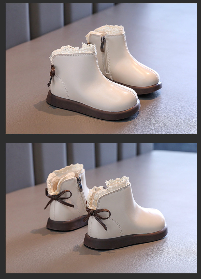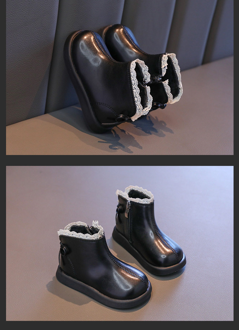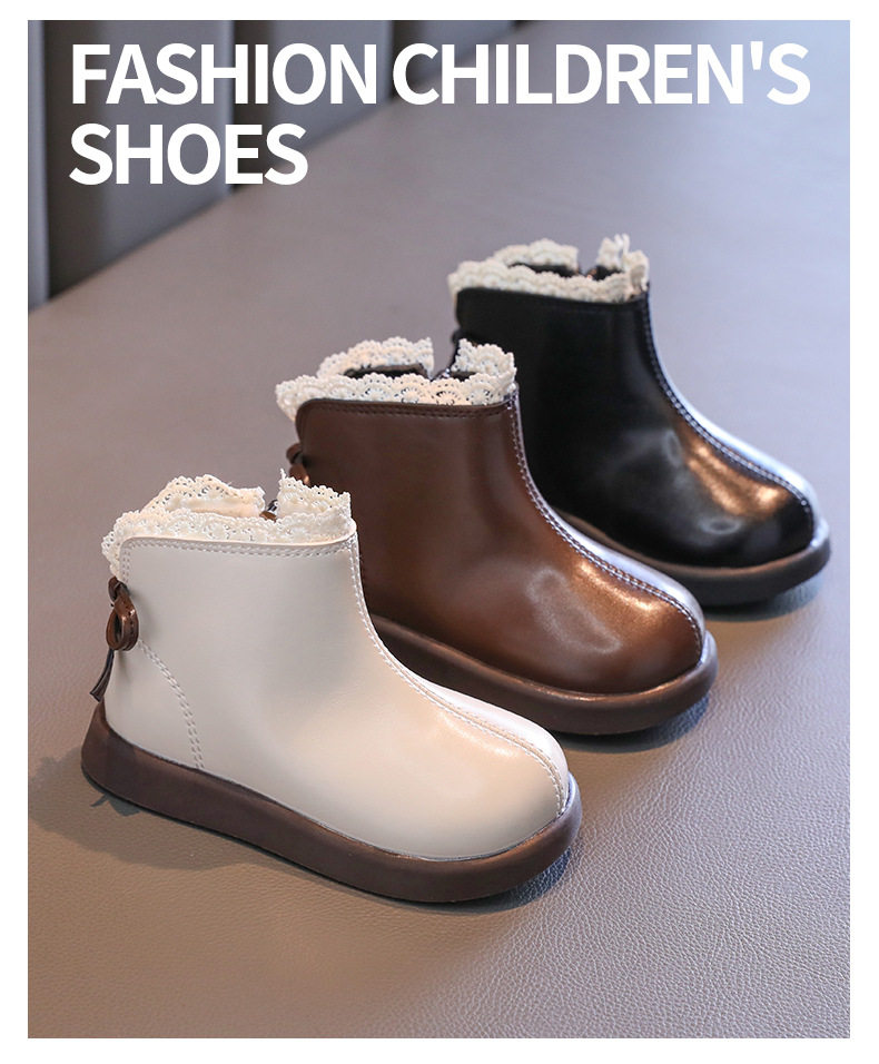 Girls' Leather Boots 2025 Autumn and Winter New Style Fleece-Lined Warm Cotton Boots Kidsren's Baby Short Boots Kidsren's Boots