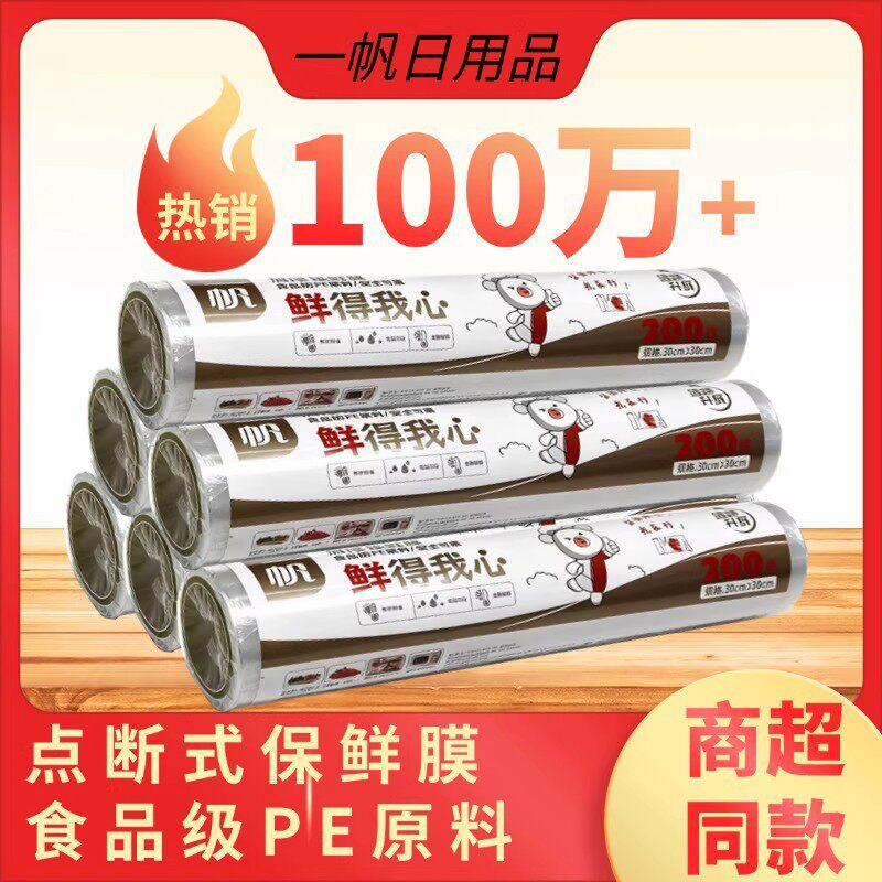 Plastic Wrap Food Grade Household High Temperature Resistant Thickeneded Pe Point-Break Continuous Roll Refrigerator Vegetable and Fruit Preservation Wholesale