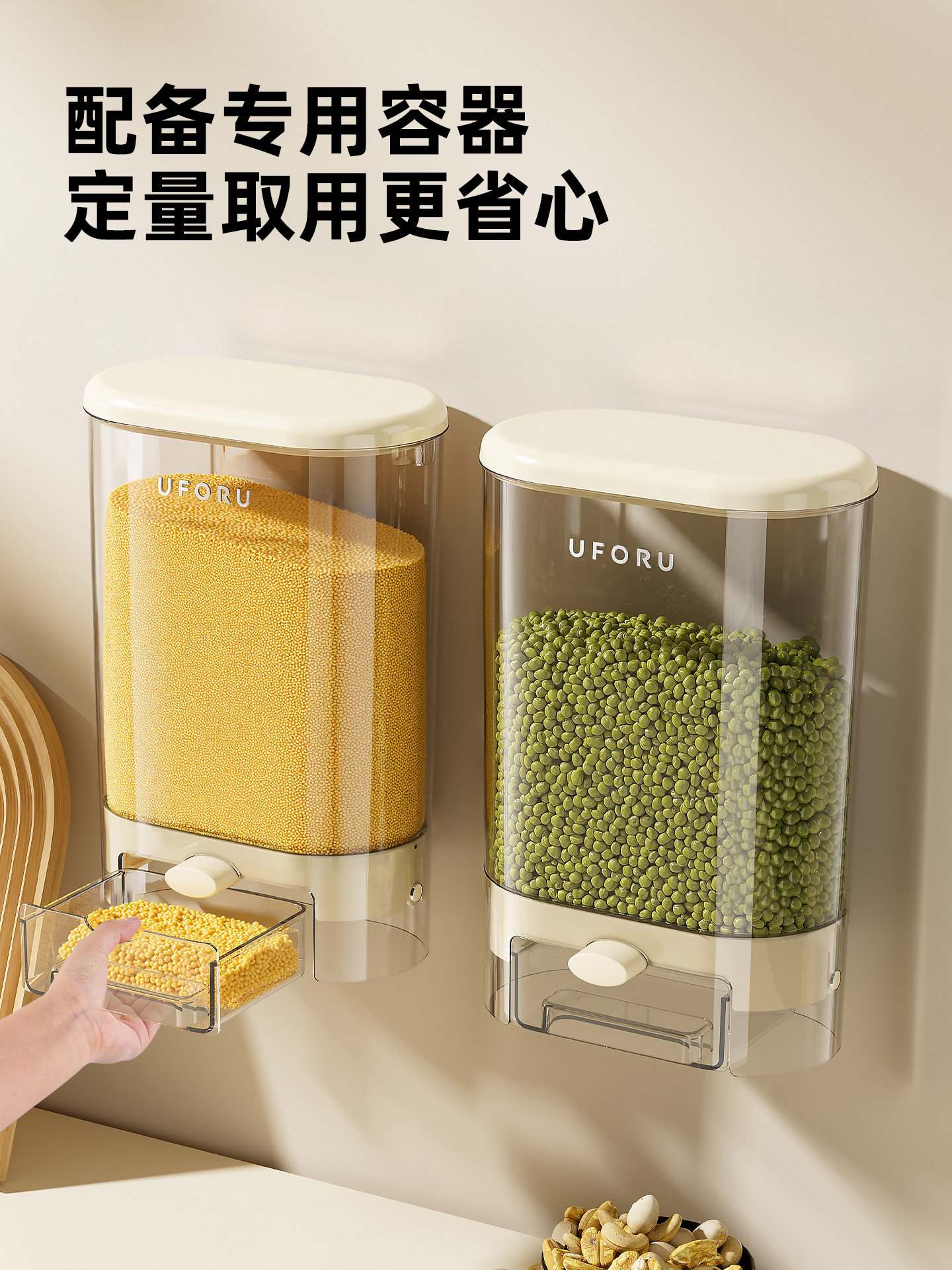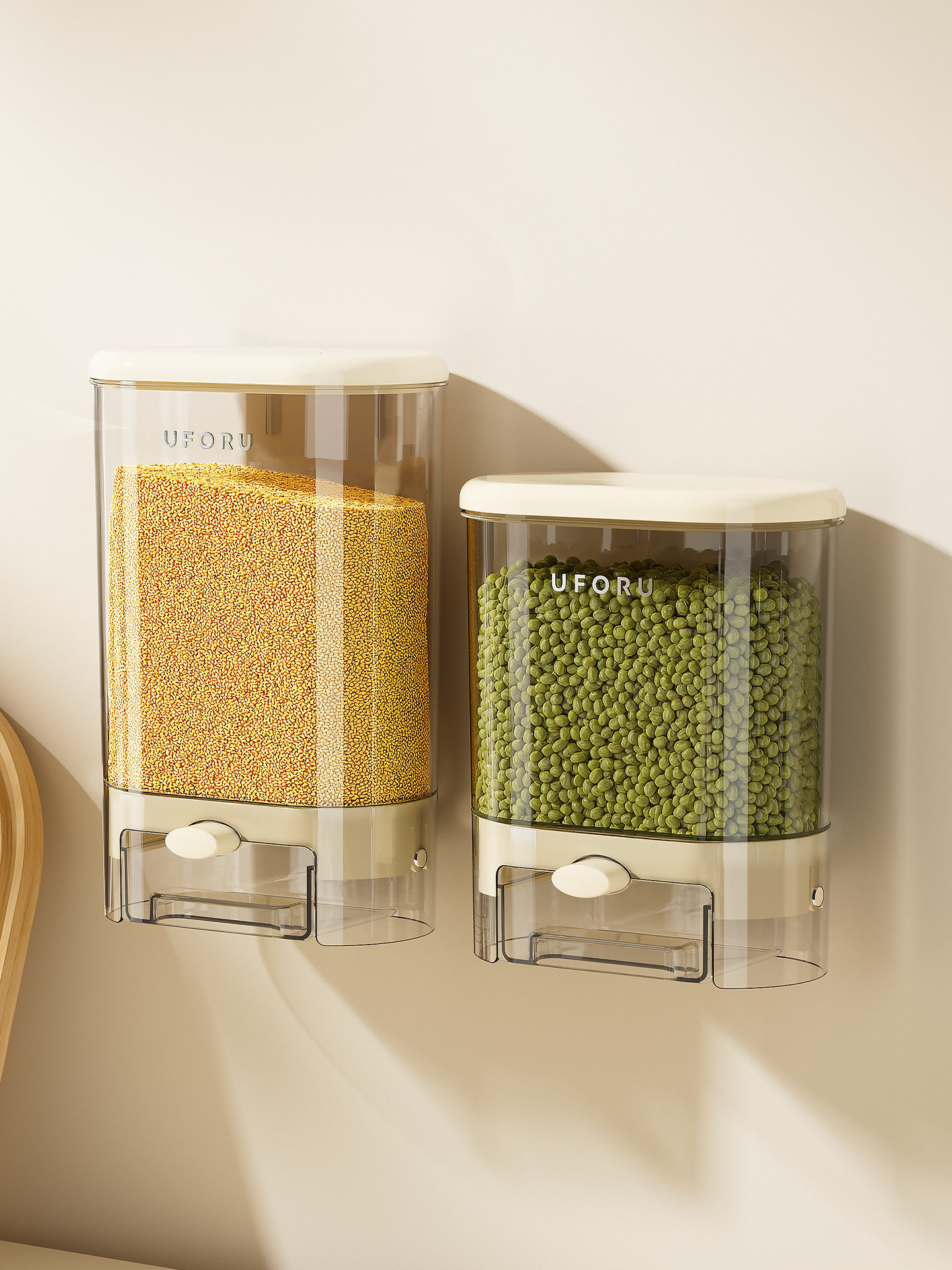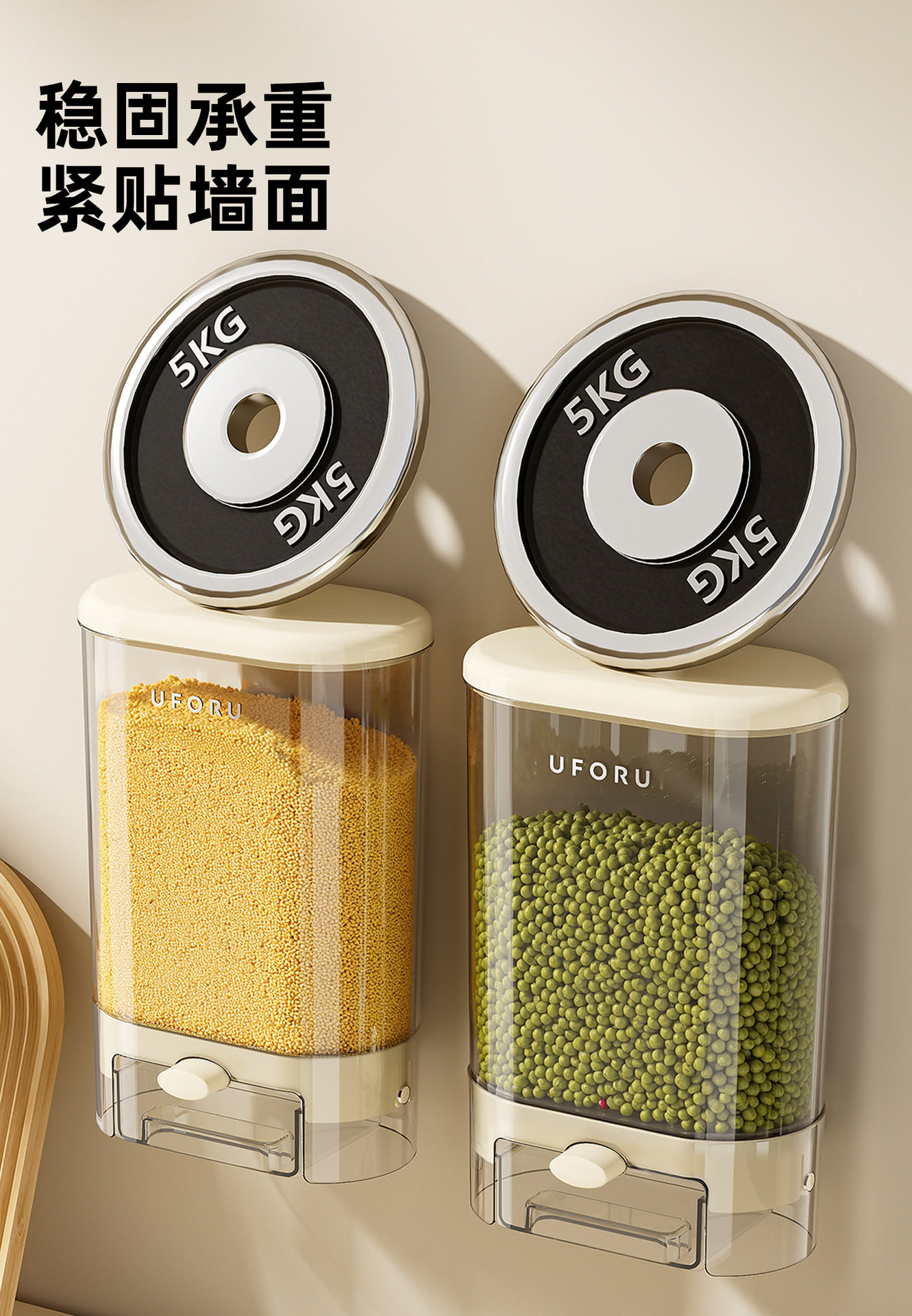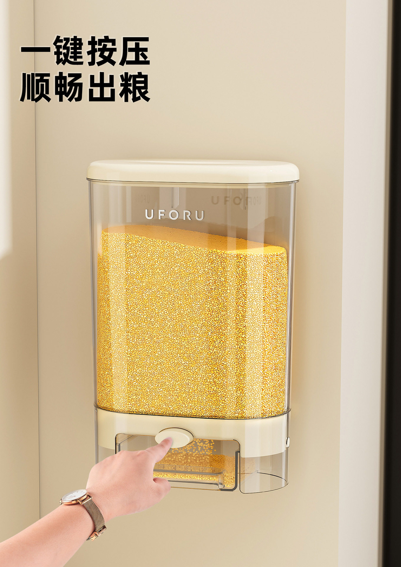 Grain Storage Box for Home Kitchen, Food-Grade Sealed Jar, Large Capacity, Wall-Mounted, Press-To-Dispense Grain Jar