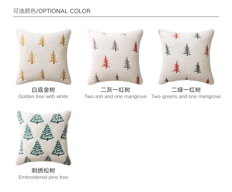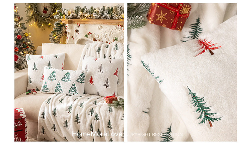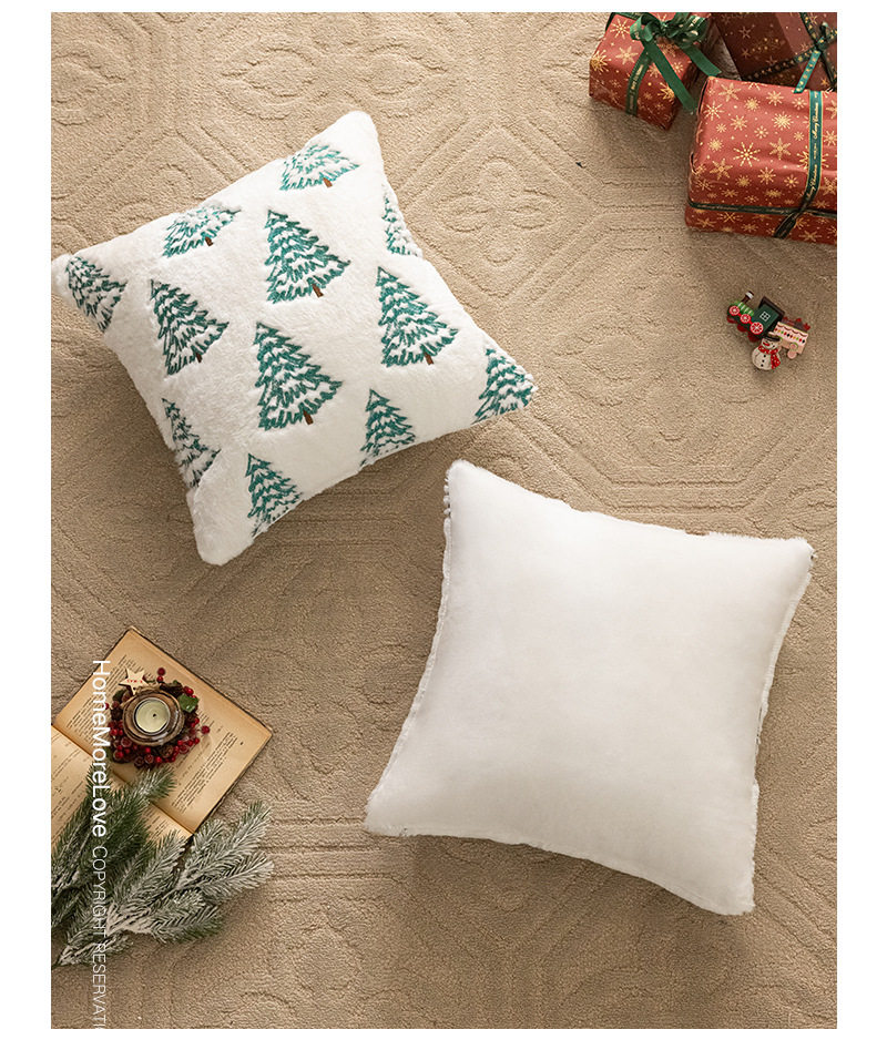 Imitation Rabbit Fur Plush Pillow Cover Christmas Tree Embroider Living Room Sofa Cushion Cushion Christmas Atmosphere Decoration