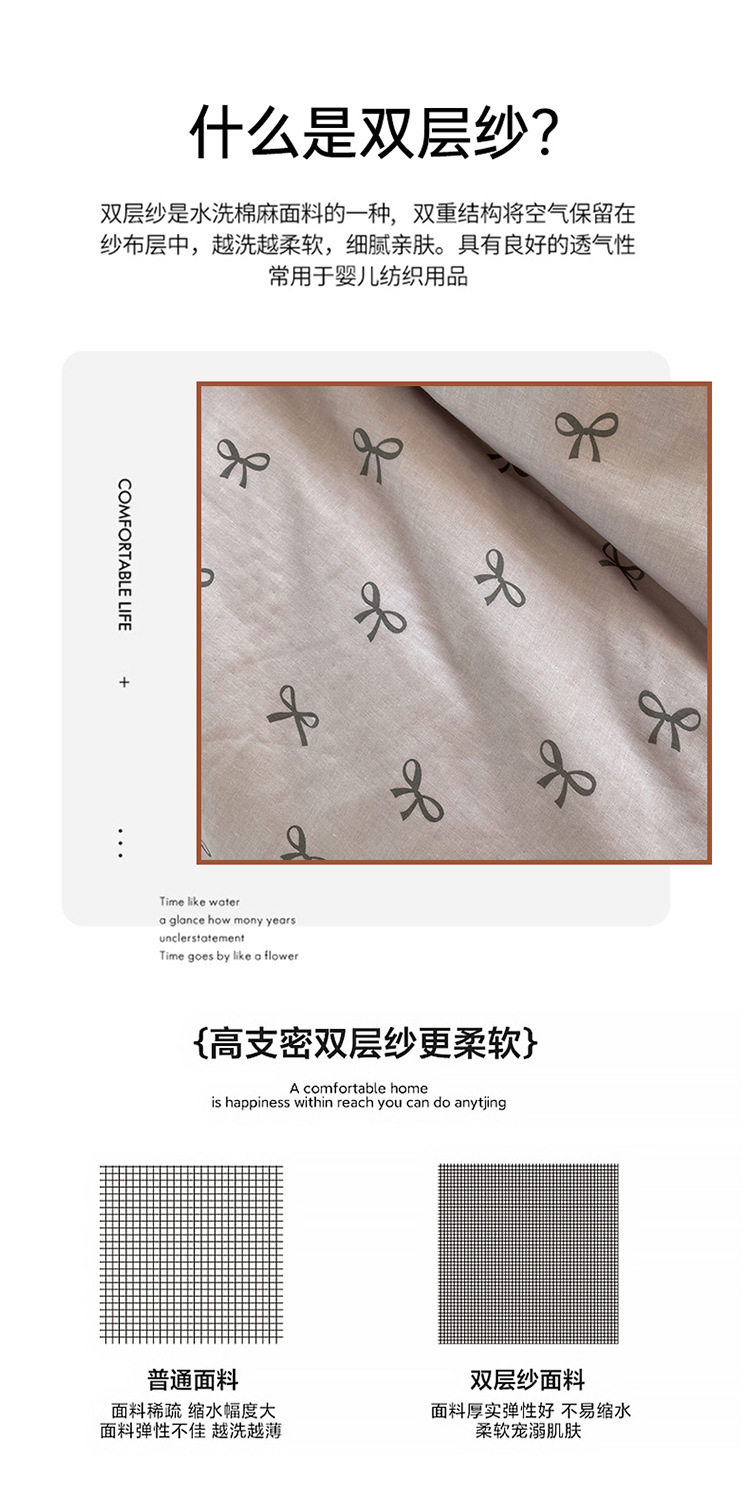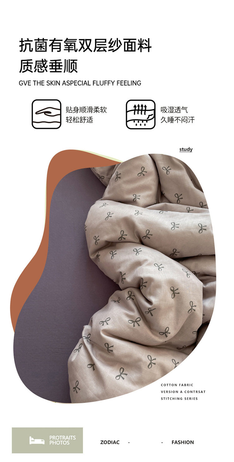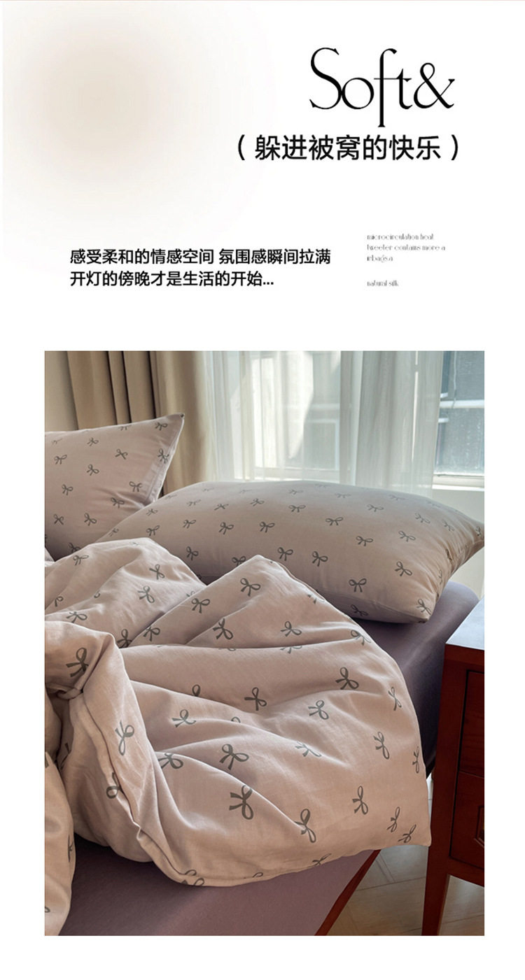 ✅ Class a Aerobic Double-Layer Gauze Four-Piece Set, Maternal and Infant Grade, Soft and Delicate, Fresh and Simple Printed Three-Piece Set