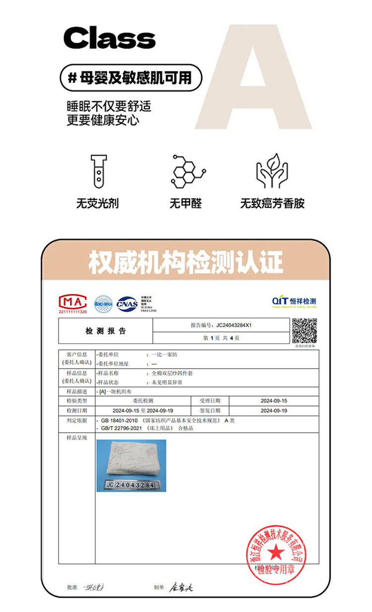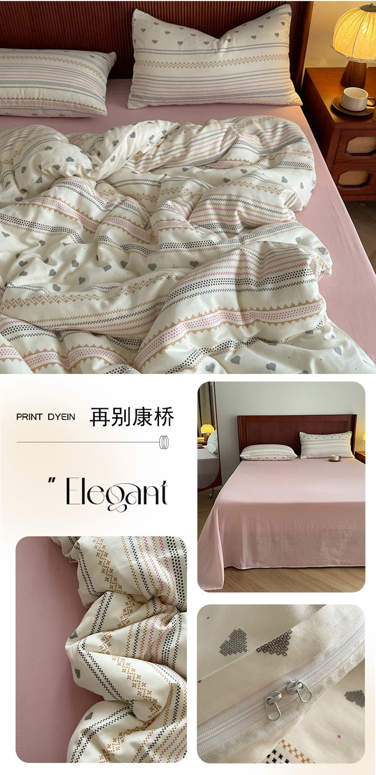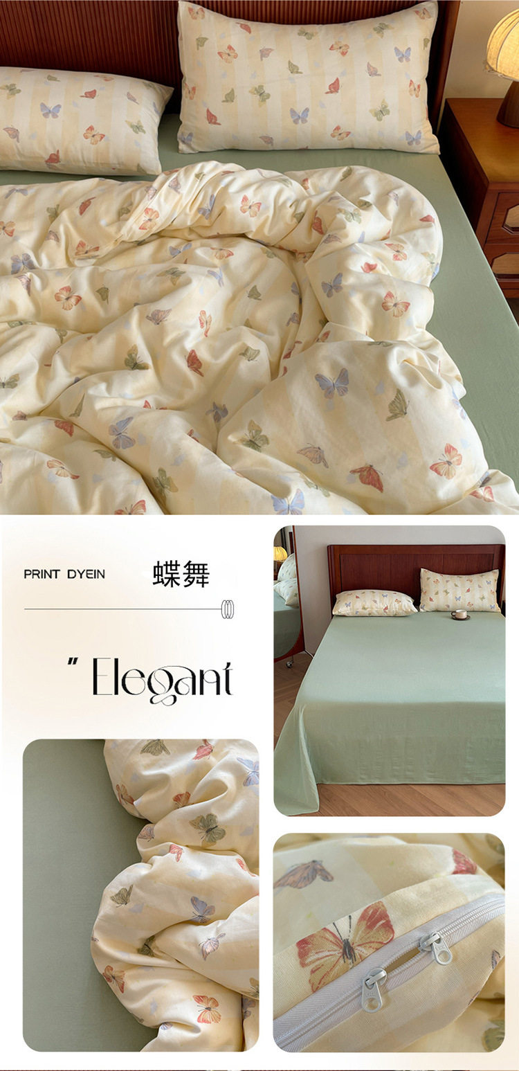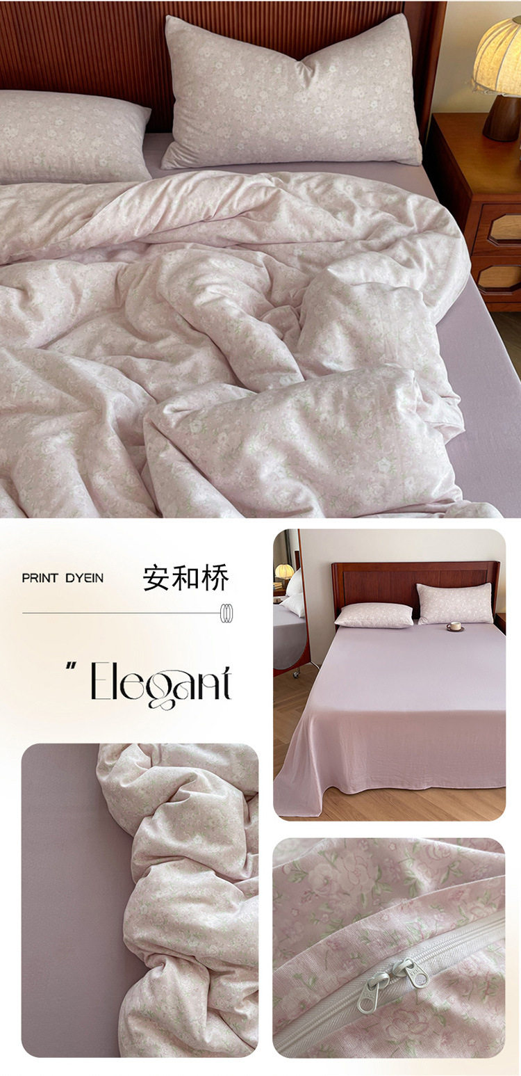 ✅ Class a Aerobic Double-Layer Gauze Four-Piece Set, Maternal and Infant Grade, Soft and Delicate, Fresh and Simple Printed Three-Piece Set