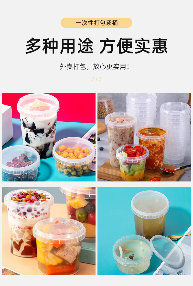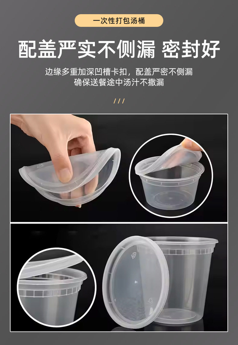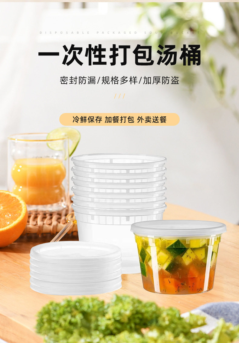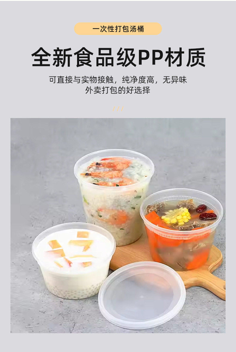 Disposable Soup Bucket for Packaging Hot Soup and Porridge, Food-Grade Pp Packaging Box, Lunch Box, Round Lunch Box with Lid, Cup, Bowl, Leak-Proof