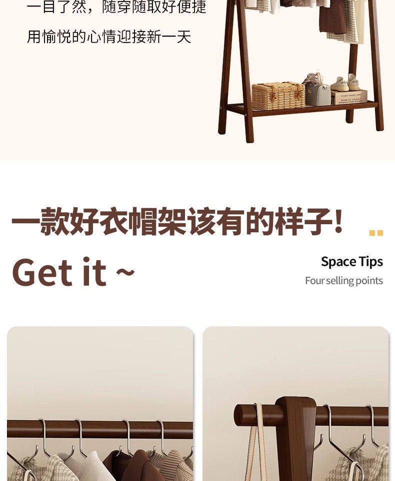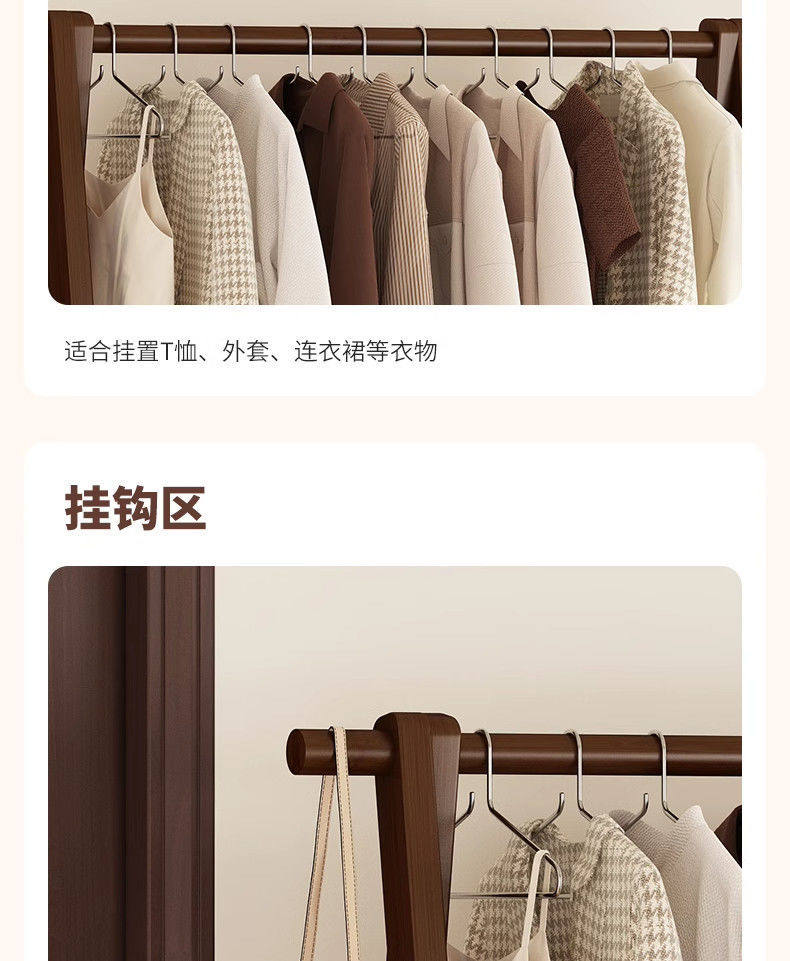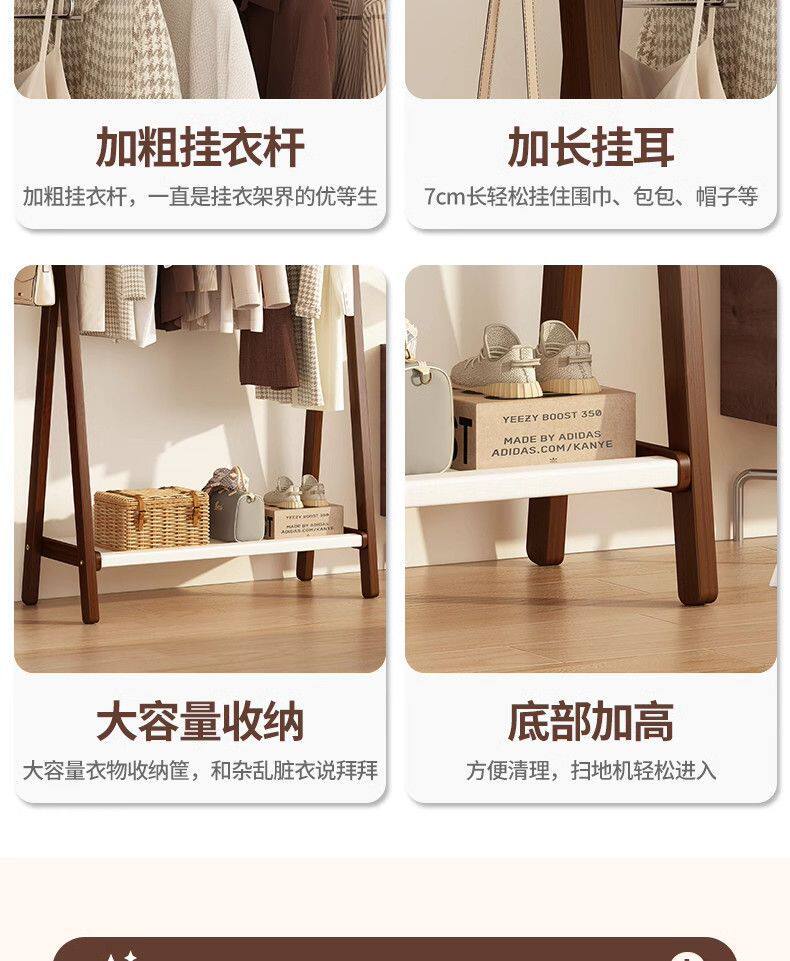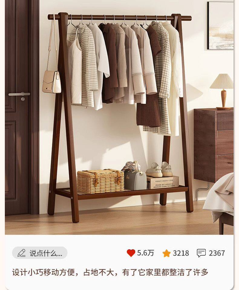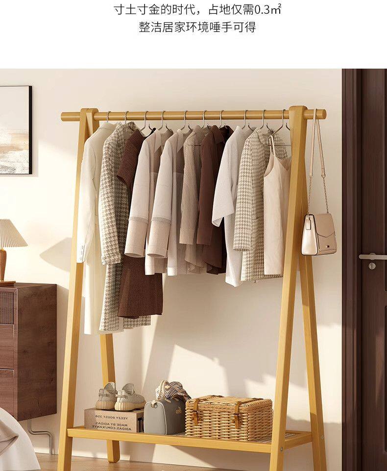 Clothes Rack Floor-Standing Bedroom Household Clothes Rack Vertical Solid Wood Multi-Functional Simple Clothes Storage Coat Rack Storage Rack