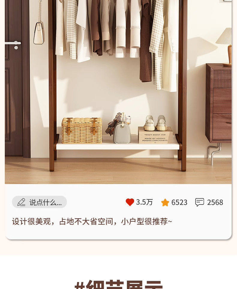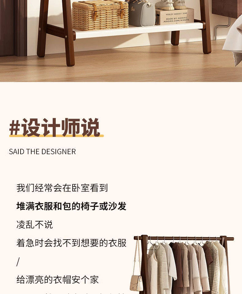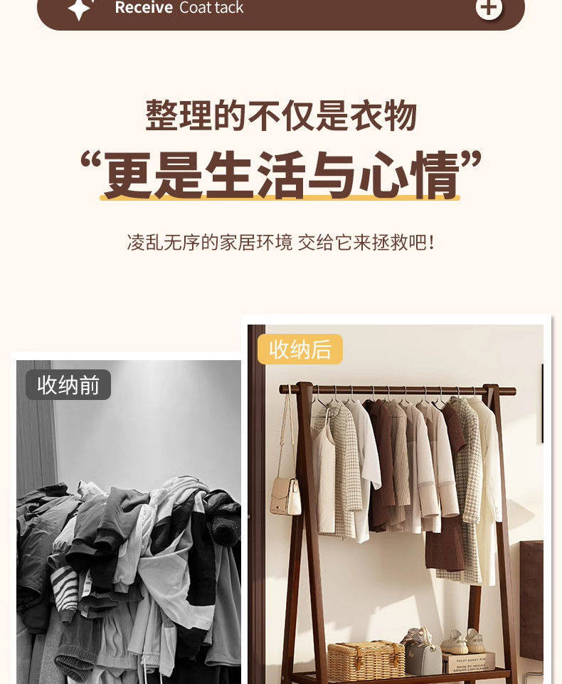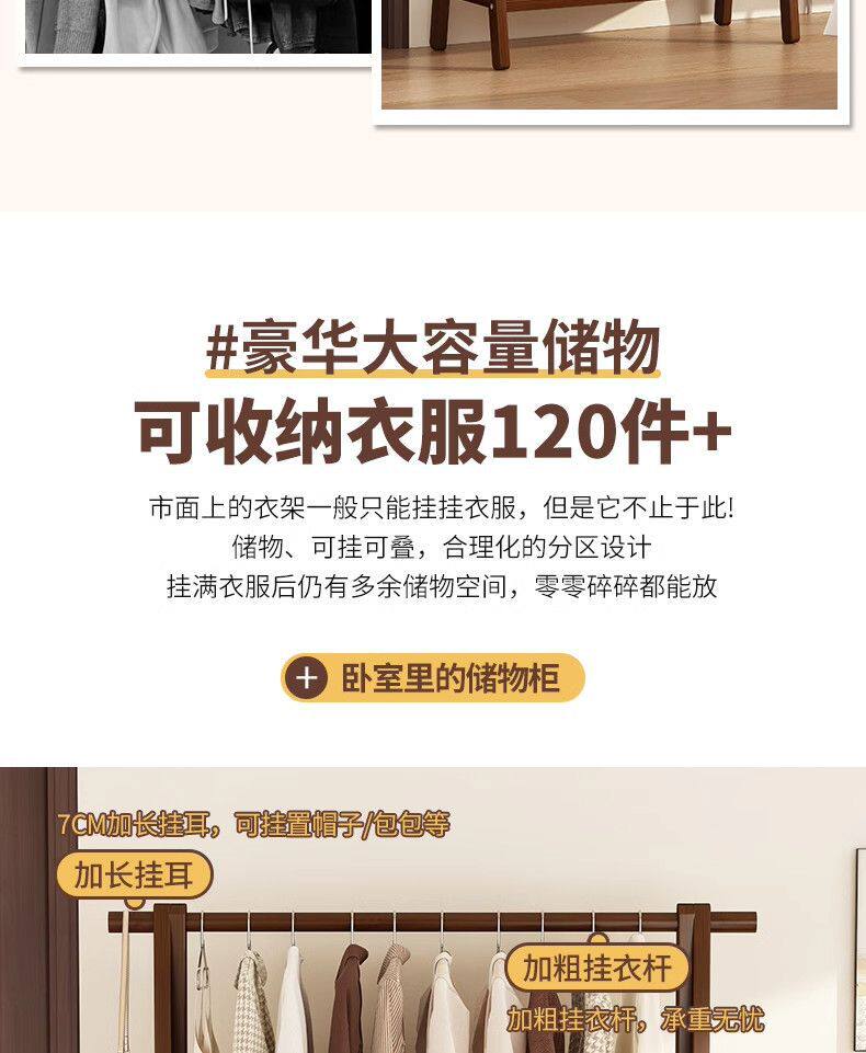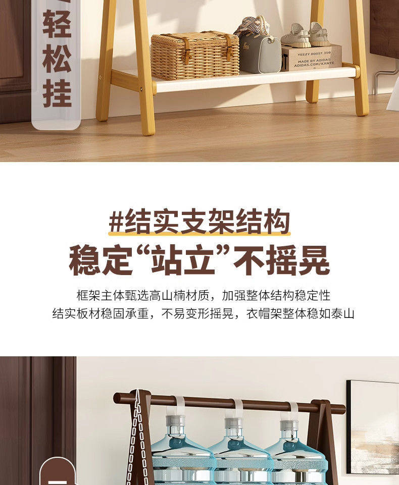 Clothes Rack Floor-Standing Bedroom Household Clothes Rack Vertical Solid Wood Multi-Functional Simple Clothes Storage Coat Rack Storage Rack
