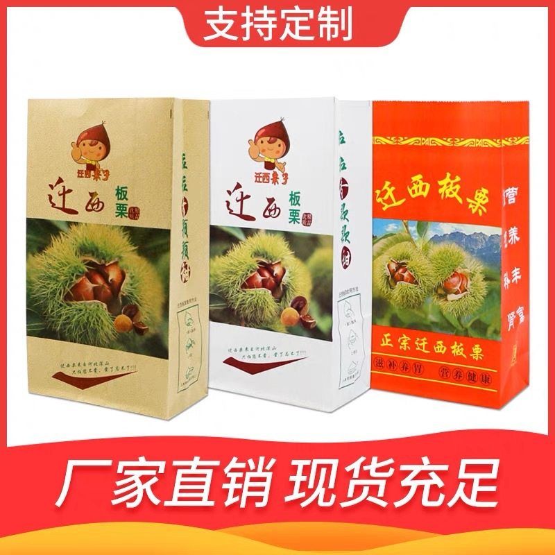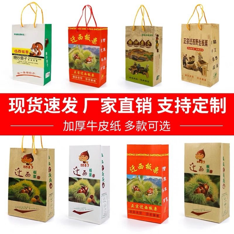 Qianxi Chestnut Paper Bag Sugar Fried Chestnut Packaging Bag Wild Mountain Oil Chestnut Handbag Thickeneded Nut Kraft Paper Bag Wholesale