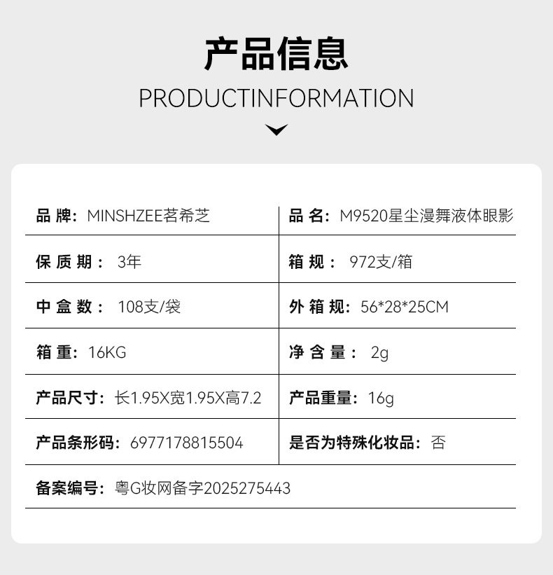 | Product name | M9520 stardust liquid eyeshadow |