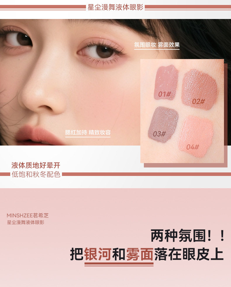 Ming Xizhi Liquid Eye Shadow Fine Shimmer Low Saturation Earth Color Matte Pearlescent Single Color Eye Shadow Liquid Women's Cross-Border Eye Shadow