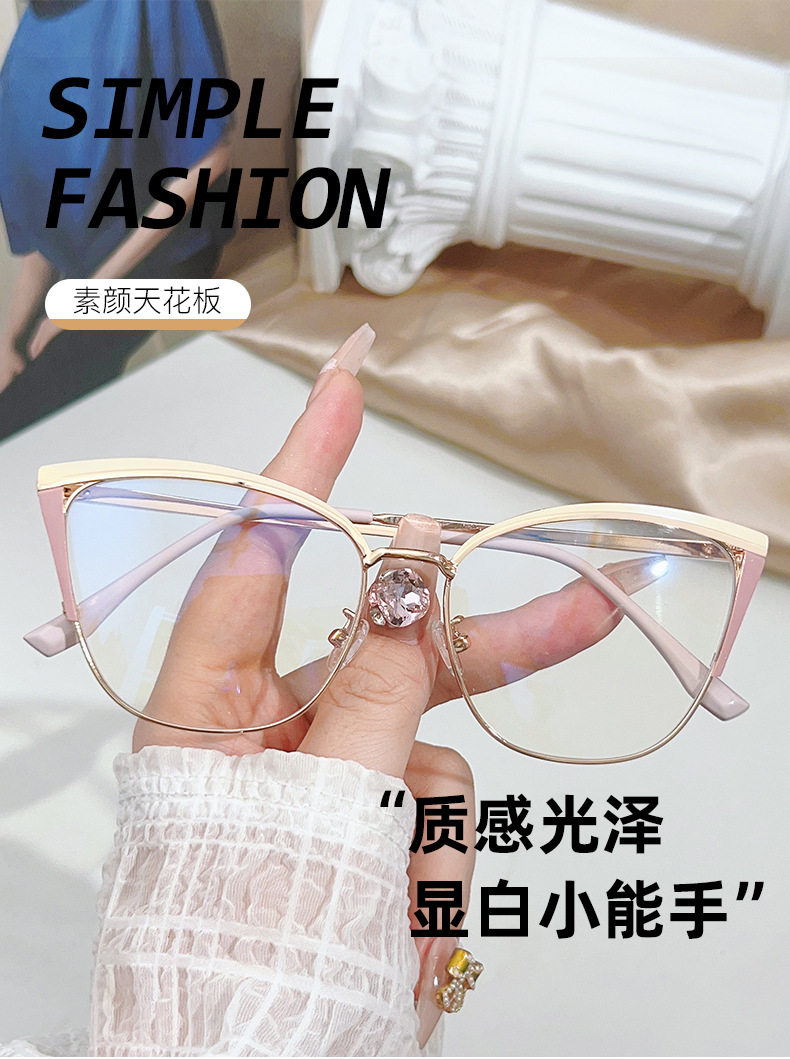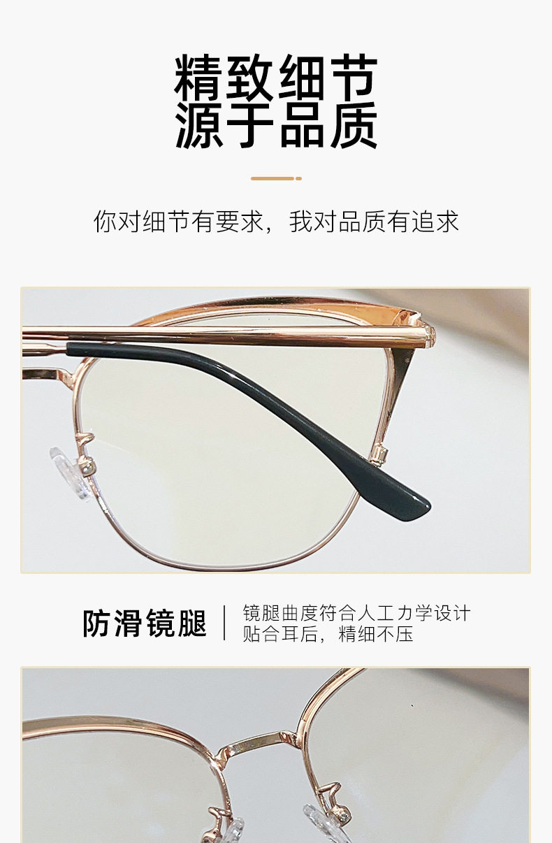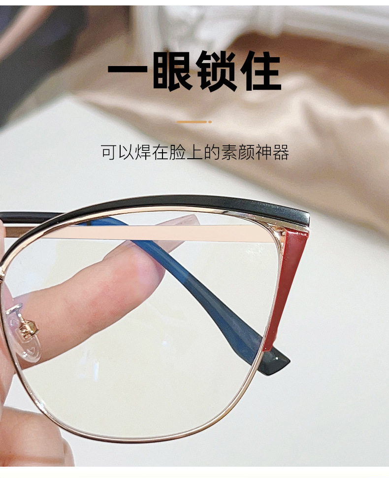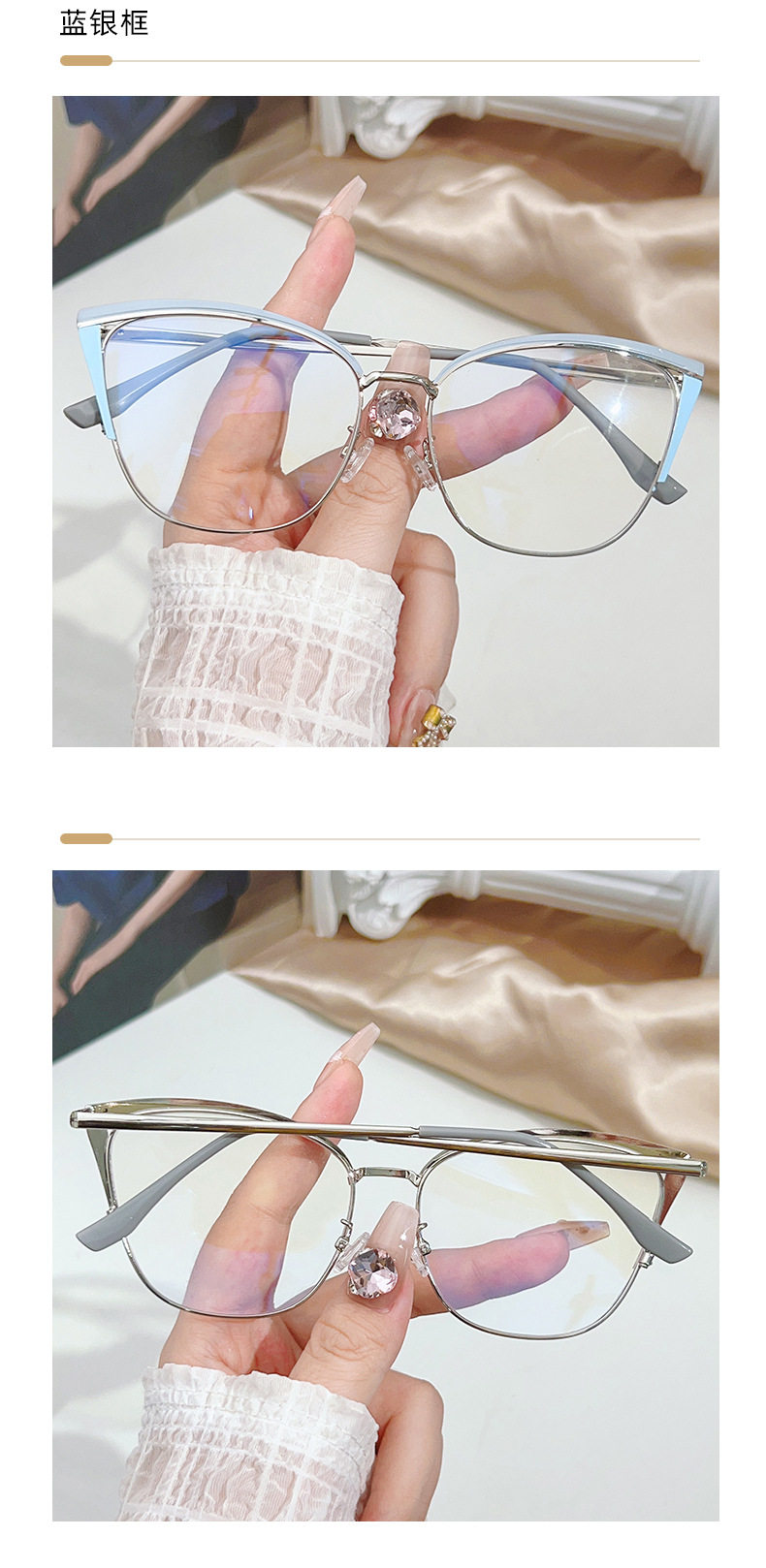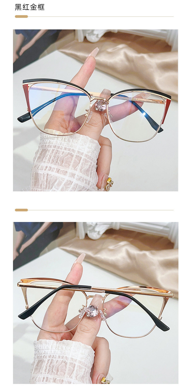 Cross-Border Women's Cat-Eye Computer Glasses Anti-Blue Light Myopia Glasses Frame Metal Two-Color Retro Personalized Trendy Glasses Frame