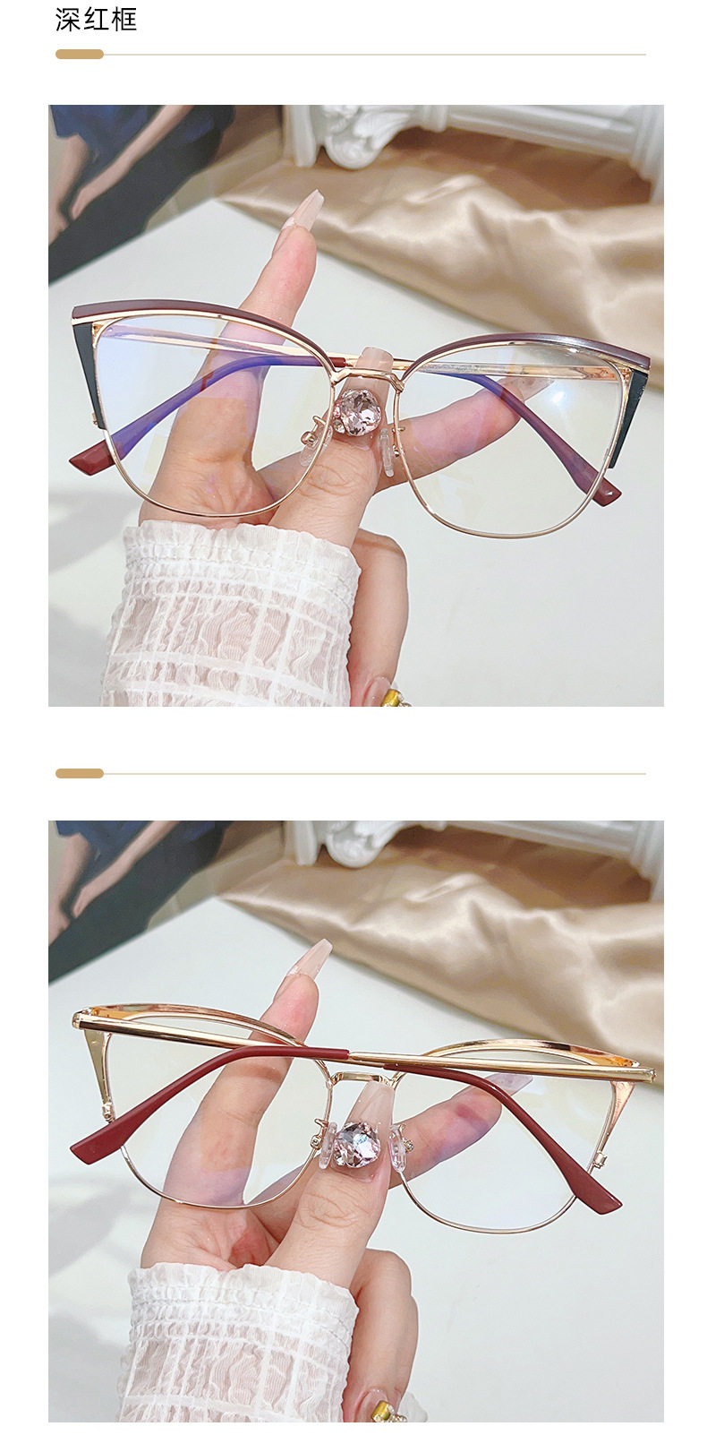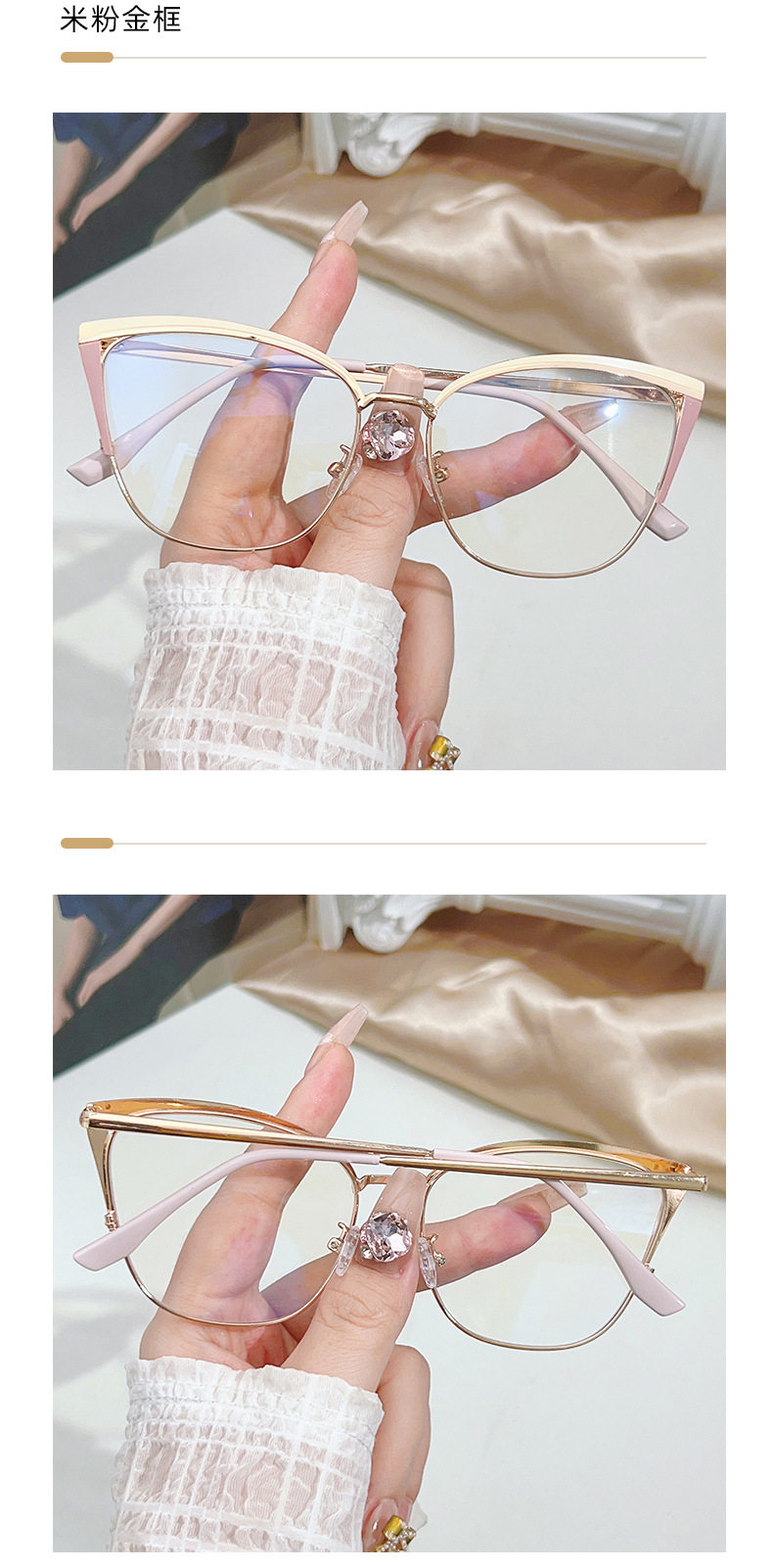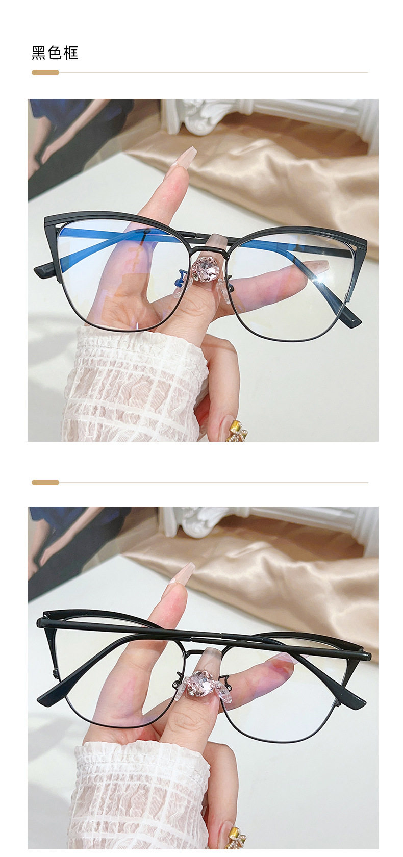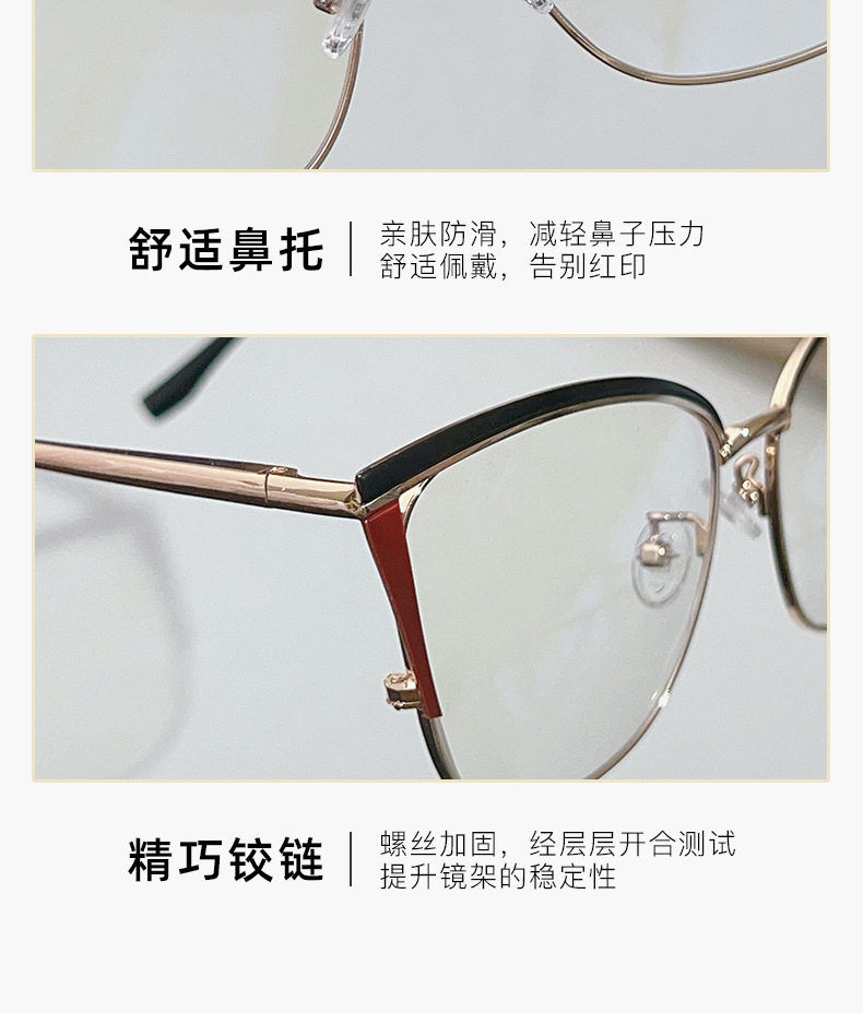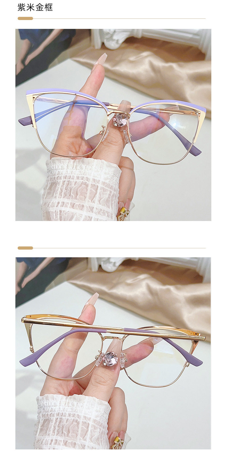 Cross-Border Women's Cat-Eye Computer Glasses Anti-Blue Light Myopia Glasses Frame Metal Two-Color Retro Personalized Trendy Glasses Frame