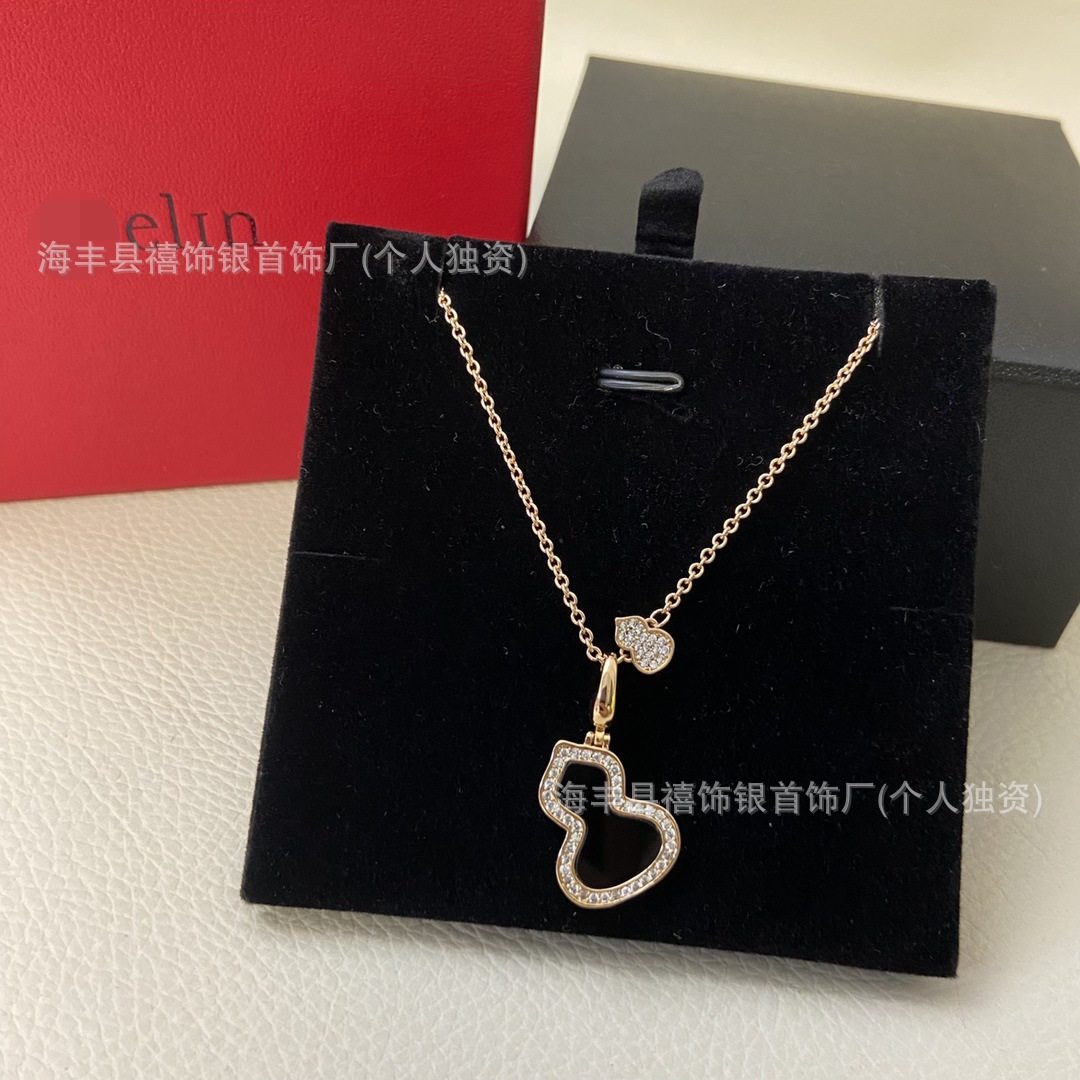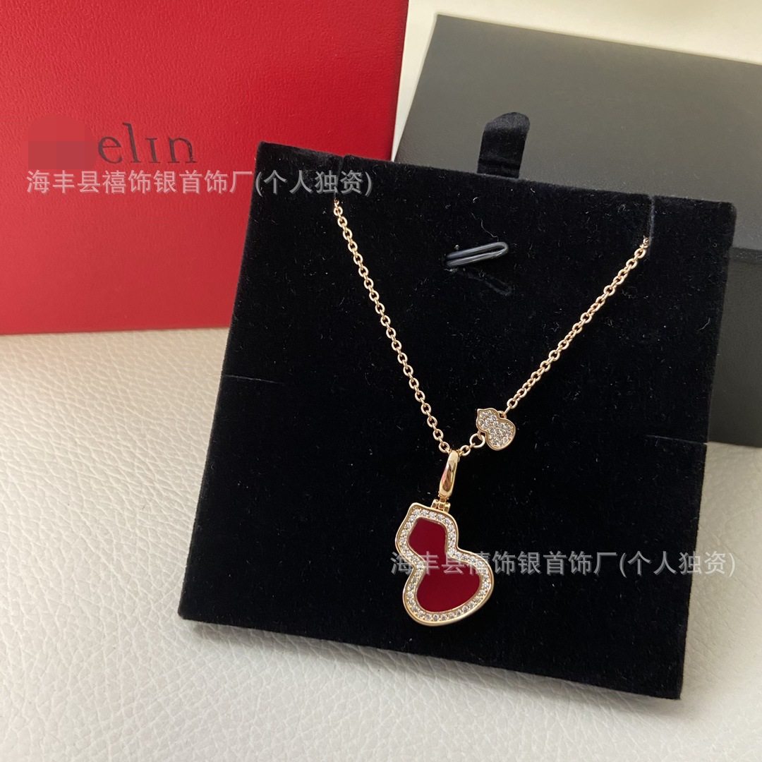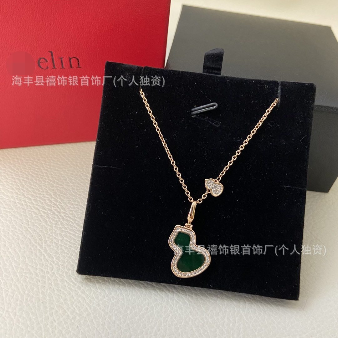 High Version V Gold Gourd Necklace Women's Thick Plated 18K Rose Gold Linqi Natural Chalcedony Clavicle Chain Factory Direct Sales Wholesale