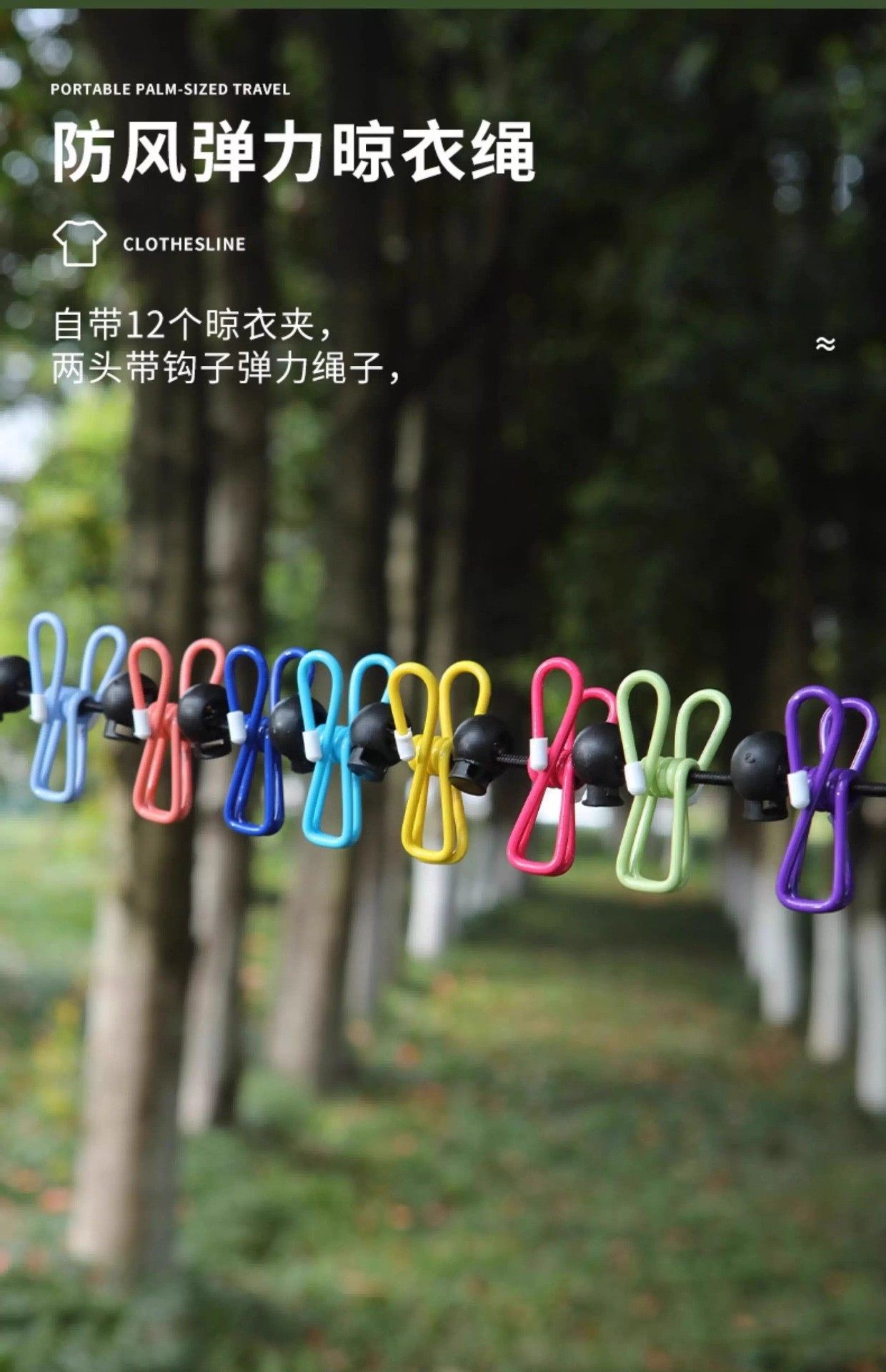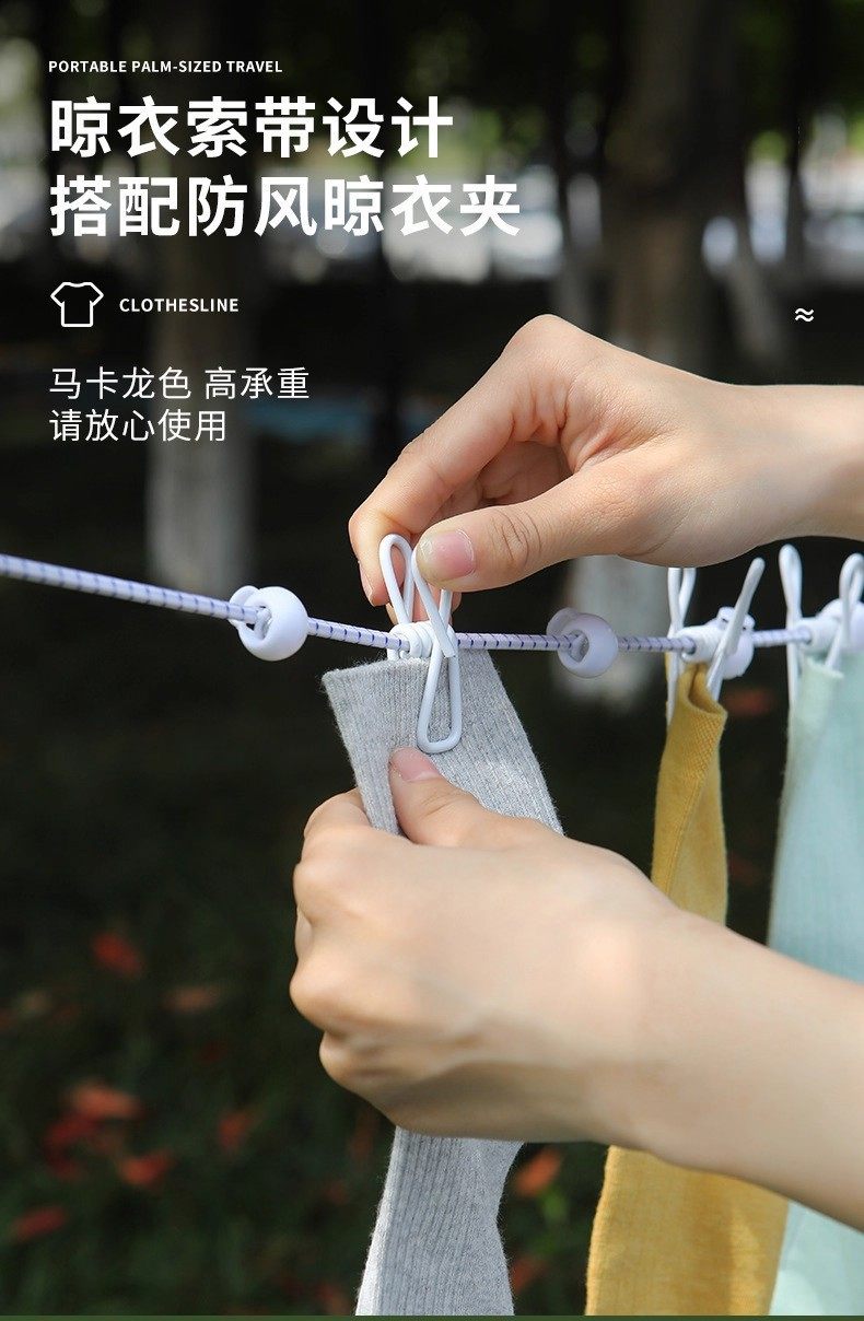 Travel Clothesline Outdoor Clothesline Portable Hotel Clothesline Windproof Elastic Travel Clothes Drying Artifact