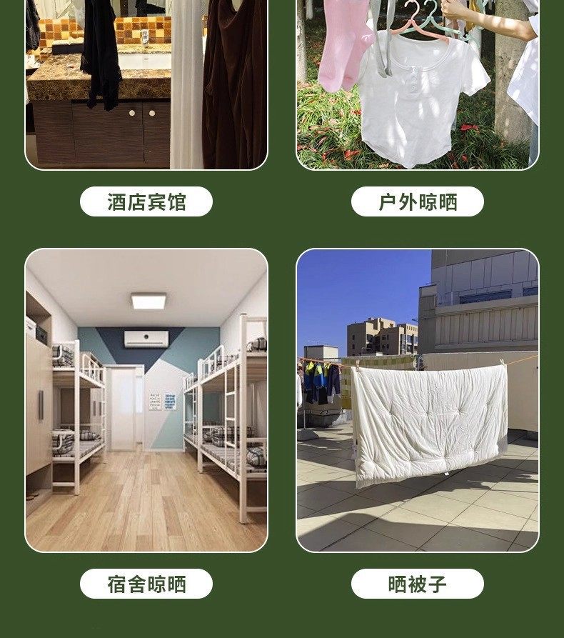 | Color | Telescopic drying rope with fixed beads [pink],Telescopic drying rope with fixed beads [purple],Telescopic drying rope with fixed beads [black],Telescopic drying rope with fixed beads [blue],Telescopic drying rope with fixed beads [red],Telescopic drying rope with fixed beads [green],Telescopic drying rope with fixed beads [white],Retractable clothesline fixing beads [rose red],Gray waterproof bag |