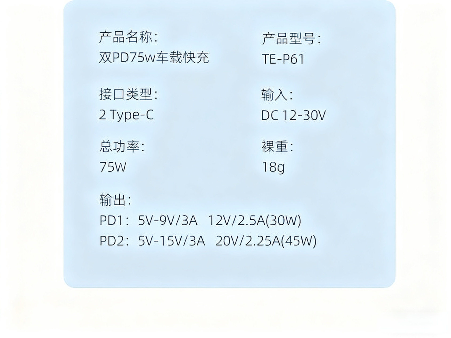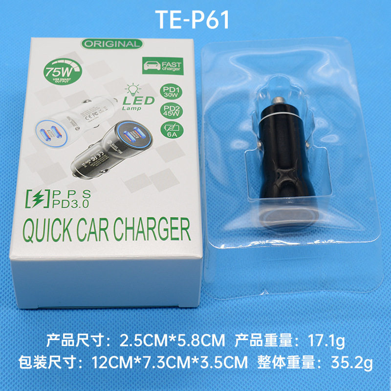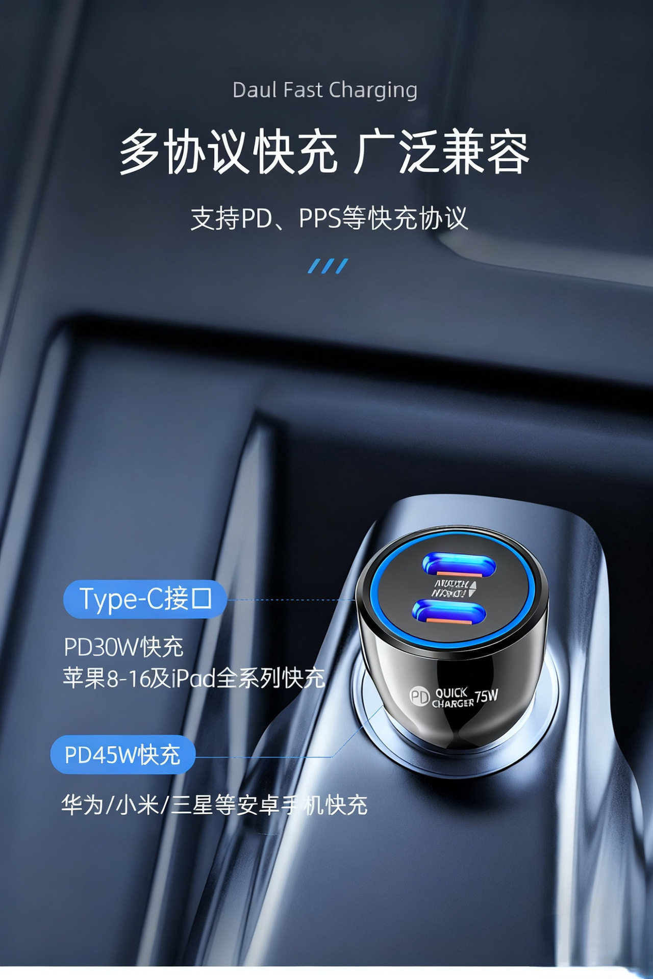 75W Dual-Port Car Charger Super Fast Charging Car Charger Typec Port Car Car Charger Car Charger