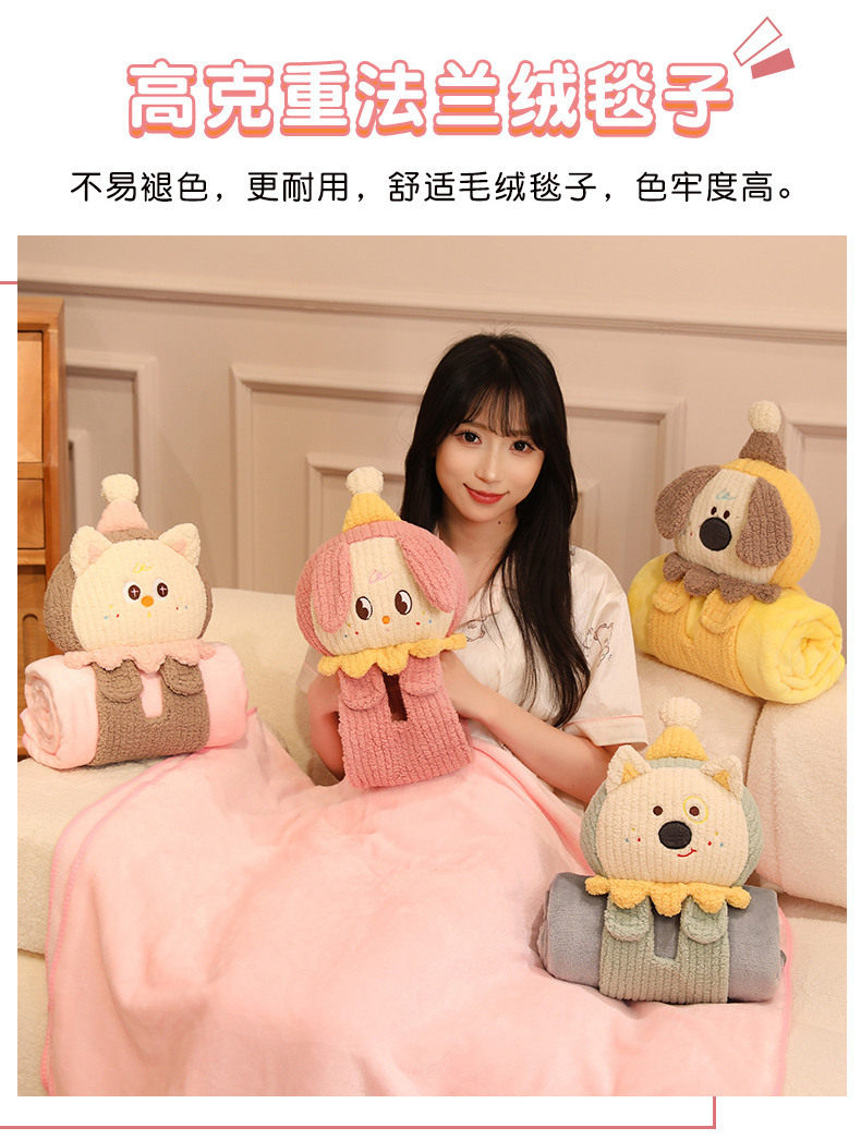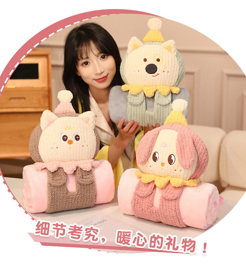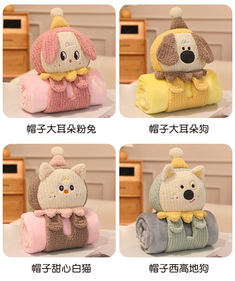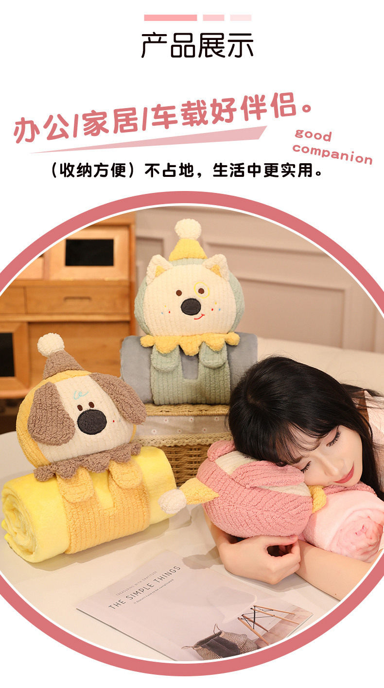 Three-Dimensional Roll Blanket Dual-Purpose Office Lunch Break Blanket Cute Puppy Cat Doll Sleeping Pillow Flannel Blanket Pillow