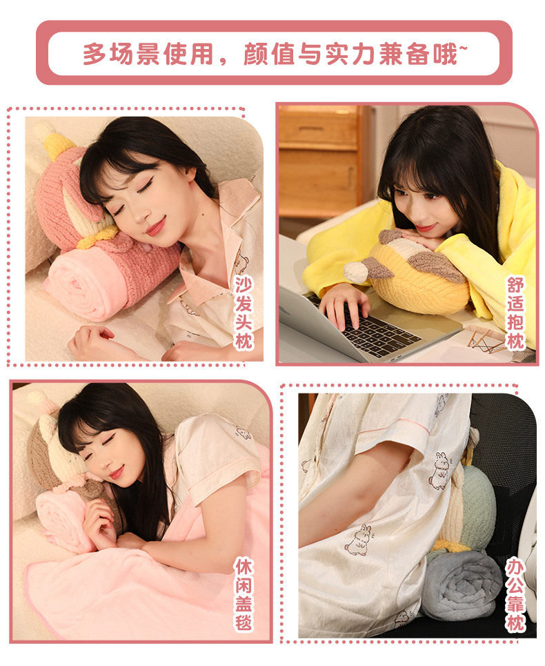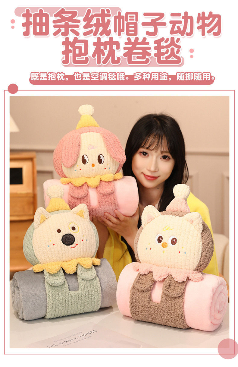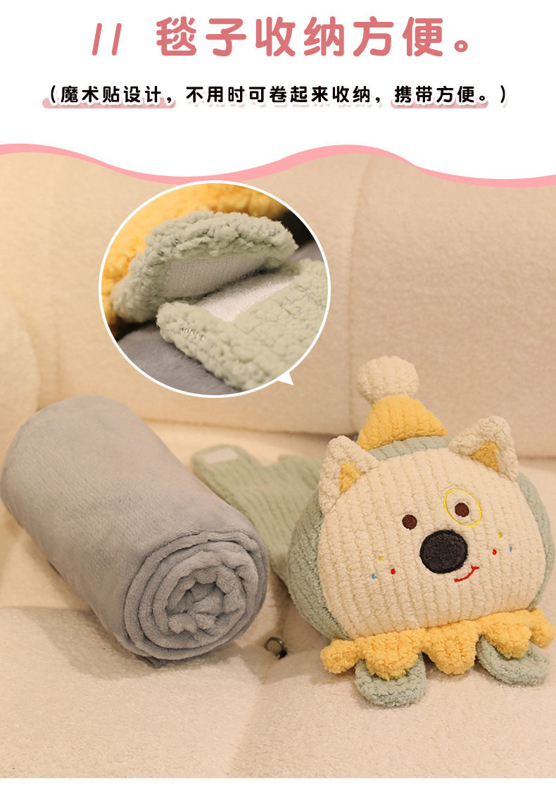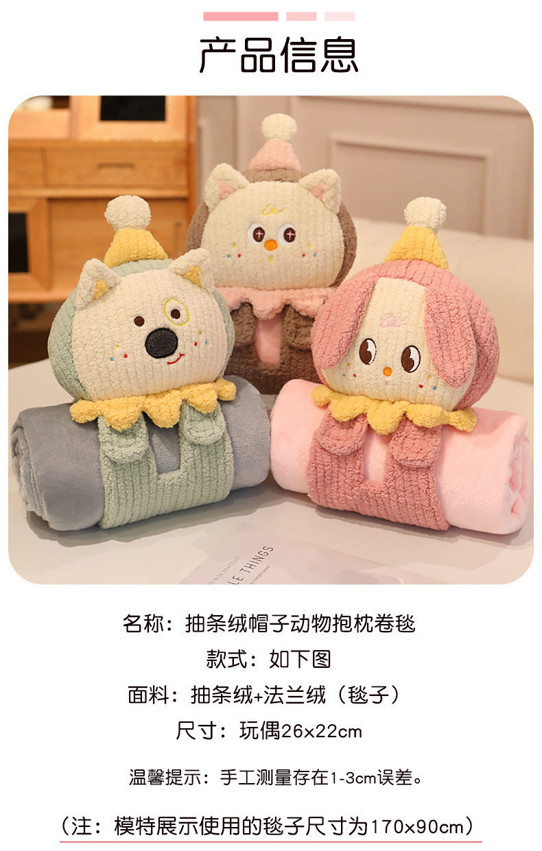 Three-Dimensional Roll Blanket Dual-Purpose Office Lunch Break Blanket Cute Puppy Cat Doll Sleeping Pillow Flannel Blanket Pillow