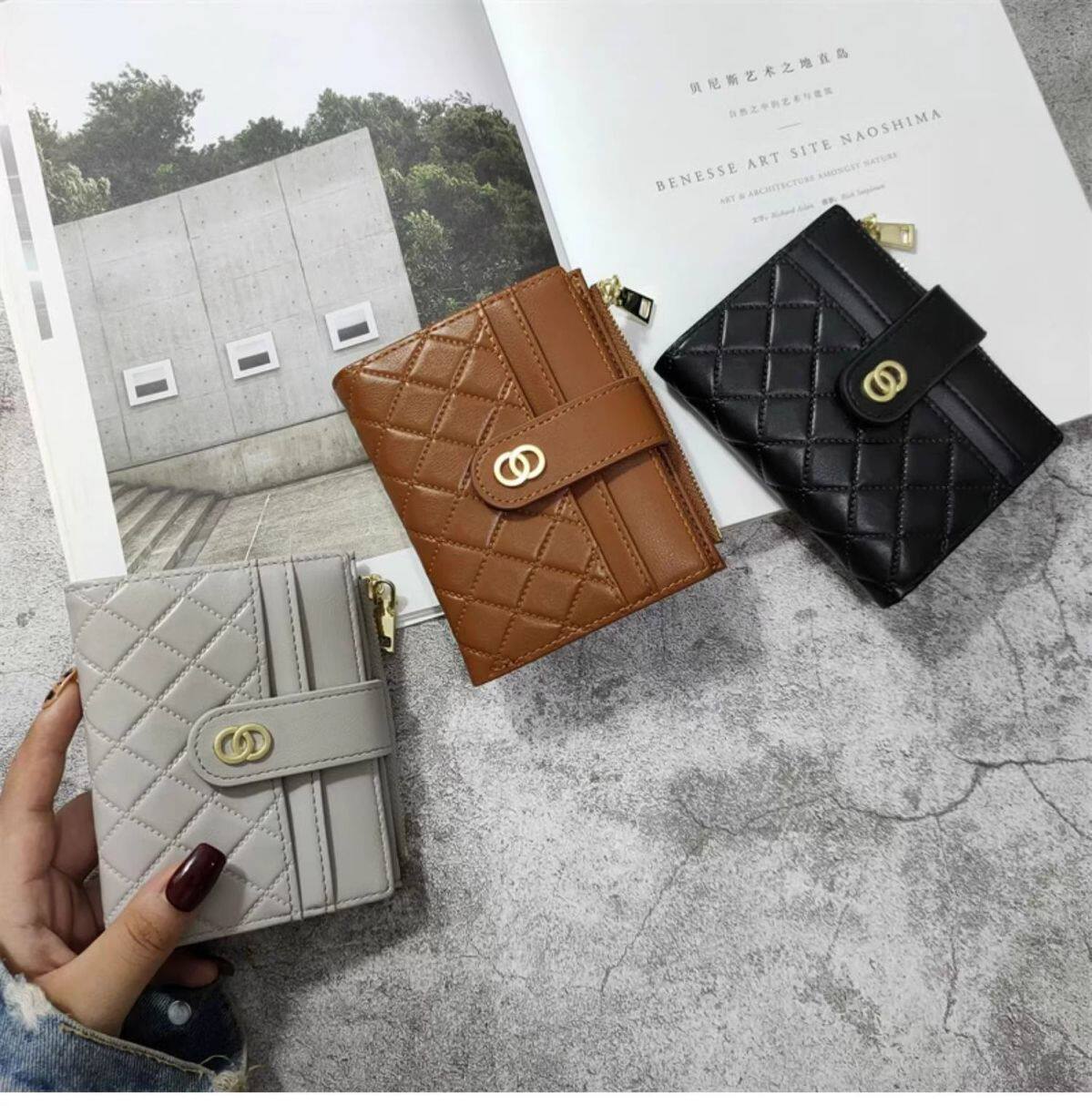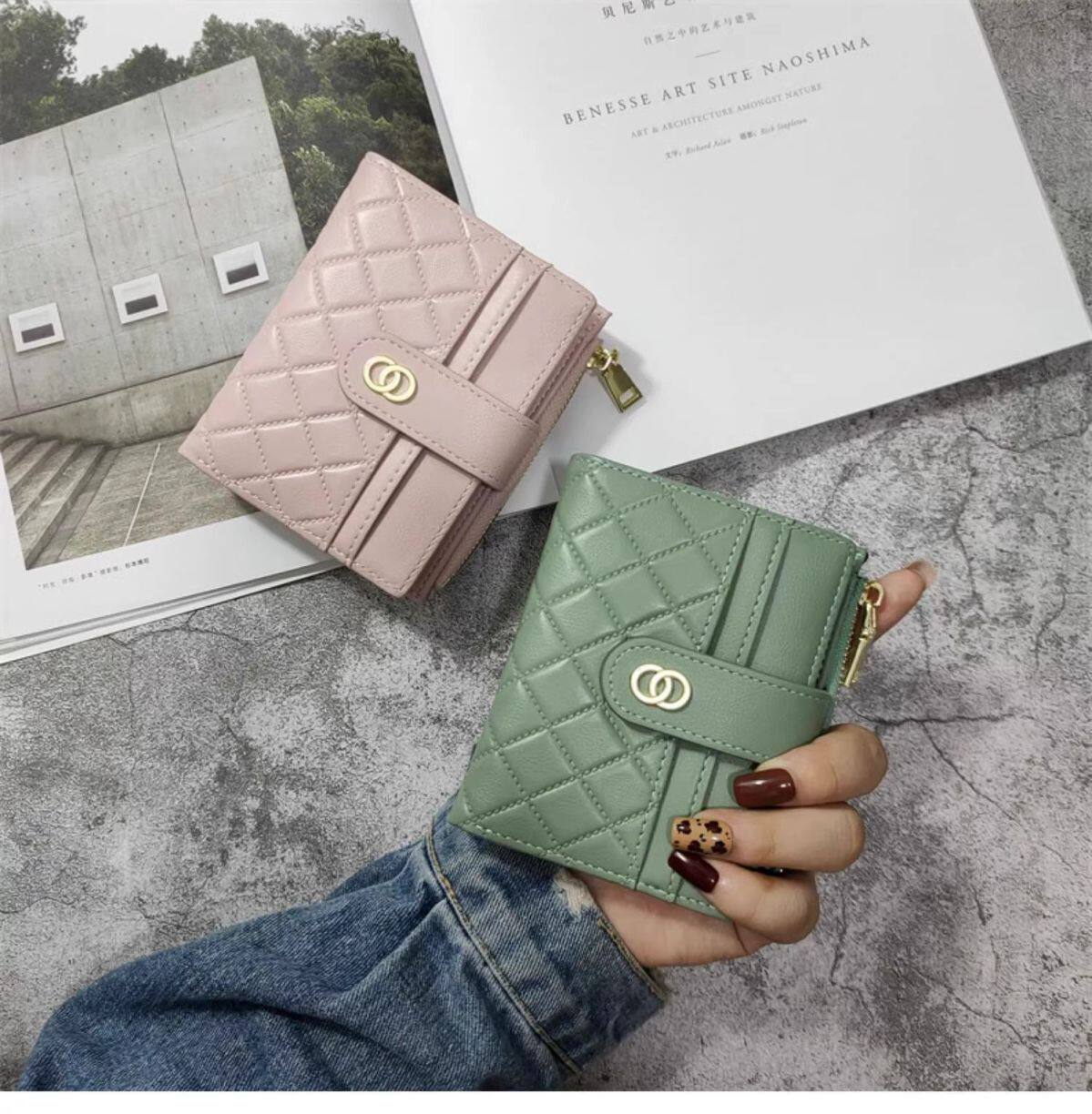 Diamond-Shaped Small Wallet ~ Korean Version Ins Wallet for Women, Short Style, Student Simple Thin Zipper Buckle Card Holder Coin Clip