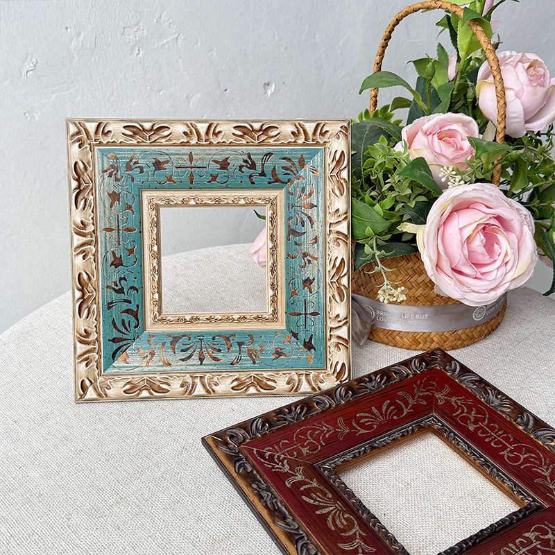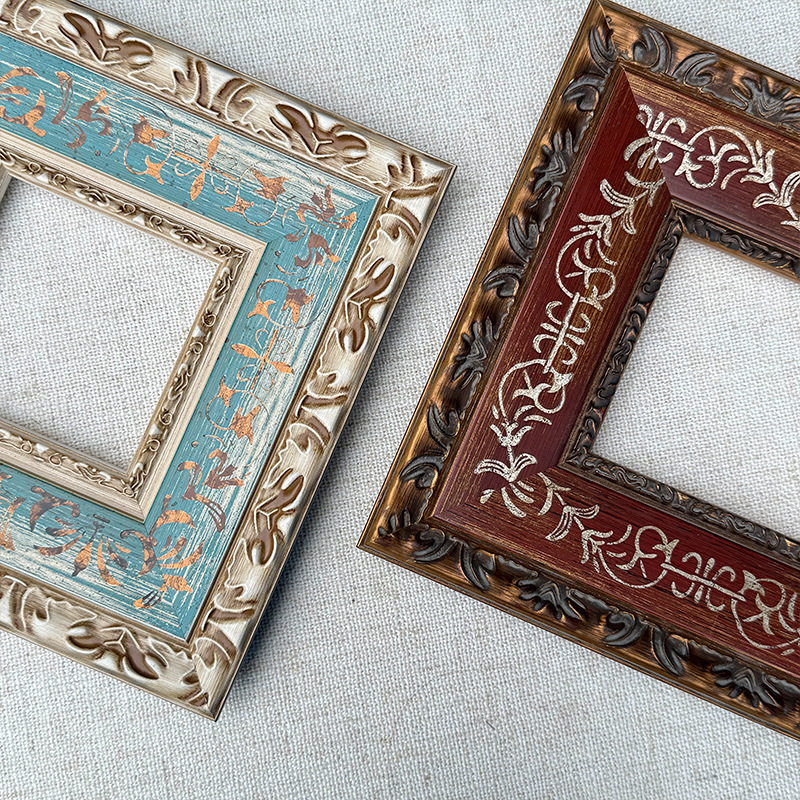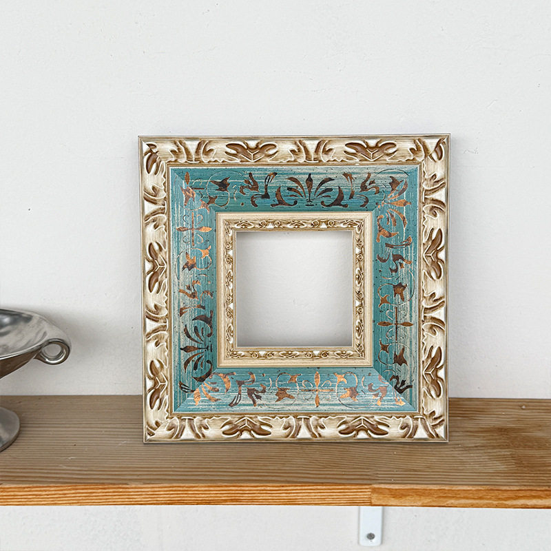 American-Style Frame, French Retro Oil Painting, Blue Custom Wooden Framed Wooden Picture Frame, Solid Wood Self-Assembled Photo Frame