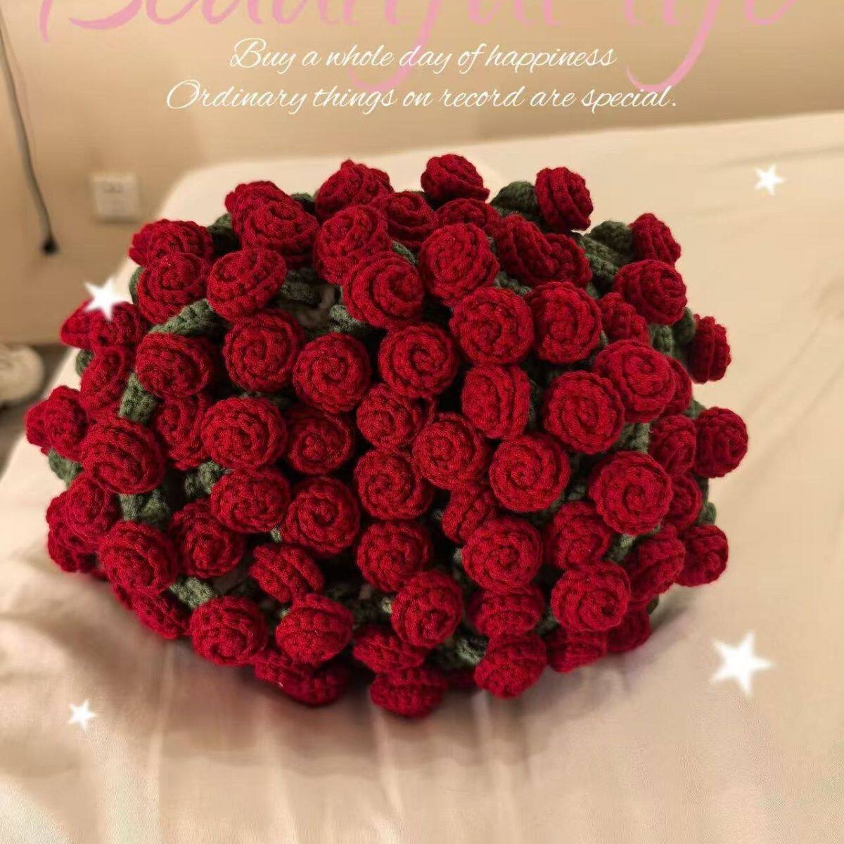 Ready-Made Rose Handmade Knitted Blanket Gift Knitted Blanket Valentine's Day Bouquet Girlfriend Best Friend Bouquet Blanket