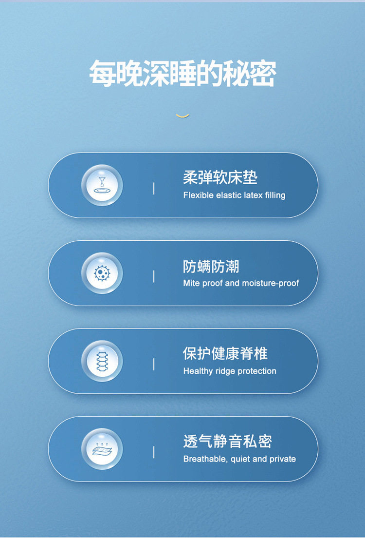 | Size specifications | 90cm wide*190cm long [student mattress],90cm wide*200cm long [student mattress],100cm wide*190cm long [single mattress,100cm wide*200cm long [single mattress,120cm wide*190cm long [single mattress,120cm wide*200cm long [single mattress,150cm wide*190cm long [double mattress,150cm wide*200cm long [double mattress,180cm wide*200cm long [double mattress |