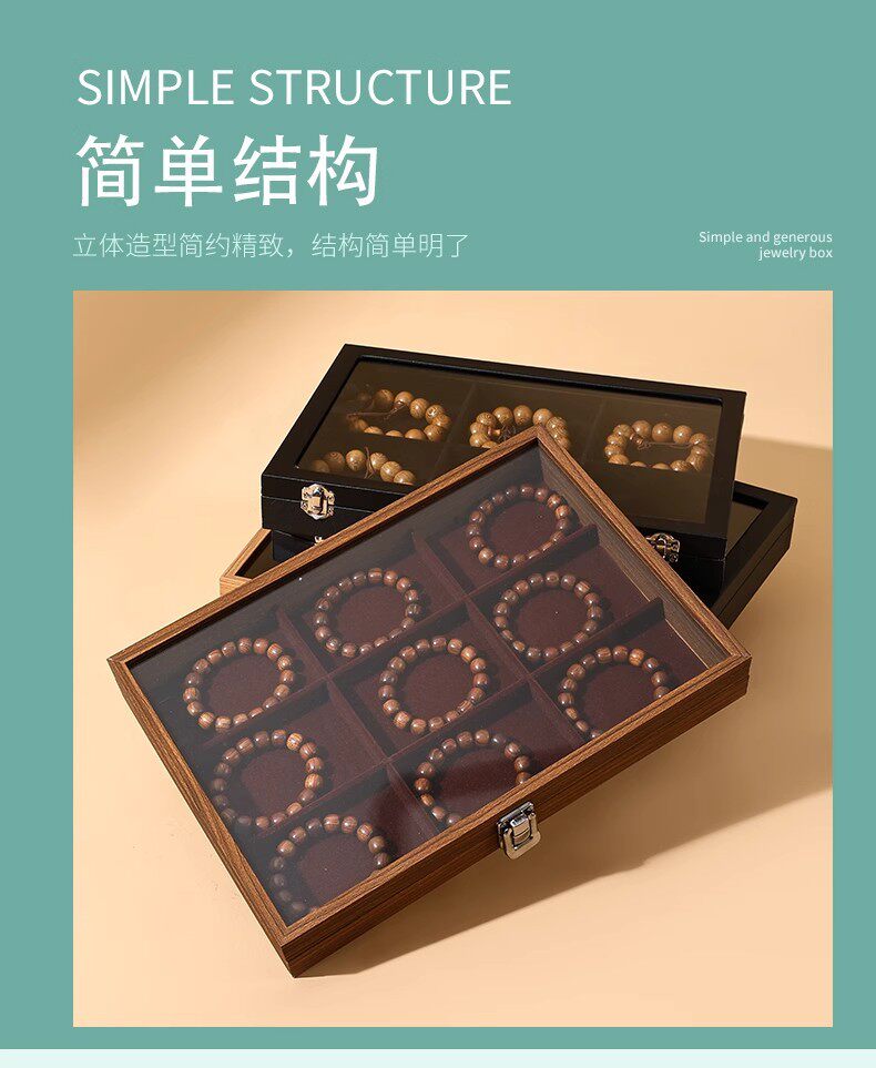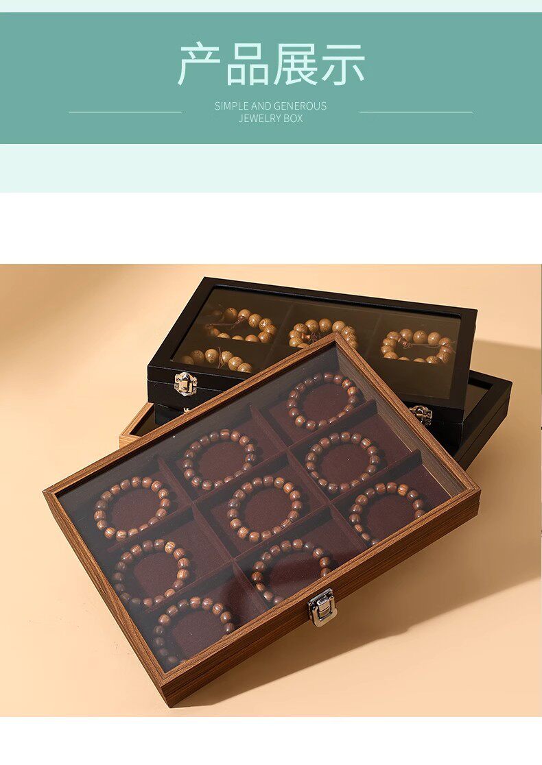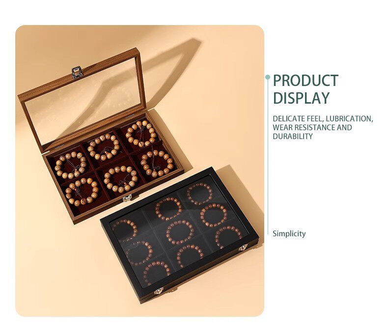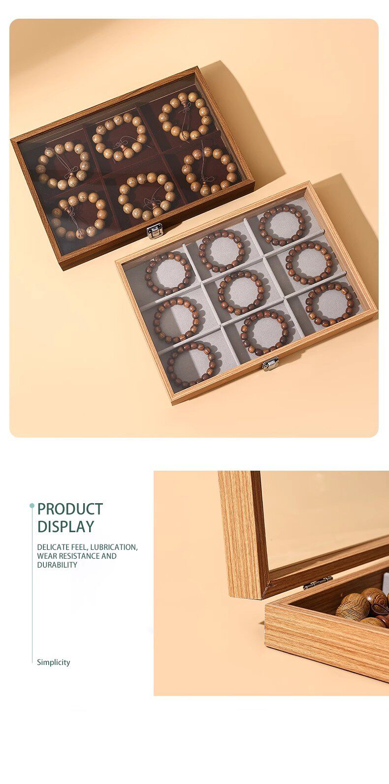 Walnut Wood Grain Bracelet Storage Box, Buddhist Beads Display Tray, High-End Crystal Jade Bracelet Jewelry Box