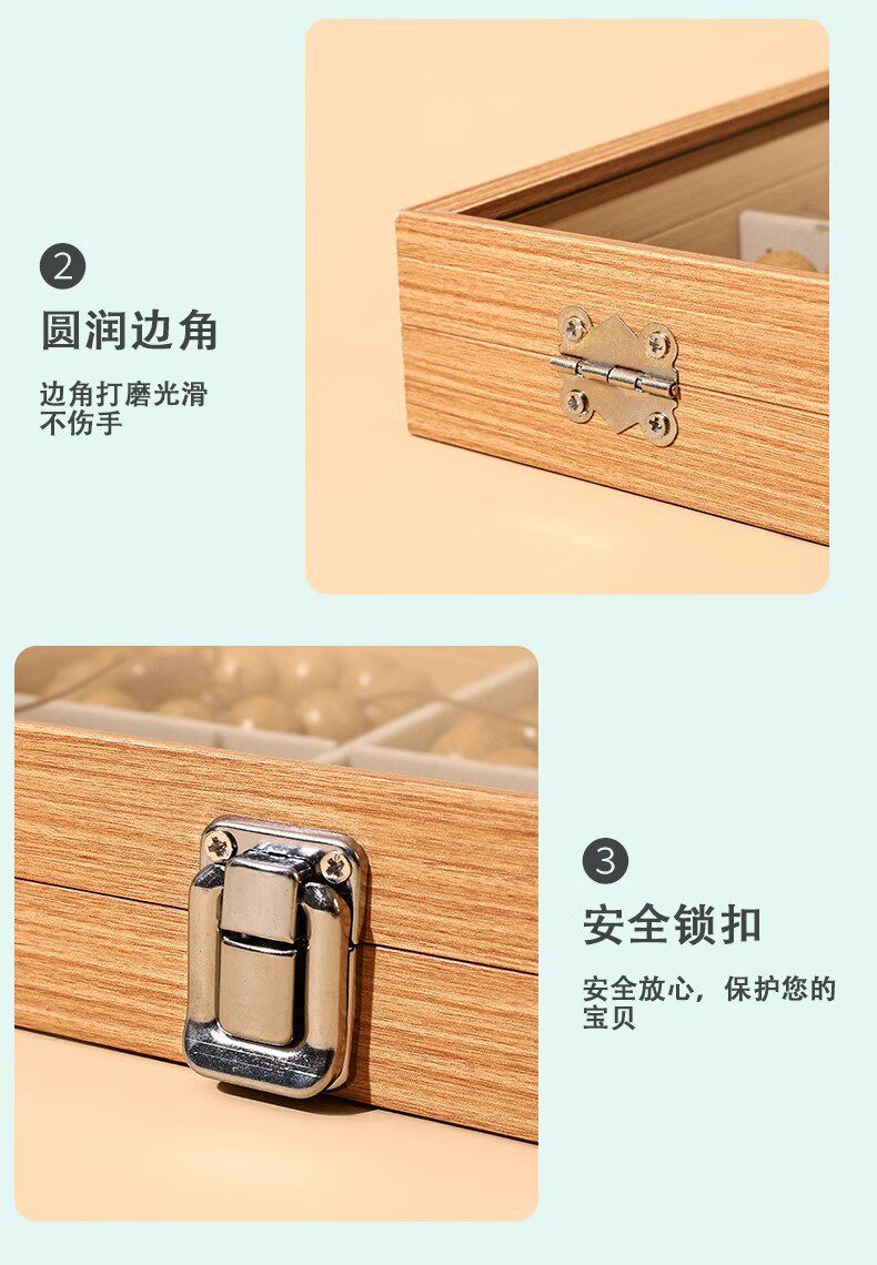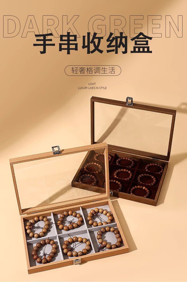 | Color | [walnut grain] 6 grids/off-white velvet (suitable for large bracelets/beads/bracelets, etc.),[walnut grain] 12 grids/off-white velvet (suitable for small bracelets/jade plaques/bracelets, etc.),[walnut grain] 18 grids/off-white velvet (suitable for rings/earrings/ear studs, etc.),[walnut grain] 24 grids/off-white velvet (suitable for rings/earrings/ear studs, etc.),[walnut grain] 30 grids/off-white velvet (suitable for rings/earrings/ear studs, etc.),[walnut grain] 6 grids/burgundy velvet (suitable for large bracelets/beads/bracelets, etc.),[walnut grain] 9 grids/burgundy velvet (suitable for bracelets/beads/bracelets, etc.),[walnut grain] 12 grids/burgundy velvet (suitable for small bracelets/jade bracelets/bracelets, etc.),[walnut grain] 24 grids/burgundy velvet (suitable for rings/earrings/ear studs, etc.),[walnut grain] 10 grids/burgundy velvet (suitable for necklaces/bracelets, etc.),[pear wood grain] 6 grids/grey velvet (suitable for large bracelets/beads/bracelets, etc.),[pear wood grain] 9 grids/grey velvet (suitable for bracelets/beads/bracelets, etc.),[pear wood grain] 12 grids/gray velvet (suitable for small bracelets/jade plaques/bracelets, etc.),[pear wood grain] 10 grids/grey velvet (suitable for necklaces/bracelets, etc.),[walnut grain] empty plate/burgundy/without lid,[walnut grain] 6-grid plate/burgundy/without lid,[walnut grain] 12-grid plate/burgundy/without lid,[walnut grain] 24-grid plate/burgundy/without lid,[walnut grain] empty plate/off-white/no lid,[walnut grain] 6-grid plate/off-white/without cover,[walnut grain] 12-grid plate/off-white/without cover,[walnut grain] 24-grid plate/off-white/without cover,Black 6-compartment box,Black 12-compartment box |