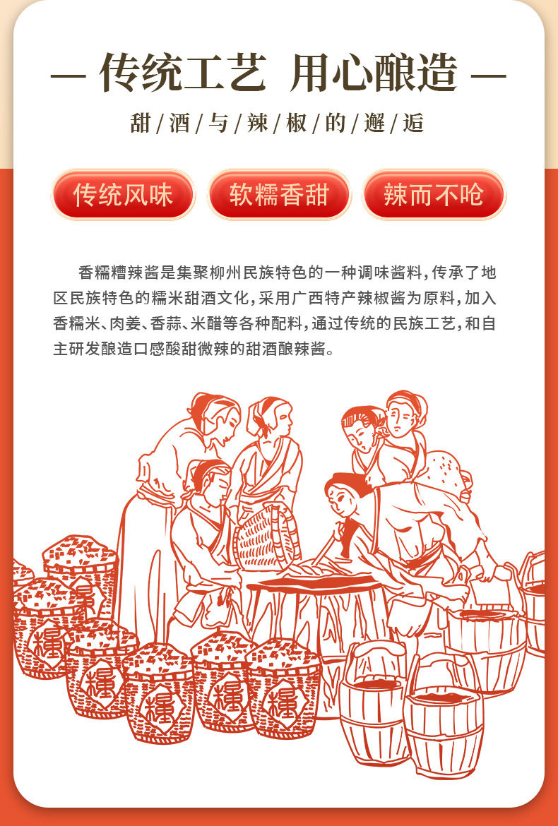 Guangxi Liuzhou Fragrant Glutinous Rice Spicy Sauce 900g Bottled Sweet and Sour Glutinous Rice Sweet Wine Chili Sauce Cooking Noodles Dumpling Dipping Sauce