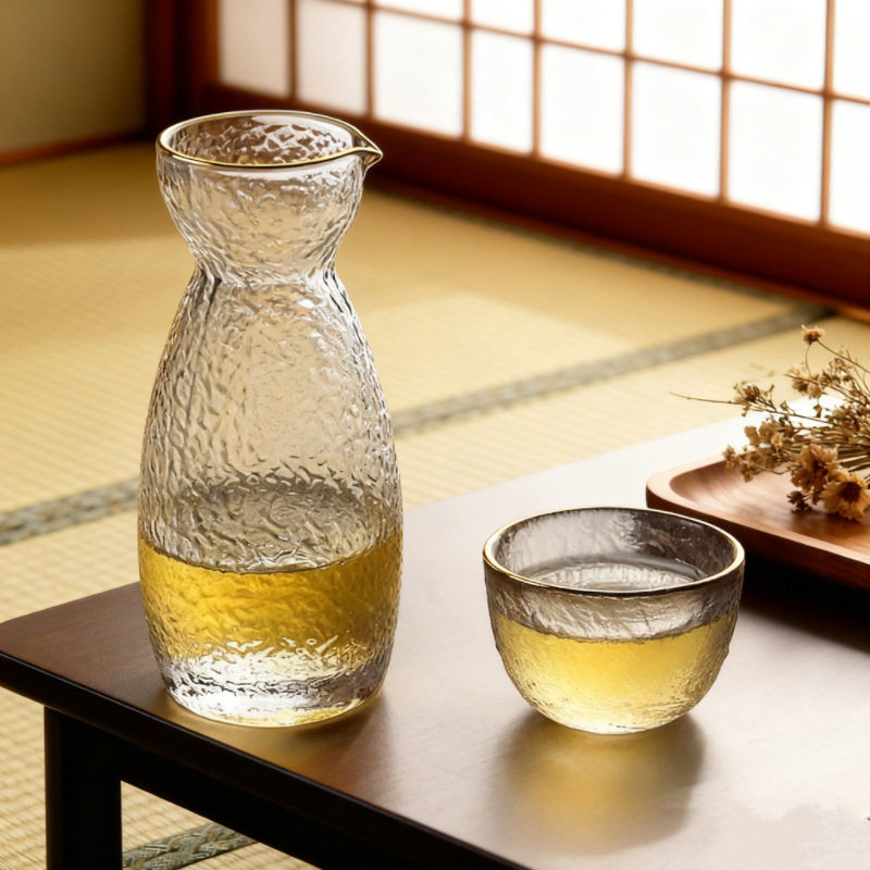 Japanese-Style Hammered Transparent Glass Eagle's Beak Sake Set Rice Wine Warmer Sake Cup Sake Jug Wine Set Wholesale