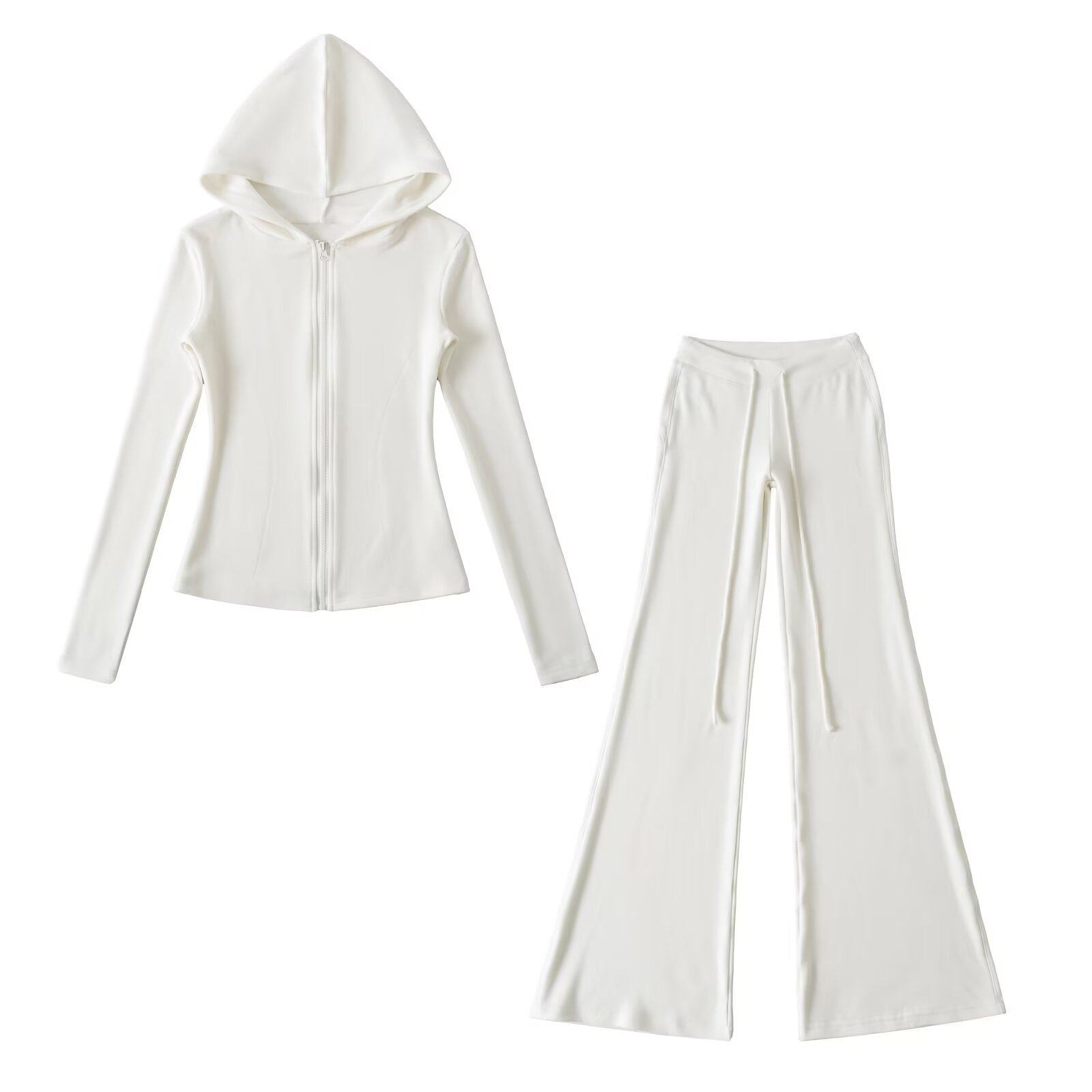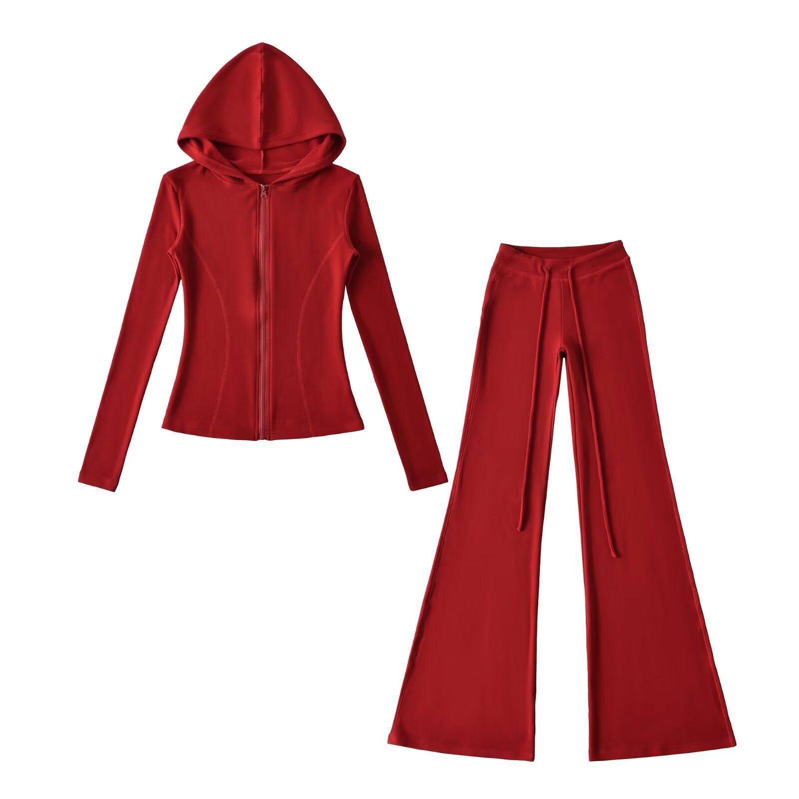 Autumn New Fleece Slim-Fit Zip-Up Hooded Sweatshirt Cardigan Casual Slimming Flared Pants Sports Suit