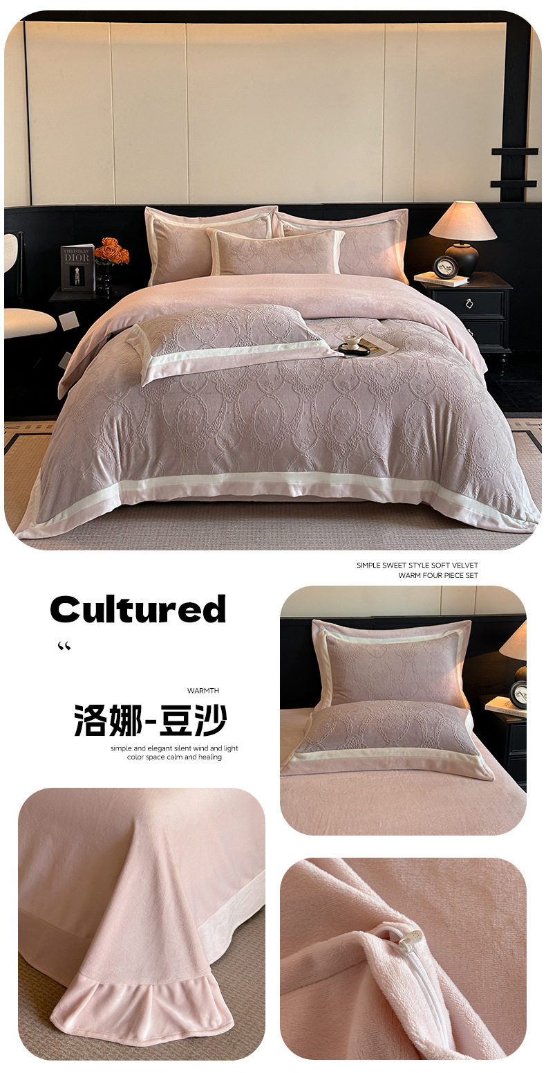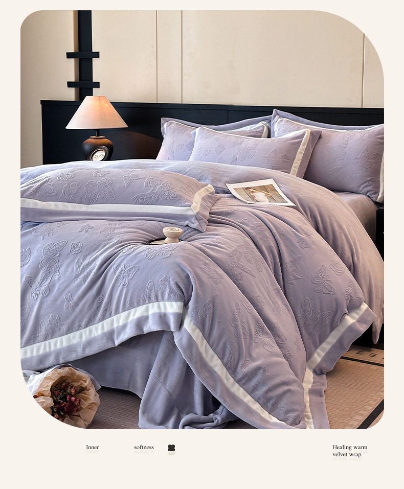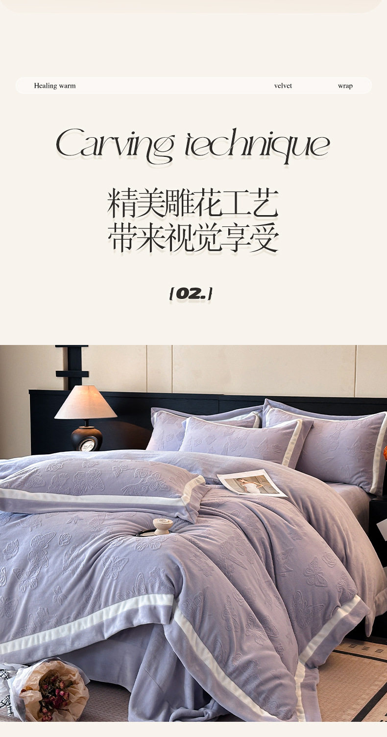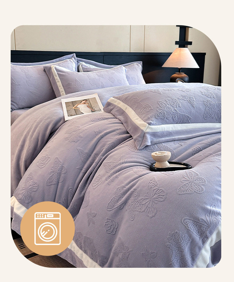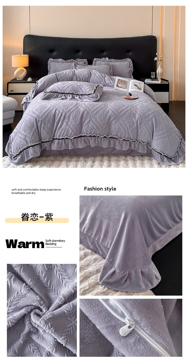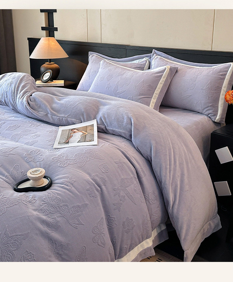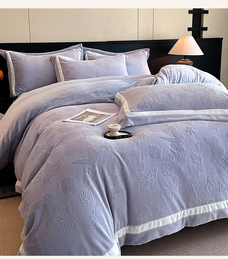 Light Luxury Winter Type a Carved Milk Velvet Bed Four-Piece Set Thickeneded Warm Coral Velvet Bed Bed Sheets Quilt Cover Three-Piece Set