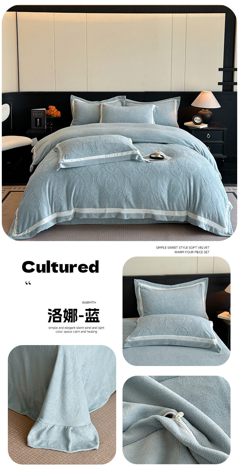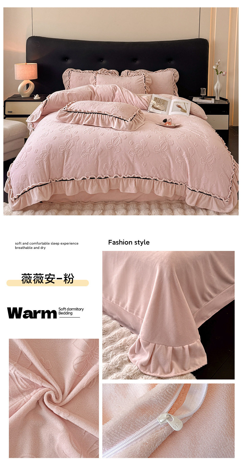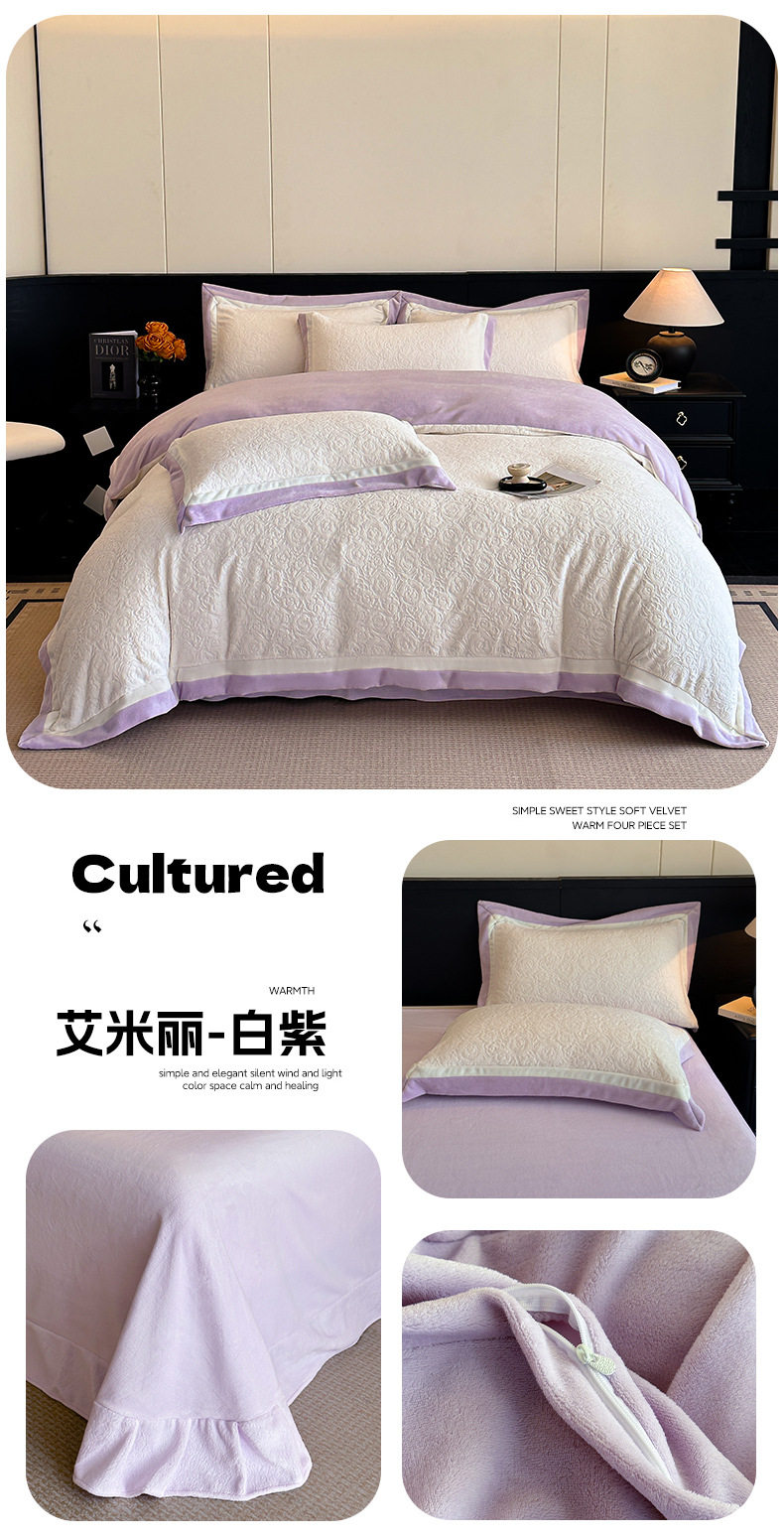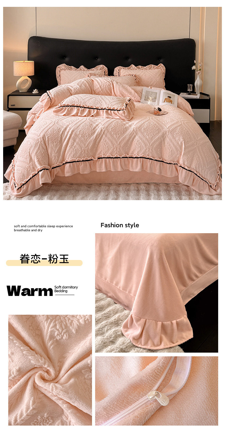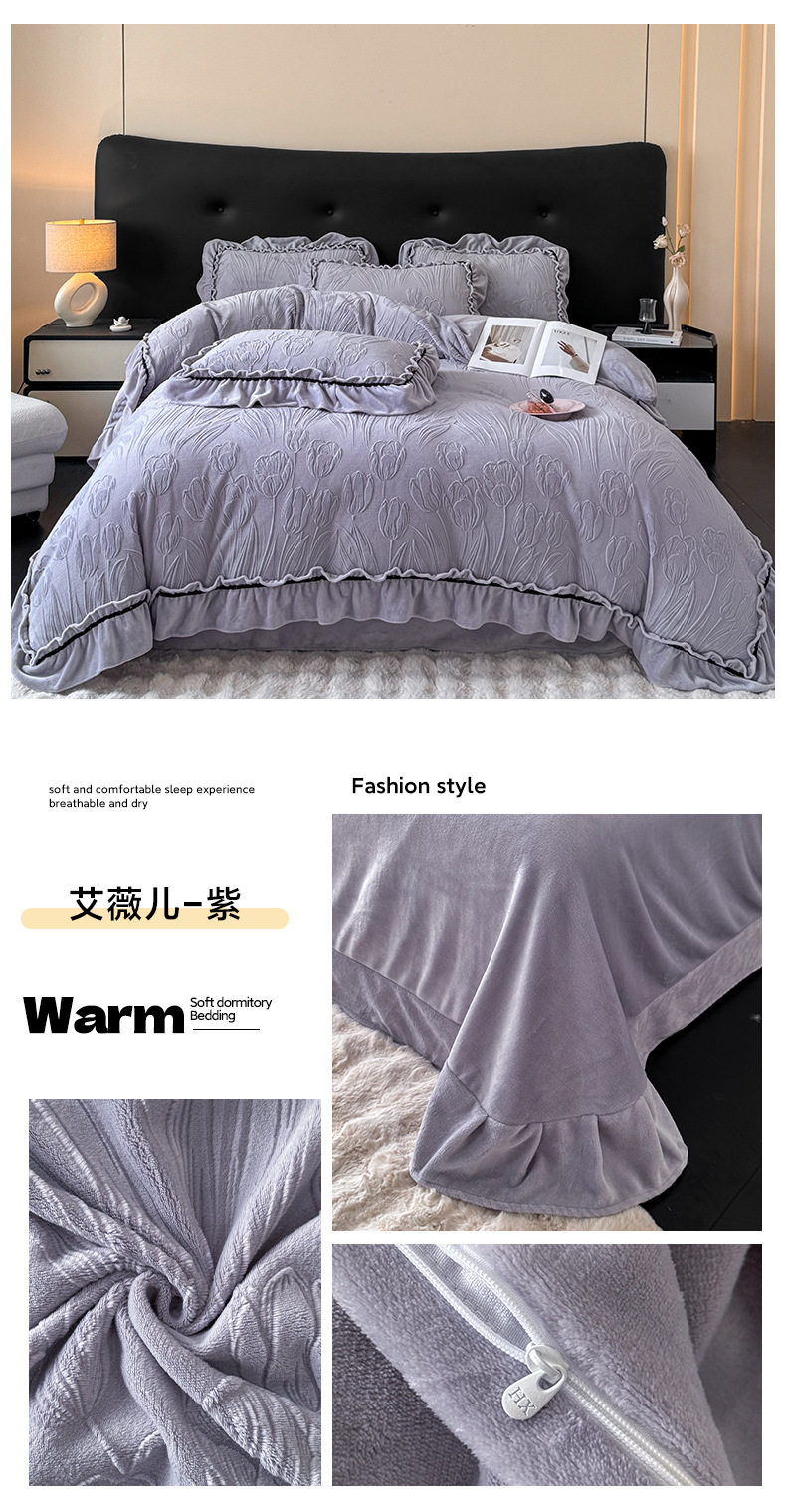 Light Luxury Winter Type a Carved Milk Velvet Bed Four-Piece Set Thickeneded Warm Coral Velvet Bed Bed Sheets Quilt Cover Three-Piece Set