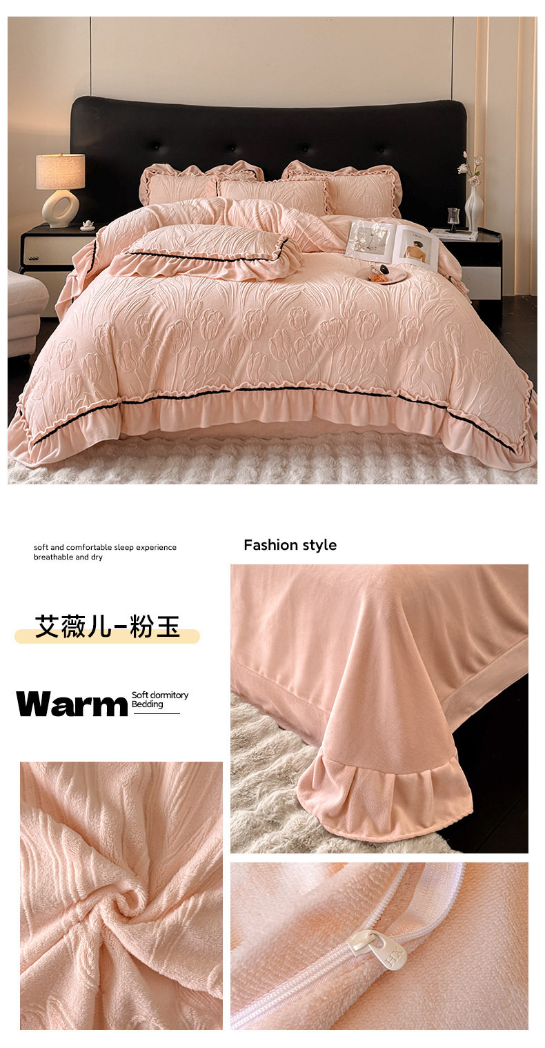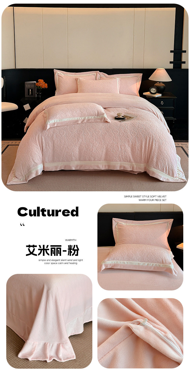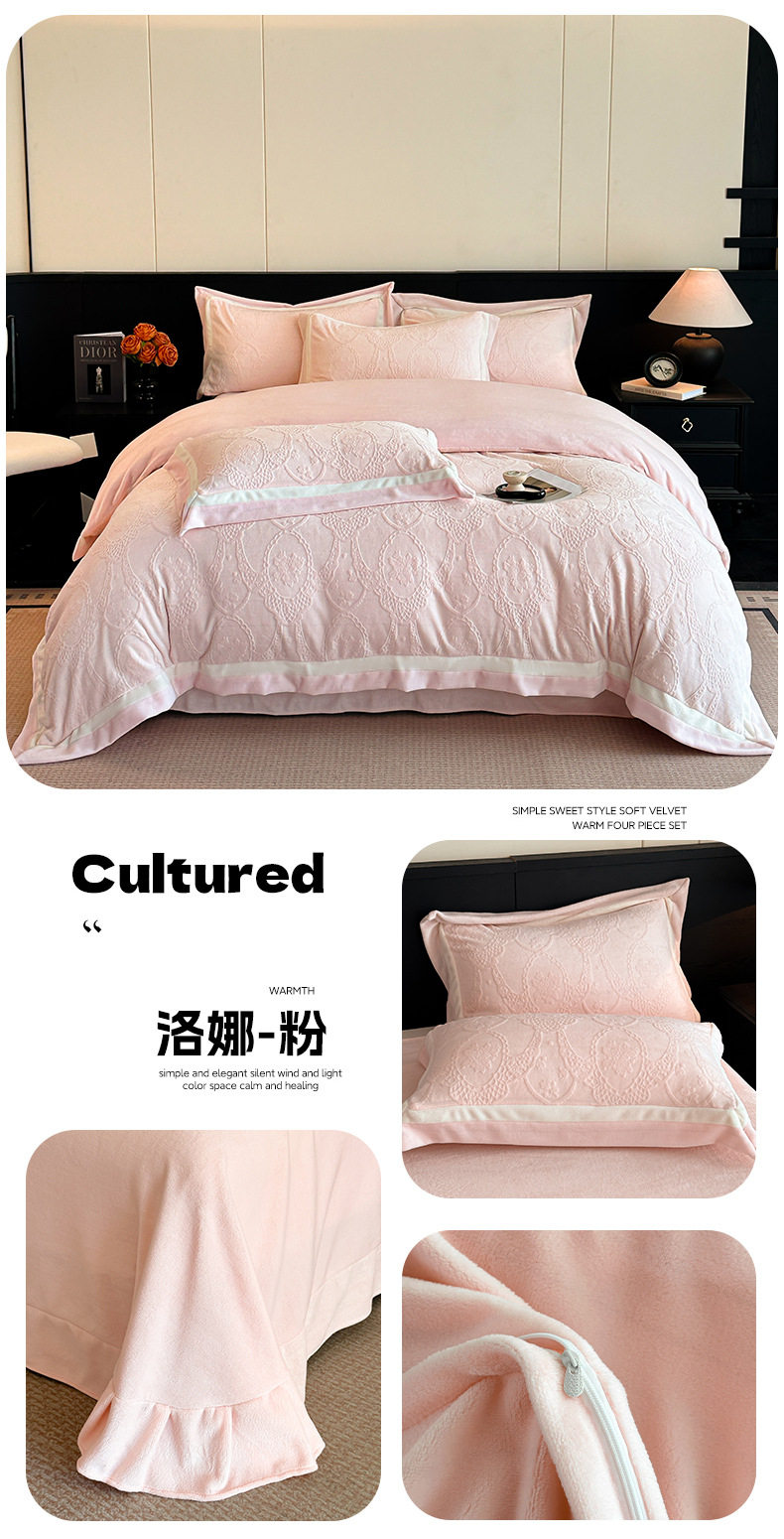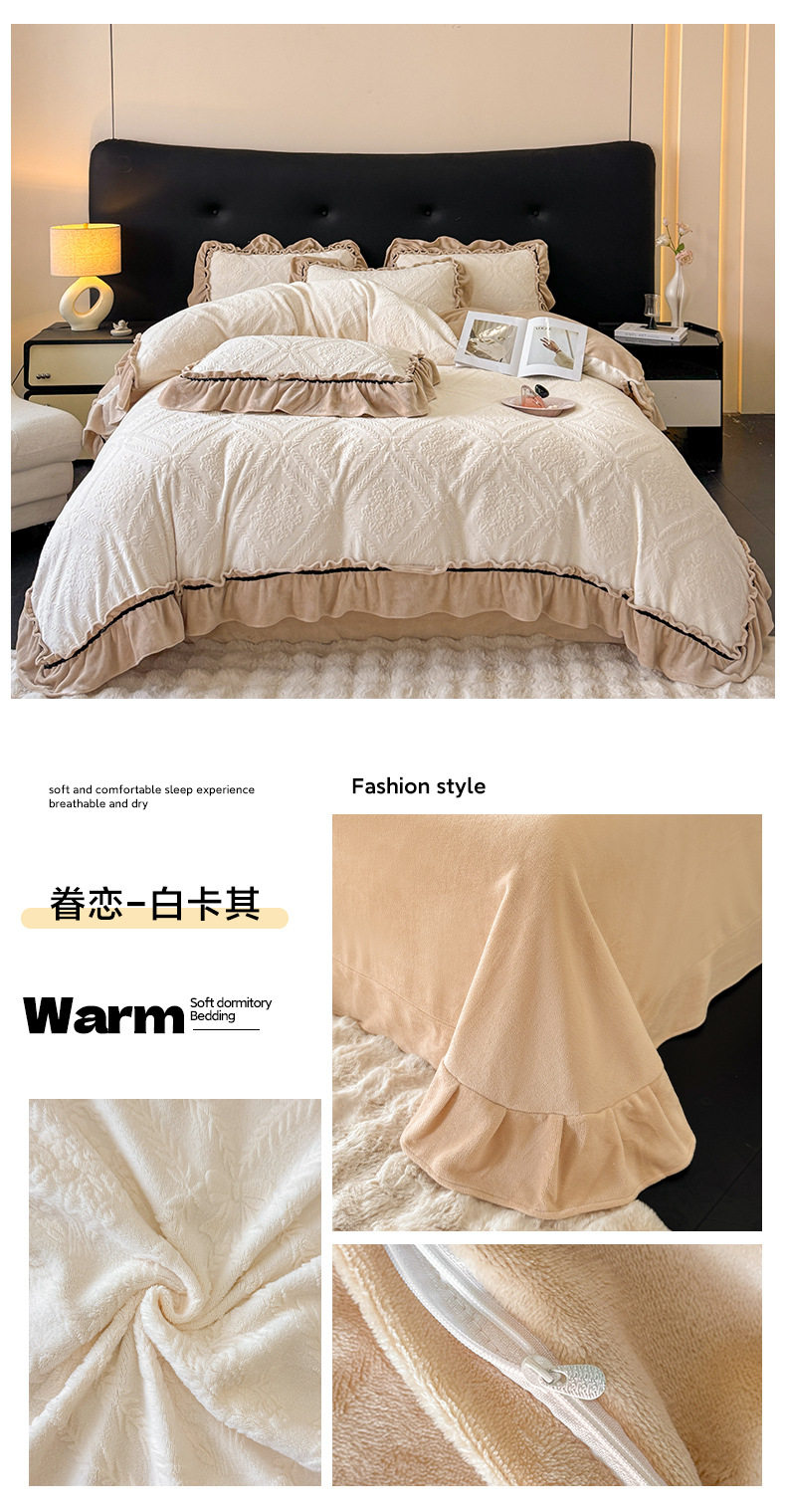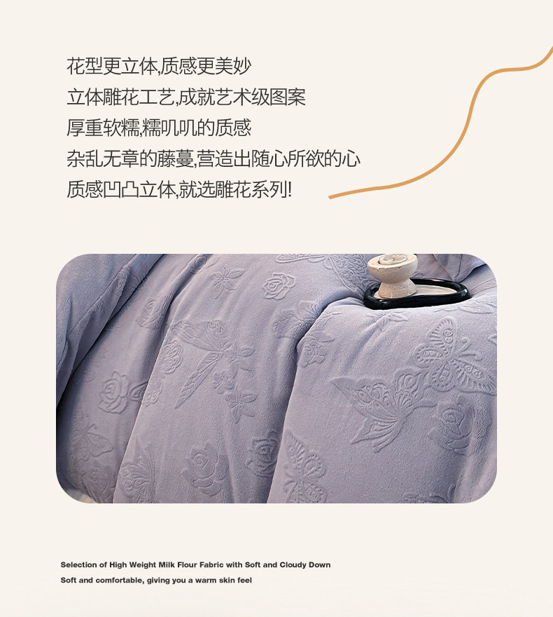Light Luxury Winter Type a Carved Milk Velvet Bed Four-Piece Set Thickeneded Warm Coral Velvet Bed Bed Sheets Quilt Cover Three-Piece Set