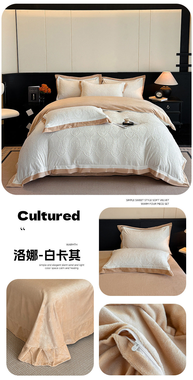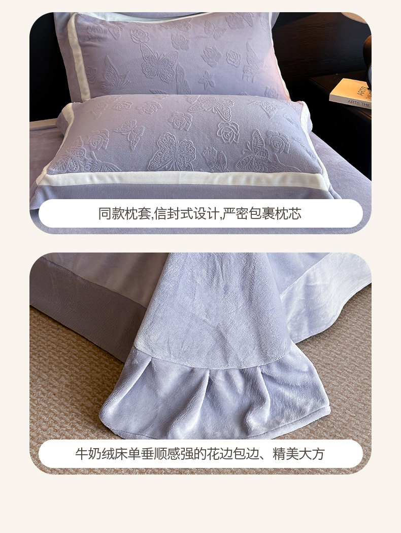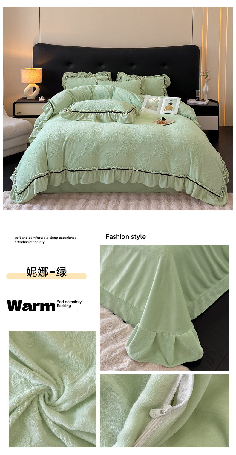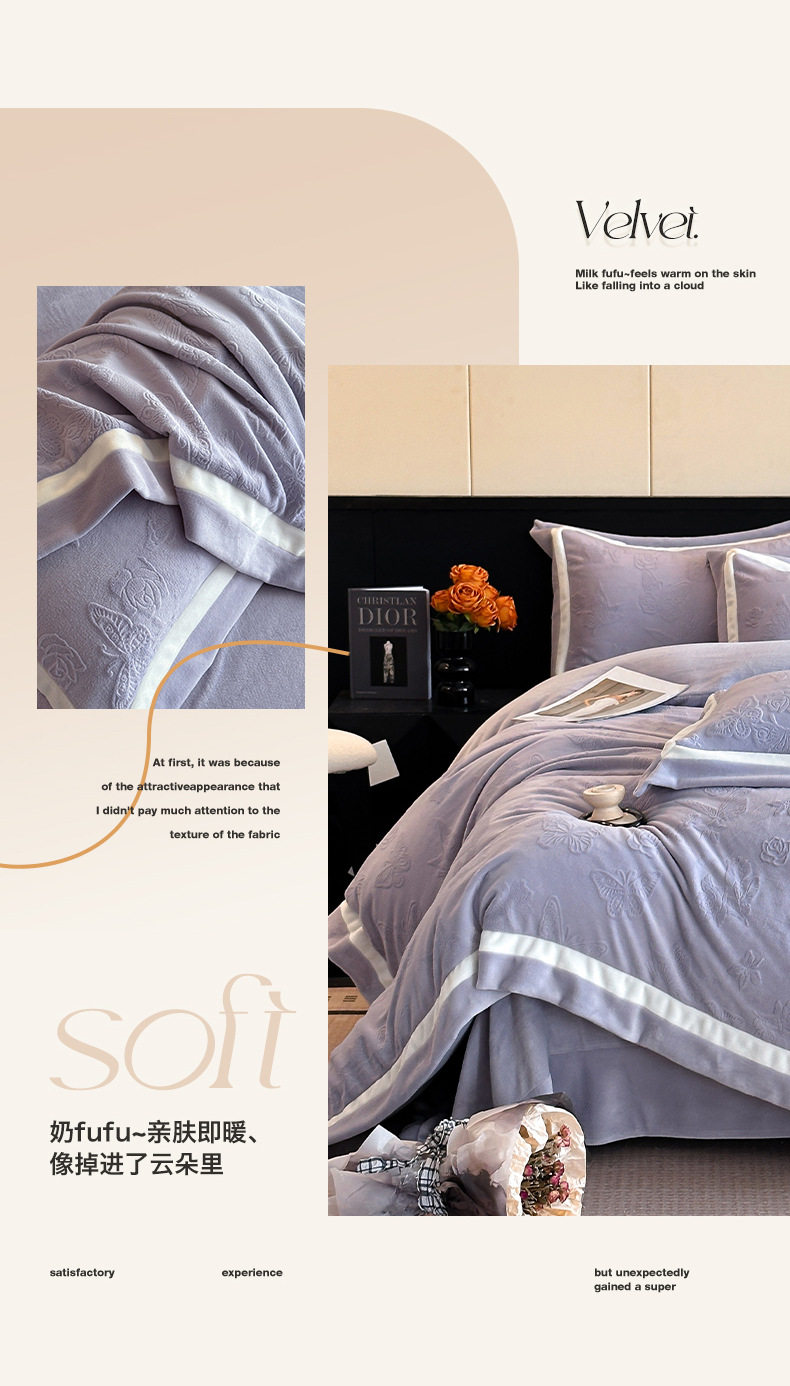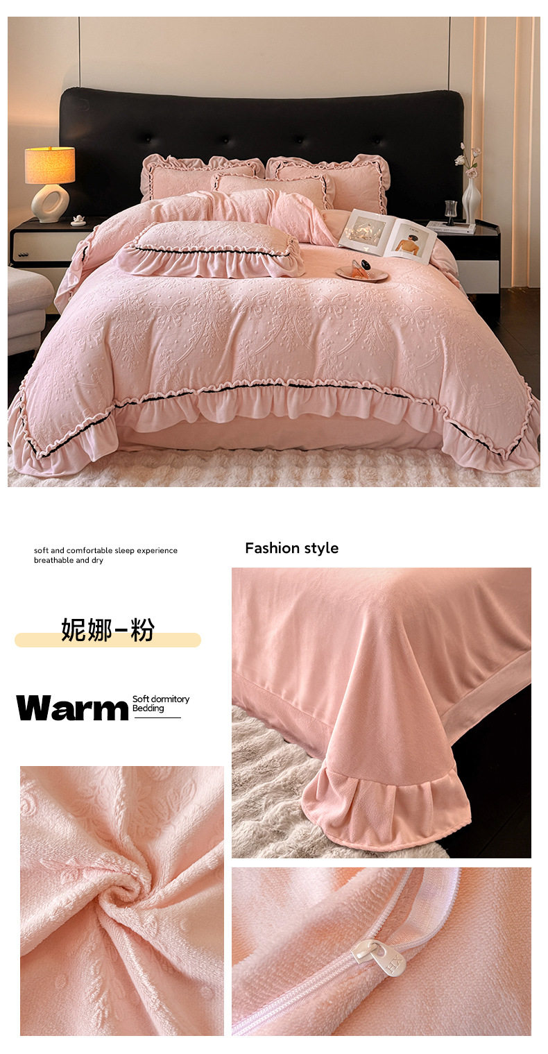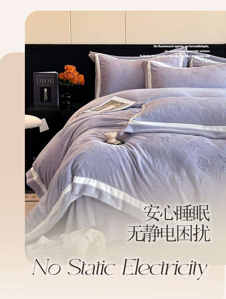 Light Luxury Winter Type a Carved Milk Velvet Bed Four-Piece Set Thickeneded Warm Coral Velvet Bed Bed Sheets Quilt Cover Three-Piece Set