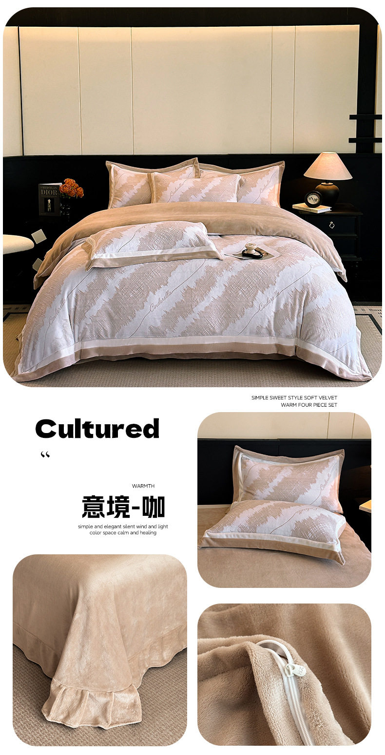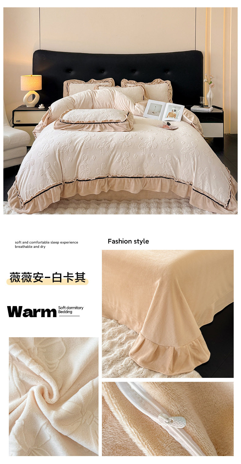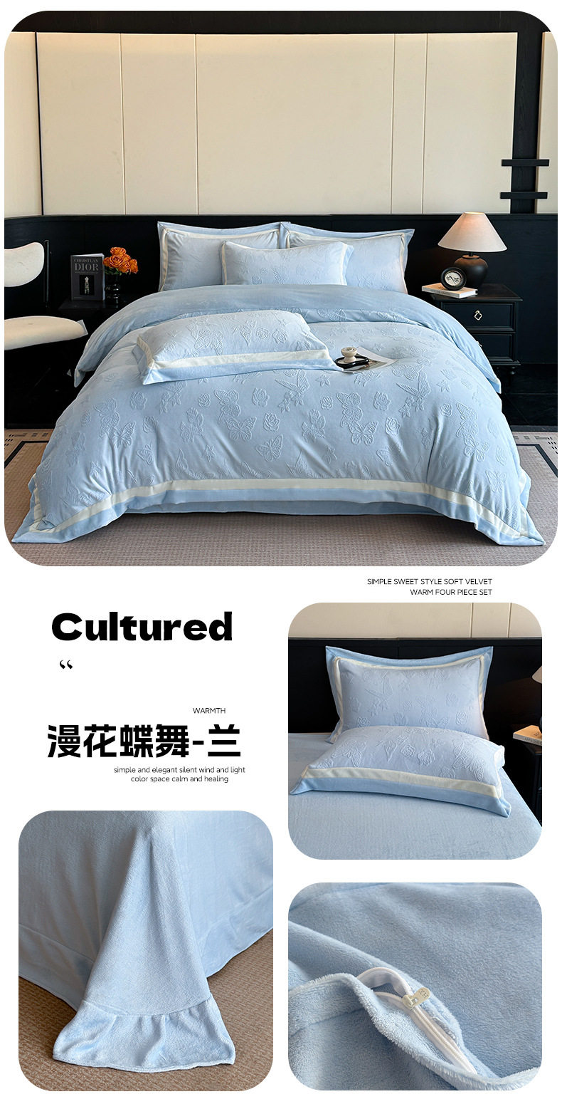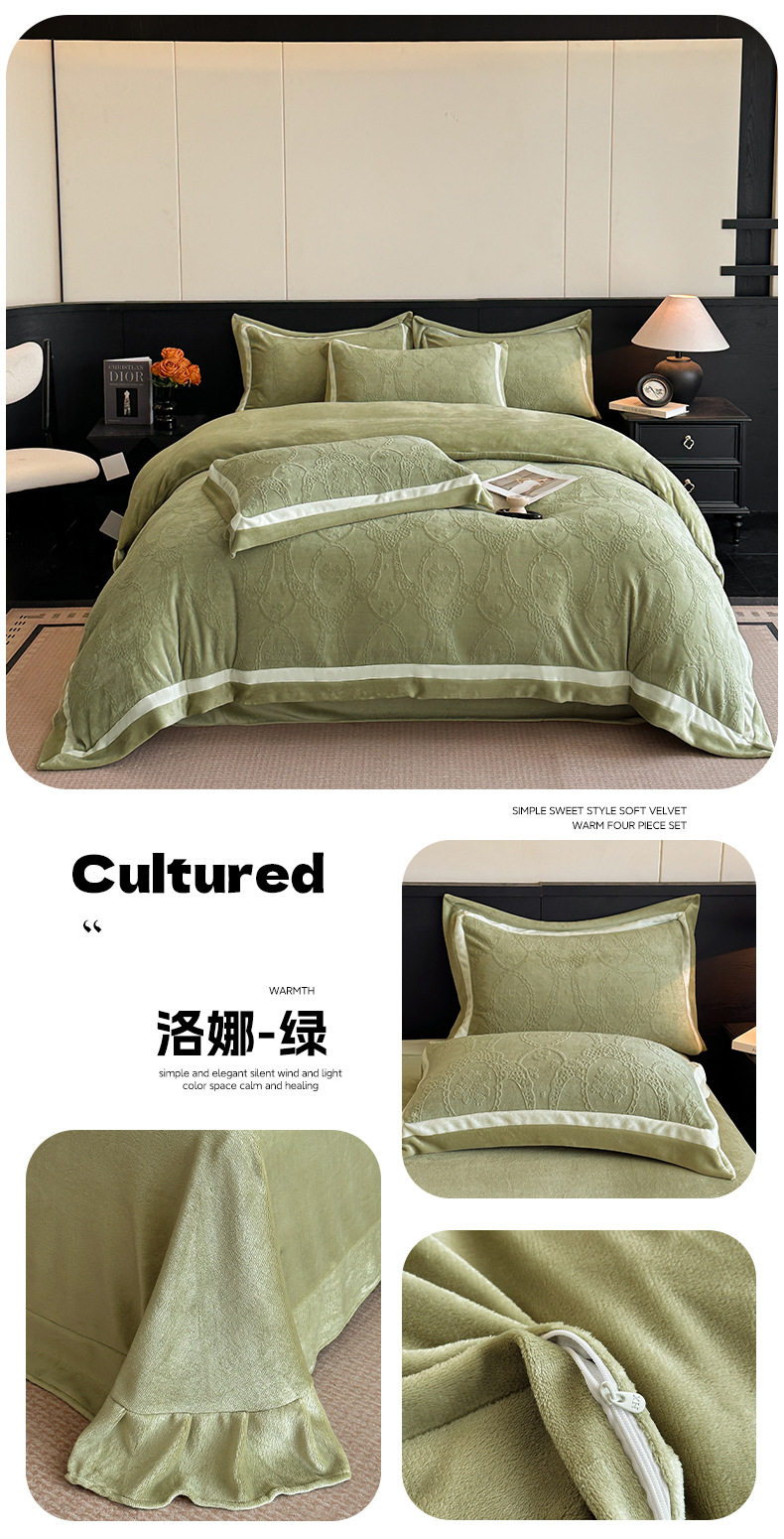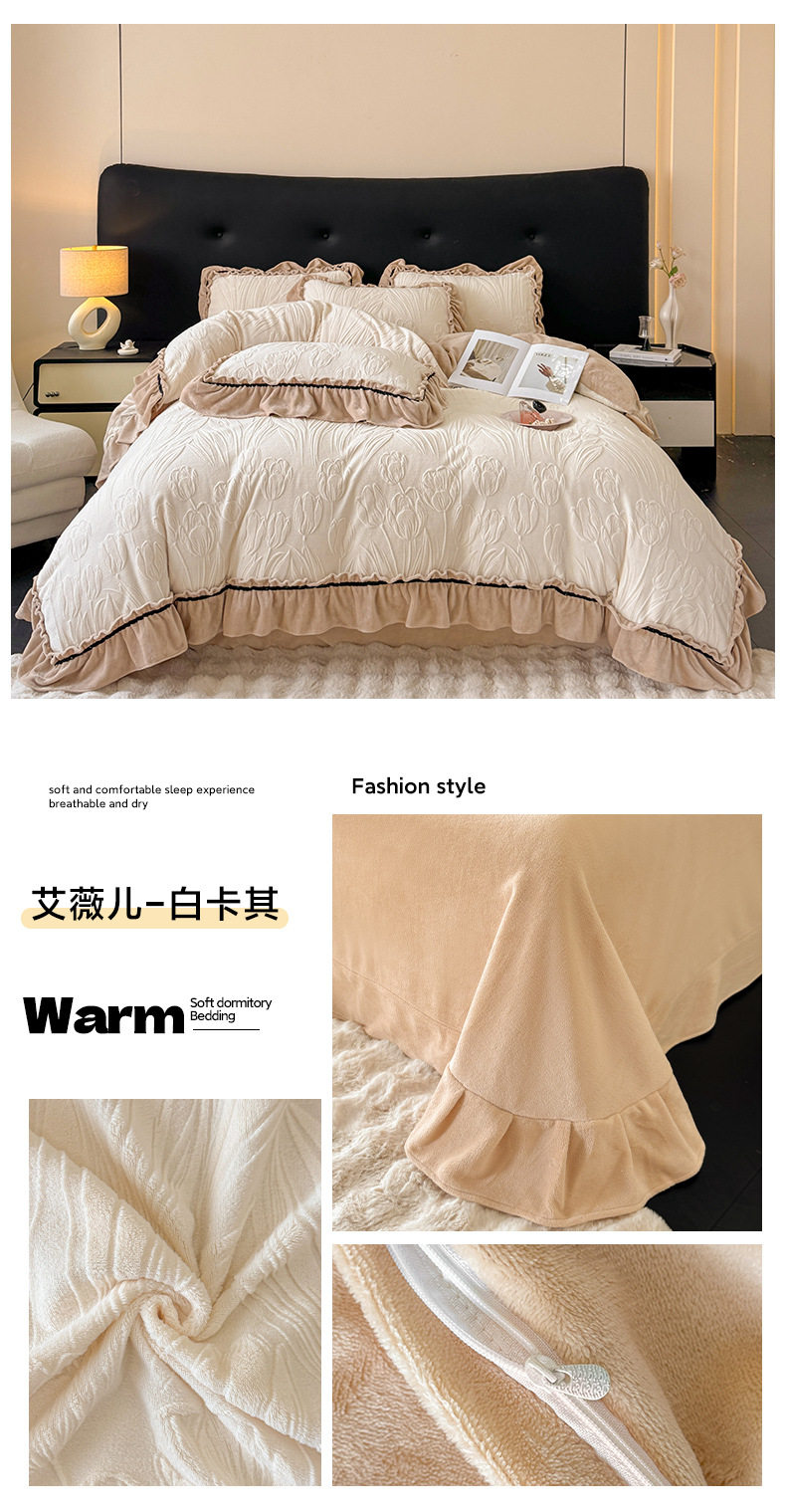 Light Luxury Winter Type a Carved Milk Velvet Bed Four-Piece Set Thickeneded Warm Coral Velvet Bed Bed Sheets Quilt Cover Three-Piece Set