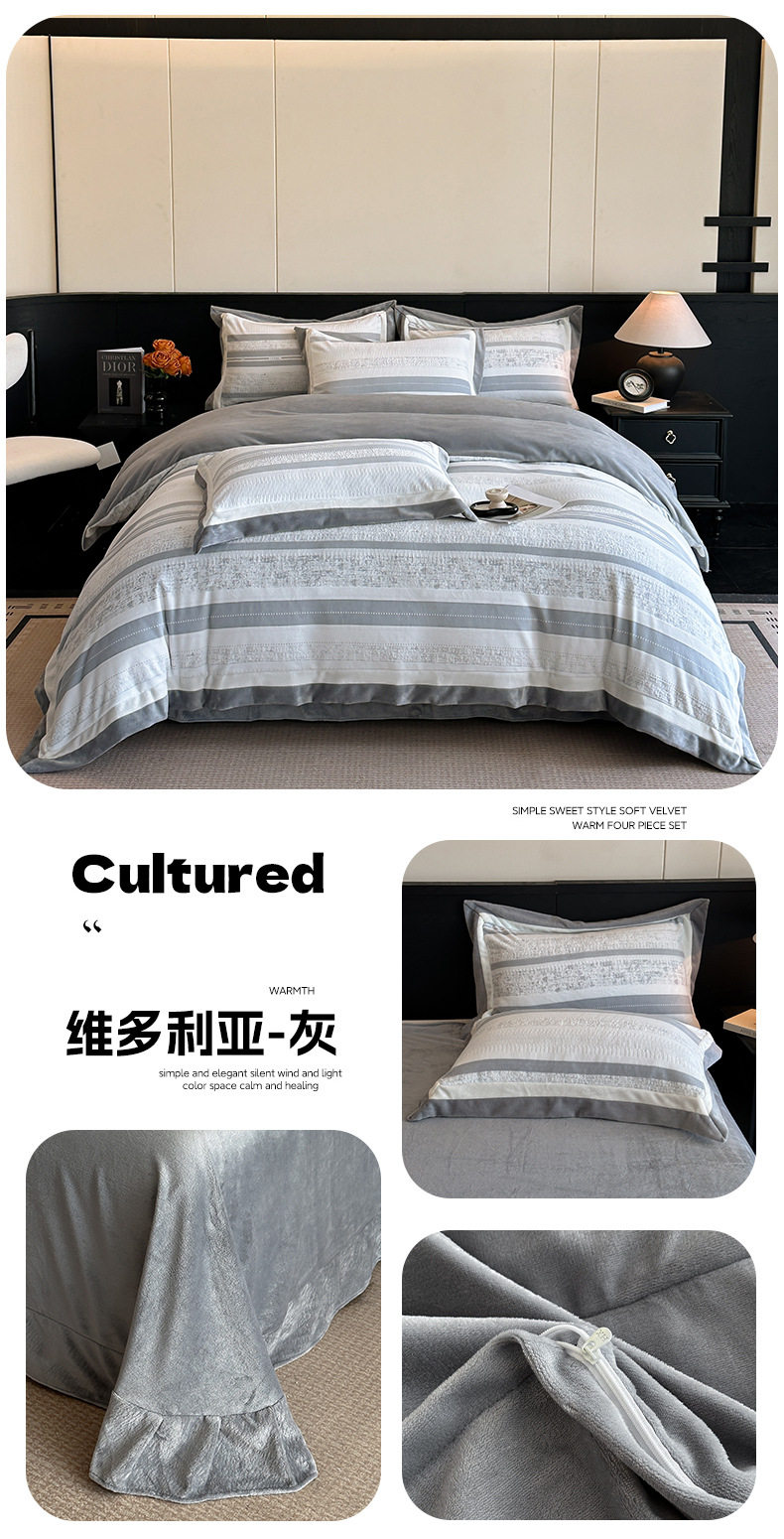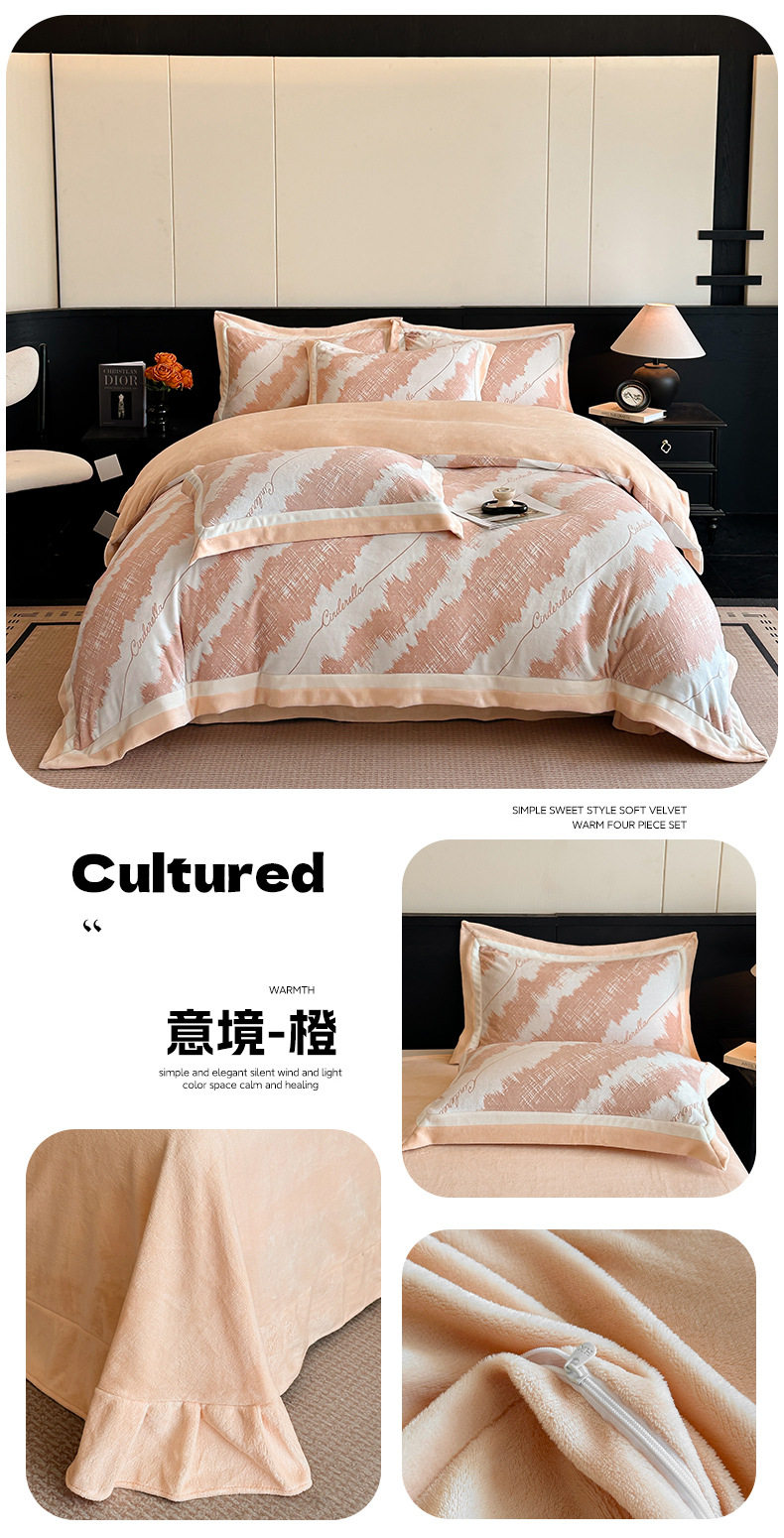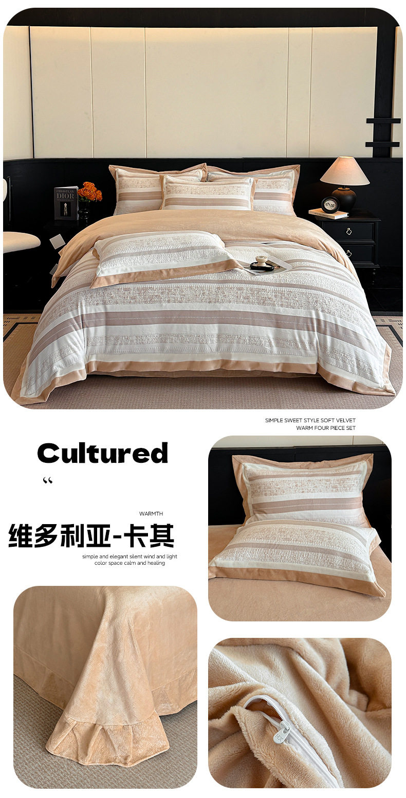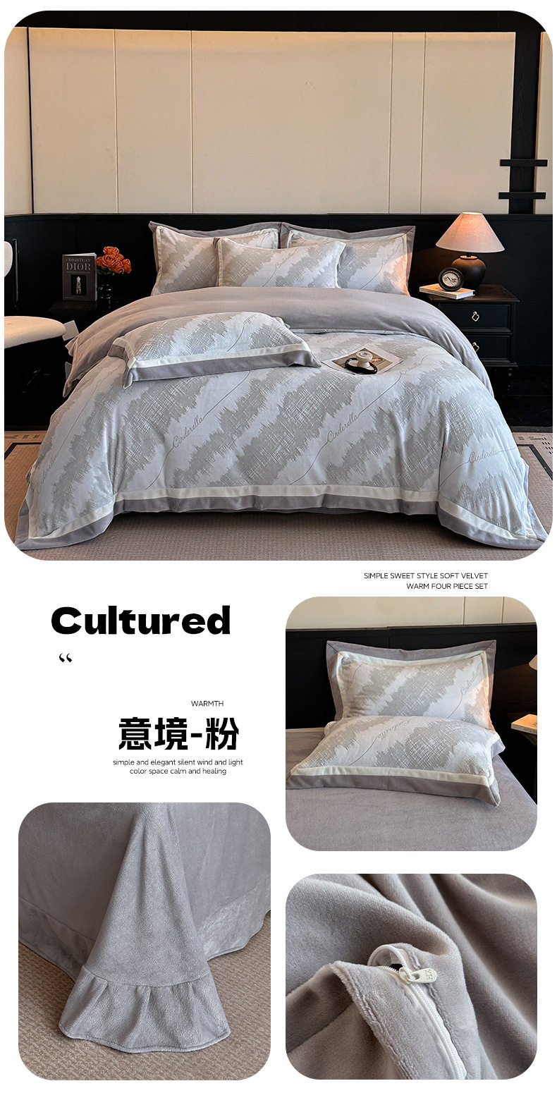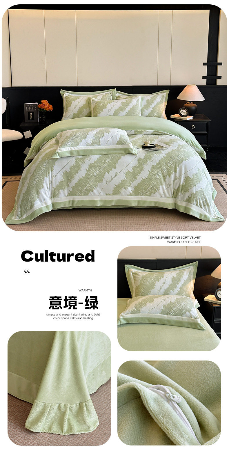 Light Luxury Winter Type a Carved Milk Velvet Bed Four-Piece Set Thickeneded Warm Coral Velvet Bed Bed Sheets Quilt Cover Three-Piece Set