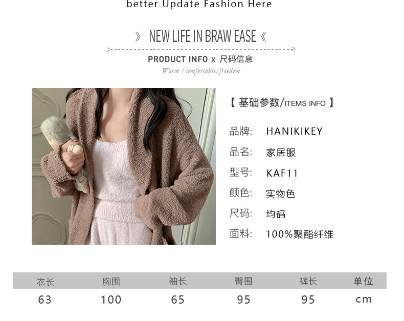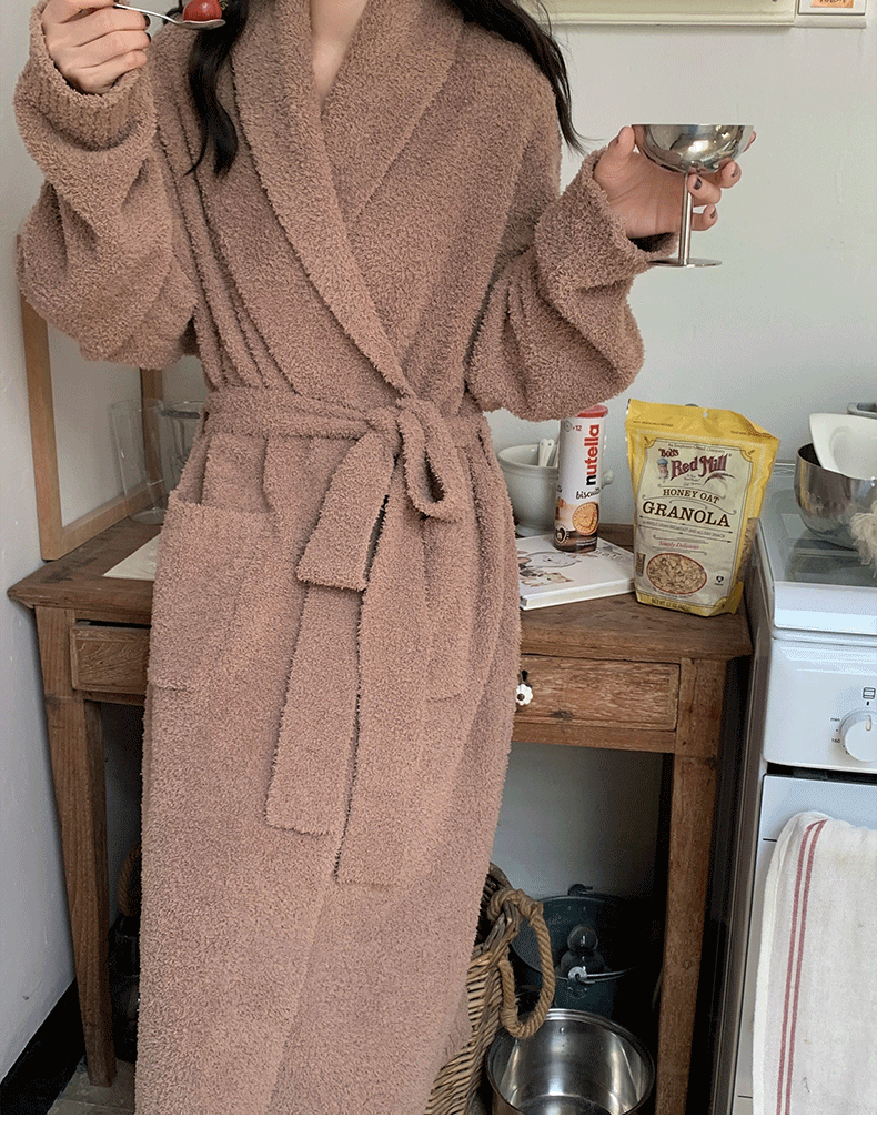 | Color | Brown bathrobe |