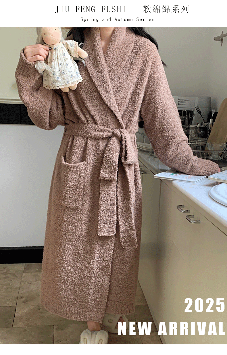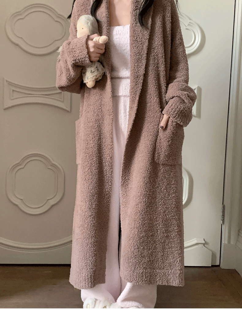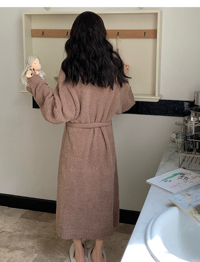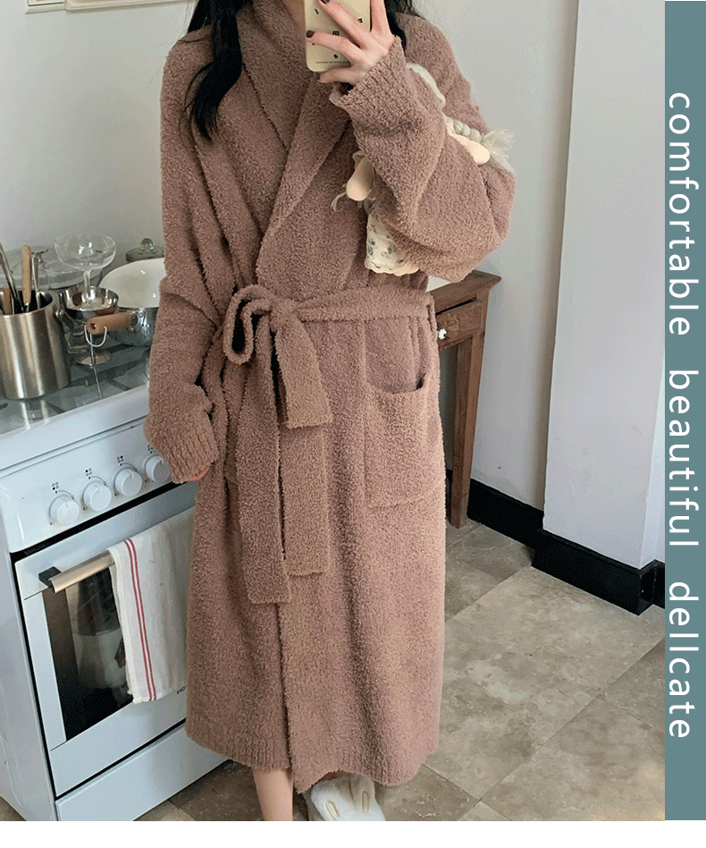 Pajamas for Women, Autumn and Winter Half-Velvet Fleece-Lined and Thickeneded Simple Brown Bathrobe, Winter Maternity Home Clothes That Can Be Worn Outside