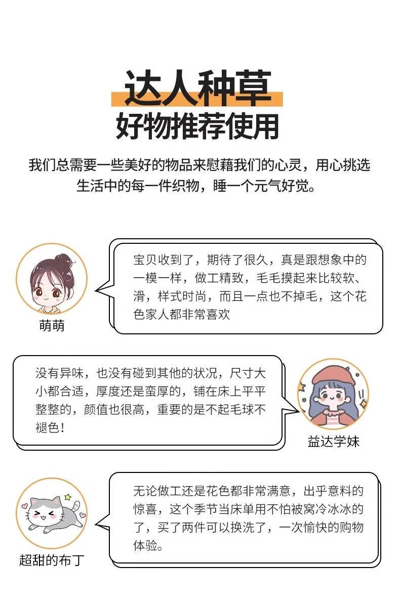 | Size specifications | 150x200cm about 2kg [thick and warm, no static electricity, no lint],150x200cm about 2.5kg [thick and warm, no static electricity, no lint],180x220cm about 3kg [thick and warm, no static electricity, no lint],200x230cm about 3.5kg [thick and warm, no static electricity, no lint] |