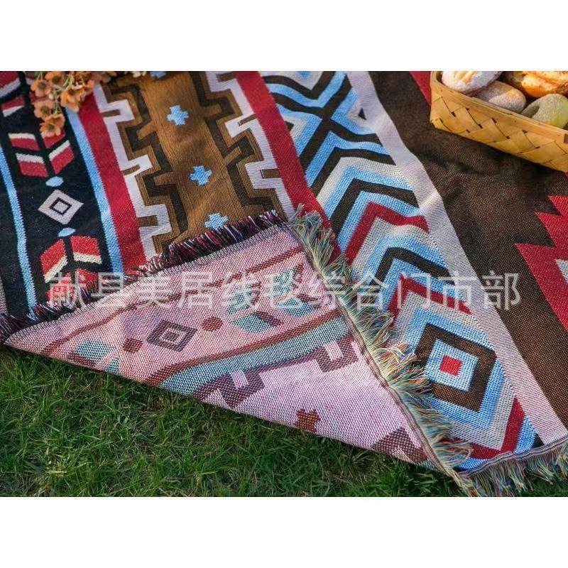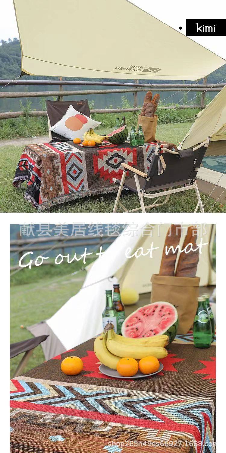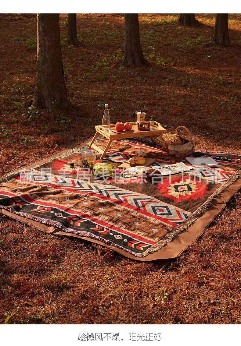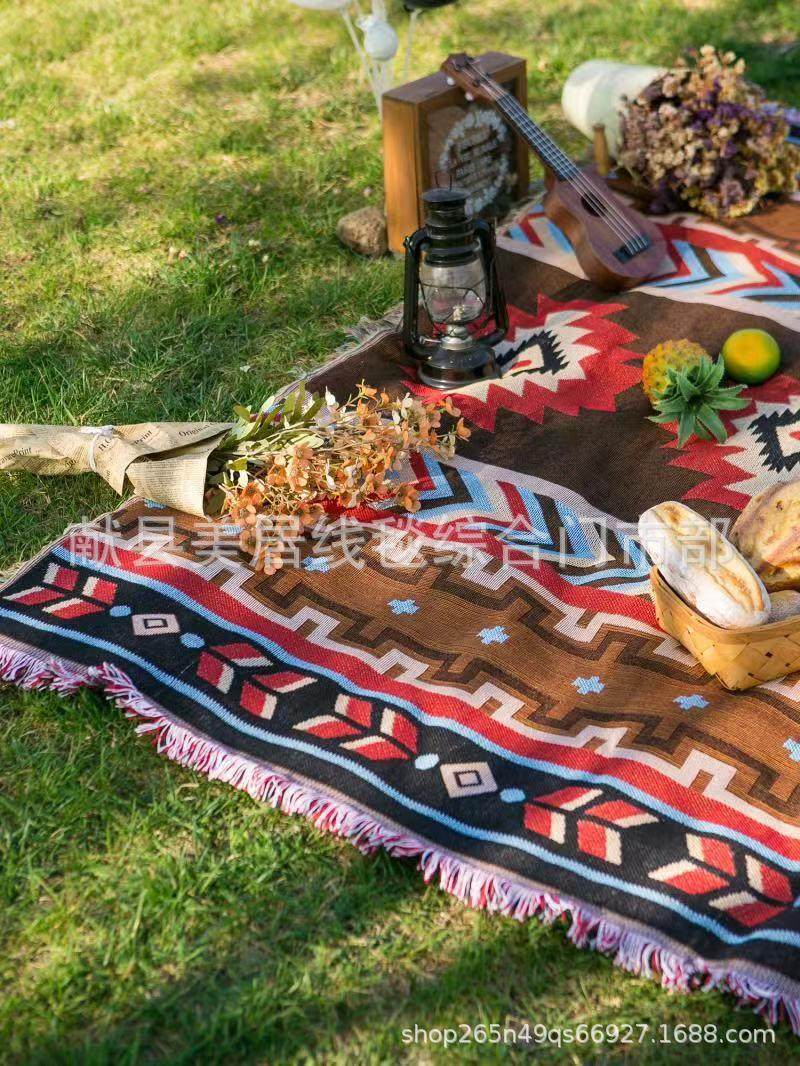 Cross-Border Outdoor Picnic Tablecloth Moisture-Proof Floor Mat Ethnic Style Multi-Purpose Line Blanket B&B Decorative Blanket Background Image