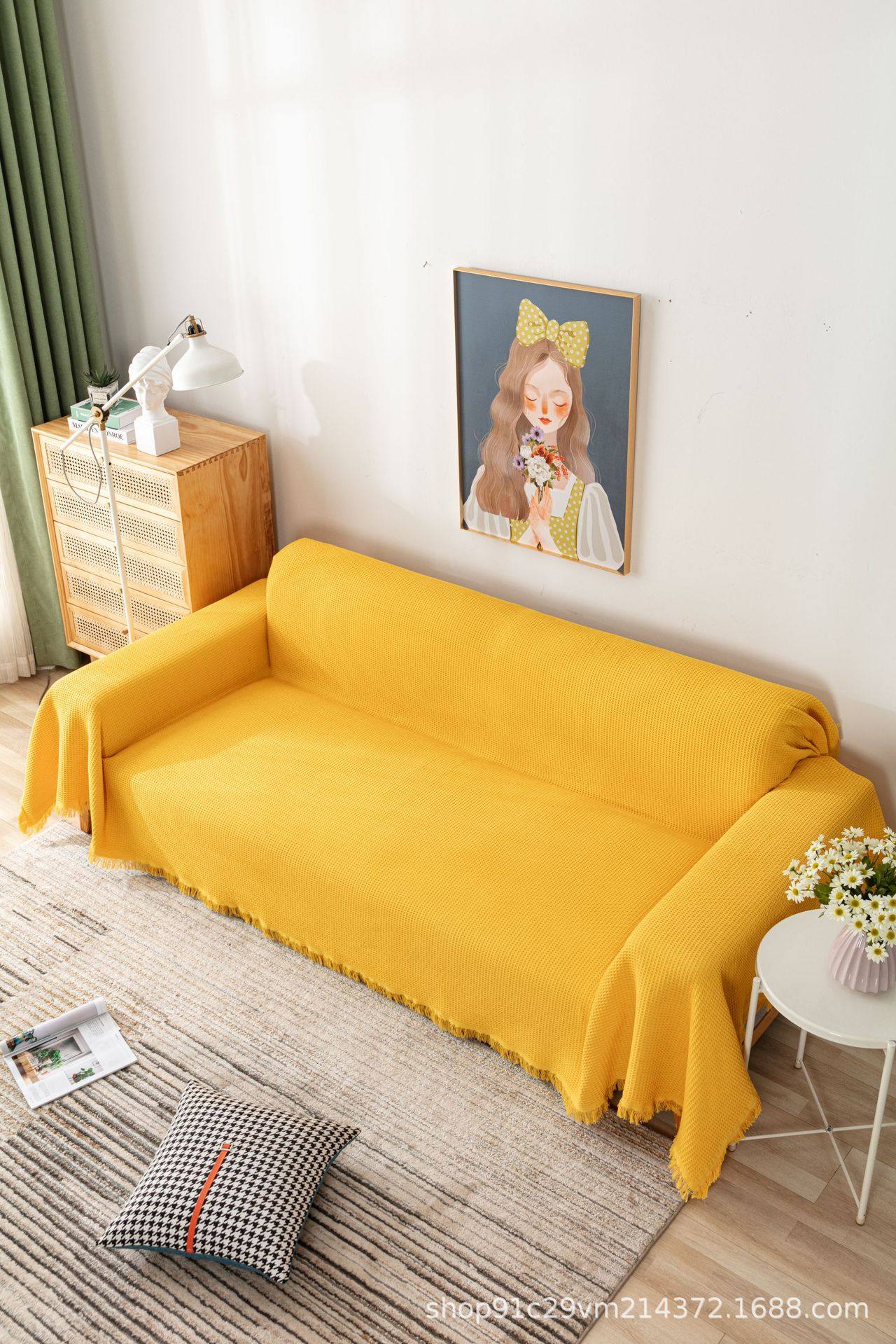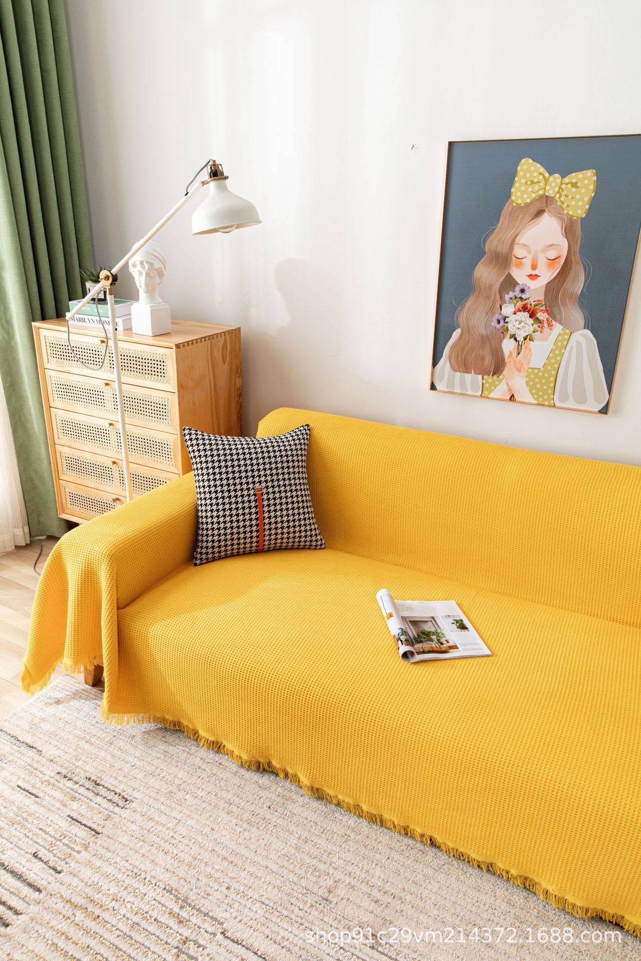 [Dropshipping]Nordic Minimalist Ins-Style Waffle Sofa Throw, Light Luxury Coffee Table Tablecloth, Rug, Sofa Cushion